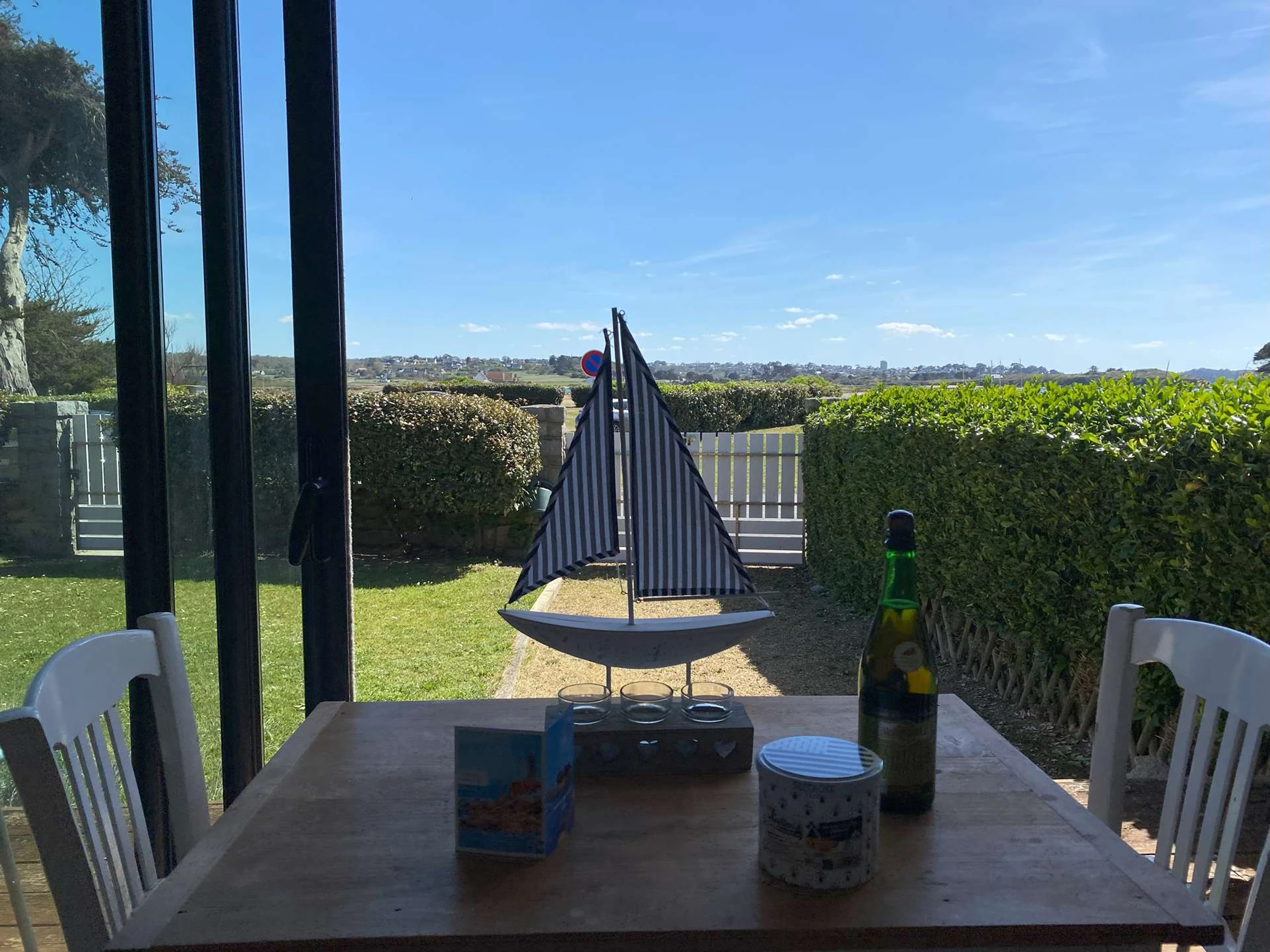 Ty Pacha house with sea view for 6 people. 120 m², entrance to the large kitchen room and two dining areas, contemporary living room with sea view, four bedrooms, two of which have a very nice sea view, bathroom with walk-in shower, vanity unit, toilet. Enclosed garden, terrace, indoor parking courtyard. No pets. Final cleaning included (disinfectant cleaning). Linen optional.