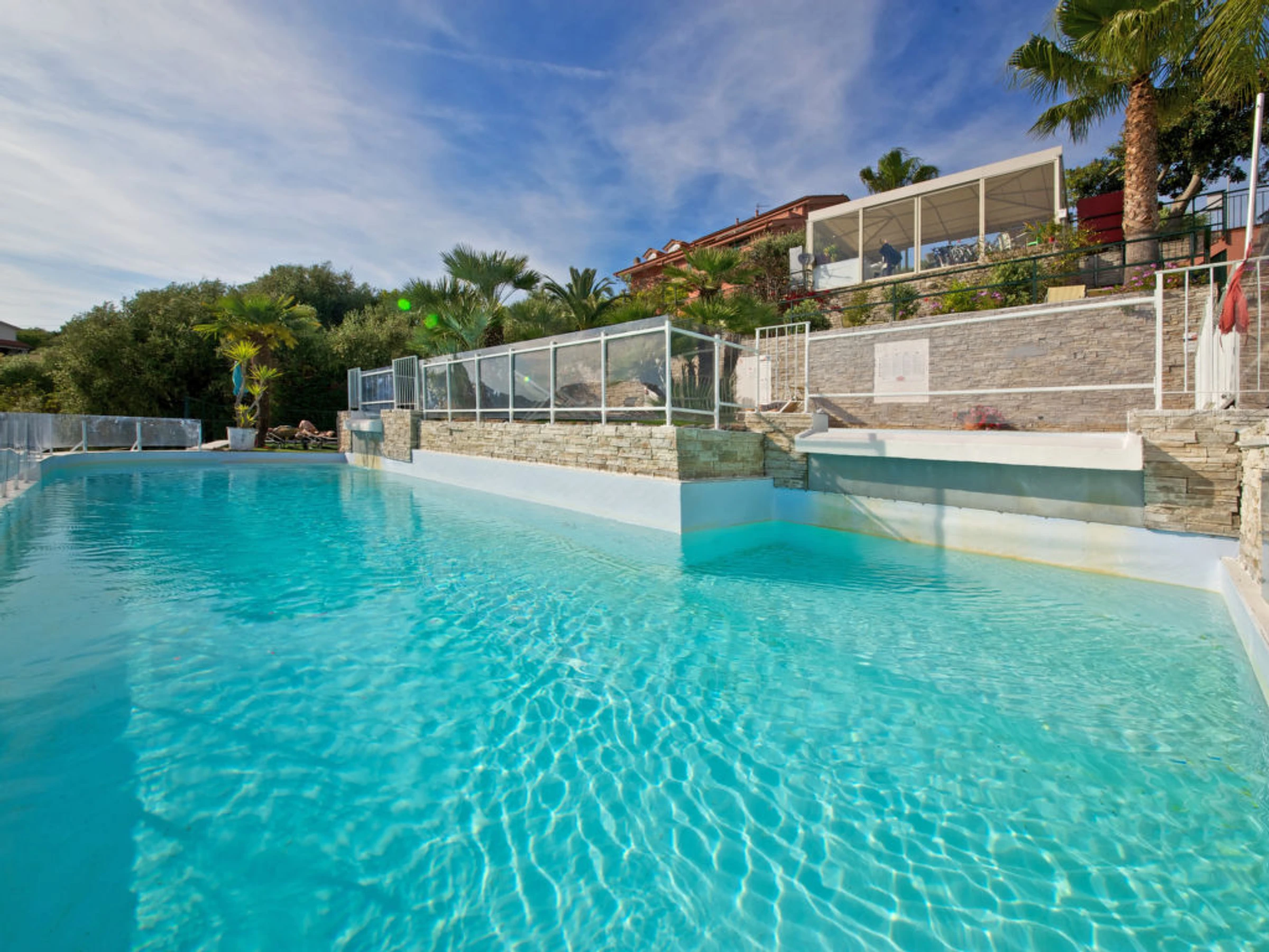Child friendly holiday development "Villa Giada". 60 apartments in the property. 4 km from the centre of Imperia, in a sunny position on top of a hill, 3 km from the sea, in the countryside. For shared use: property 18'000 m2 with flowers and trees, swimming pool heated (80 m2, depth 20 - 230 cm, 01.04.-30.10.). Children's pool, outdoor shower, tennis, garden furniture, barbecue, children's playground. In the complex: reception, restaurant, bar, breakfast room, WiFi, playroom, storage room for bicycles, laundry (extra), bicycle rental. Breakfast possible (extra). Parking (extra). Supermarket 1 km, sandy beach 3.5 km pebble beach 2.5 km. Please note: car recommended. Entertainment in the season. Motorway 450 m from the property. The photograph shows a typical example. The residence consists of a 2-storey apartment house and several terraced houses. There is a second swimming pool divided into 2 parts with a total of 90 m2: one part is reserved for children (approx 20 m2, max depth 60 cm), one for adults (approx 60 m2, depth 160 cm). There are also mini football, baskettball (extra) and minigolf. The apartments have balcony or garden. Please note: children and babies have to be included in the indicated maximum number of people. Wifi available only in the reception area.