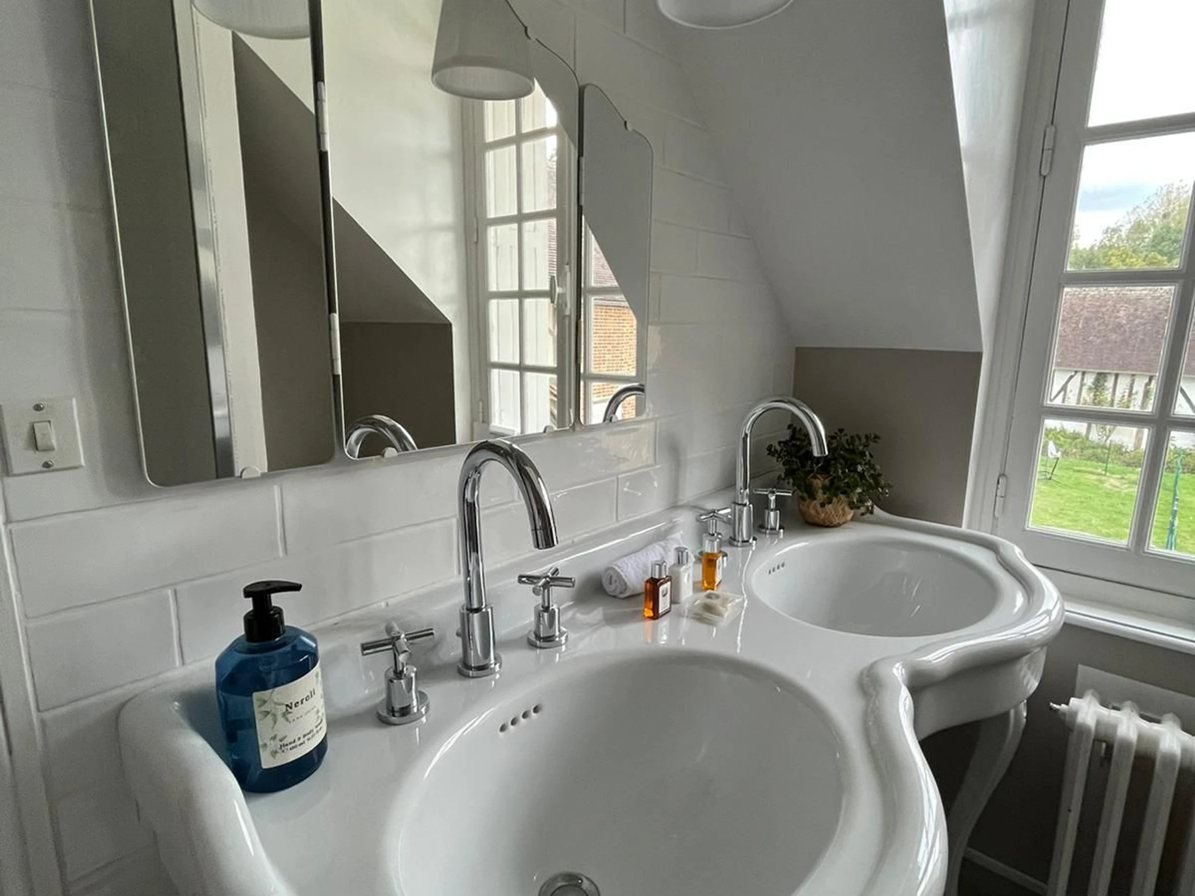 1 shared bathroom bathtub double washbasin and wc