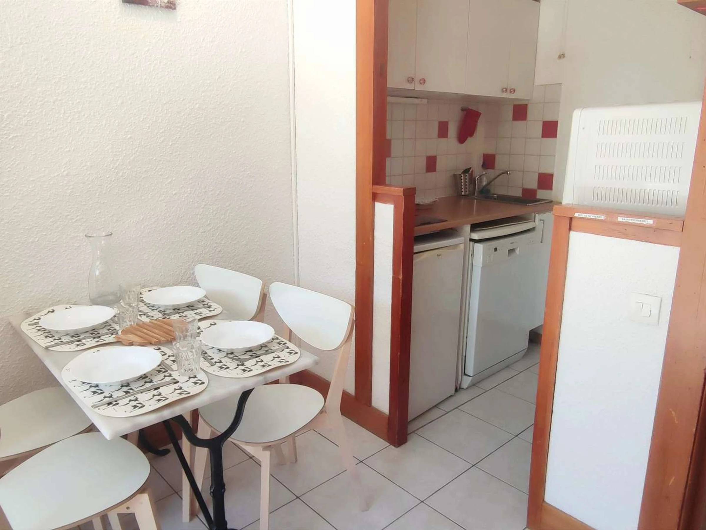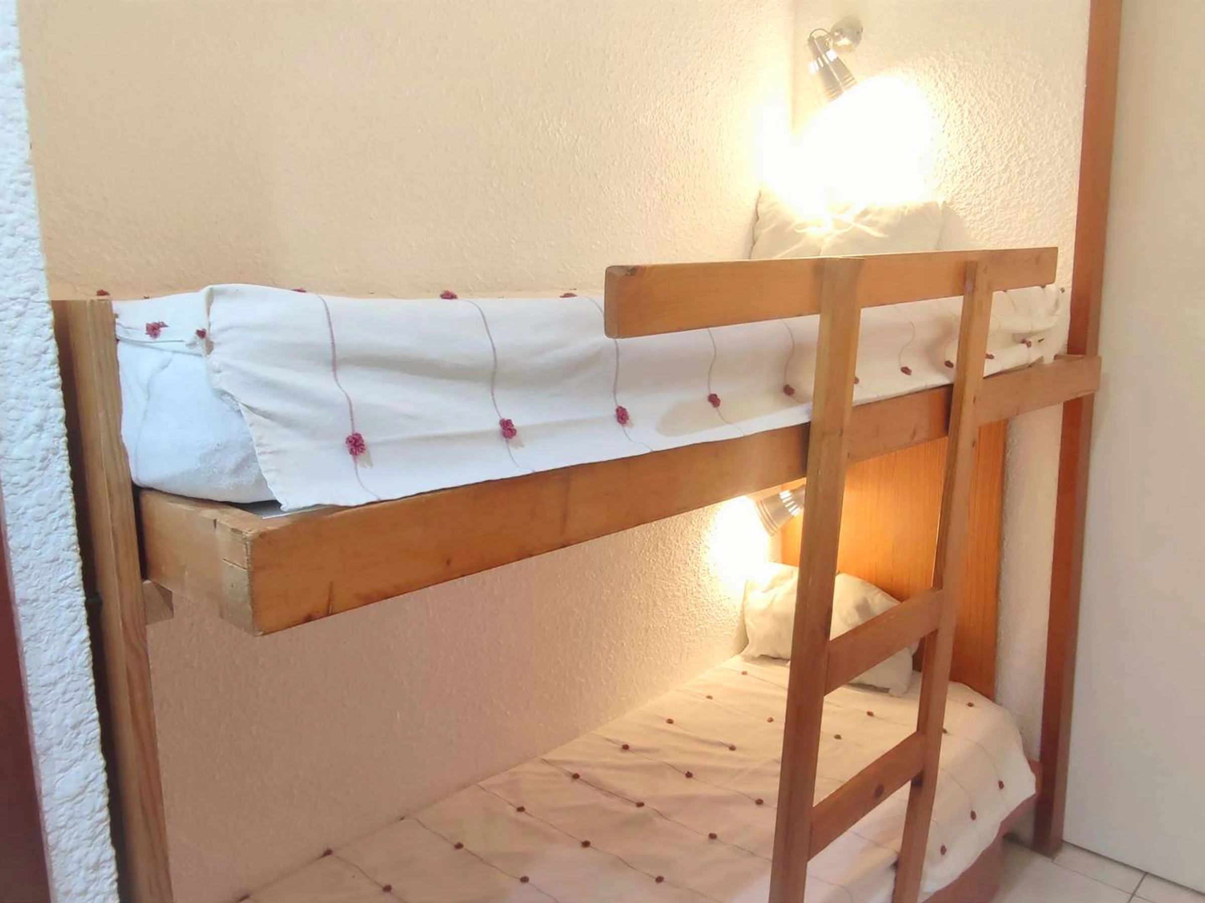 SPB9 2* Studio 4 persons very bright in the heart of the resort, balcony south view on the slopes of the Front de Neige. Cotton sheets & towels included weekly rental in winter / extra charge not mandatory in summer and short stays in winter. NO SMOKING, NO PETS. The cleaning of departure is to be carried out by your care or in supplement.Mountain corner with bunk beds separated by a sliding door. Sofa bed in 160 in the living room and 2 bunk beds in the mountain corner. Wifi internet access. Ski locker.