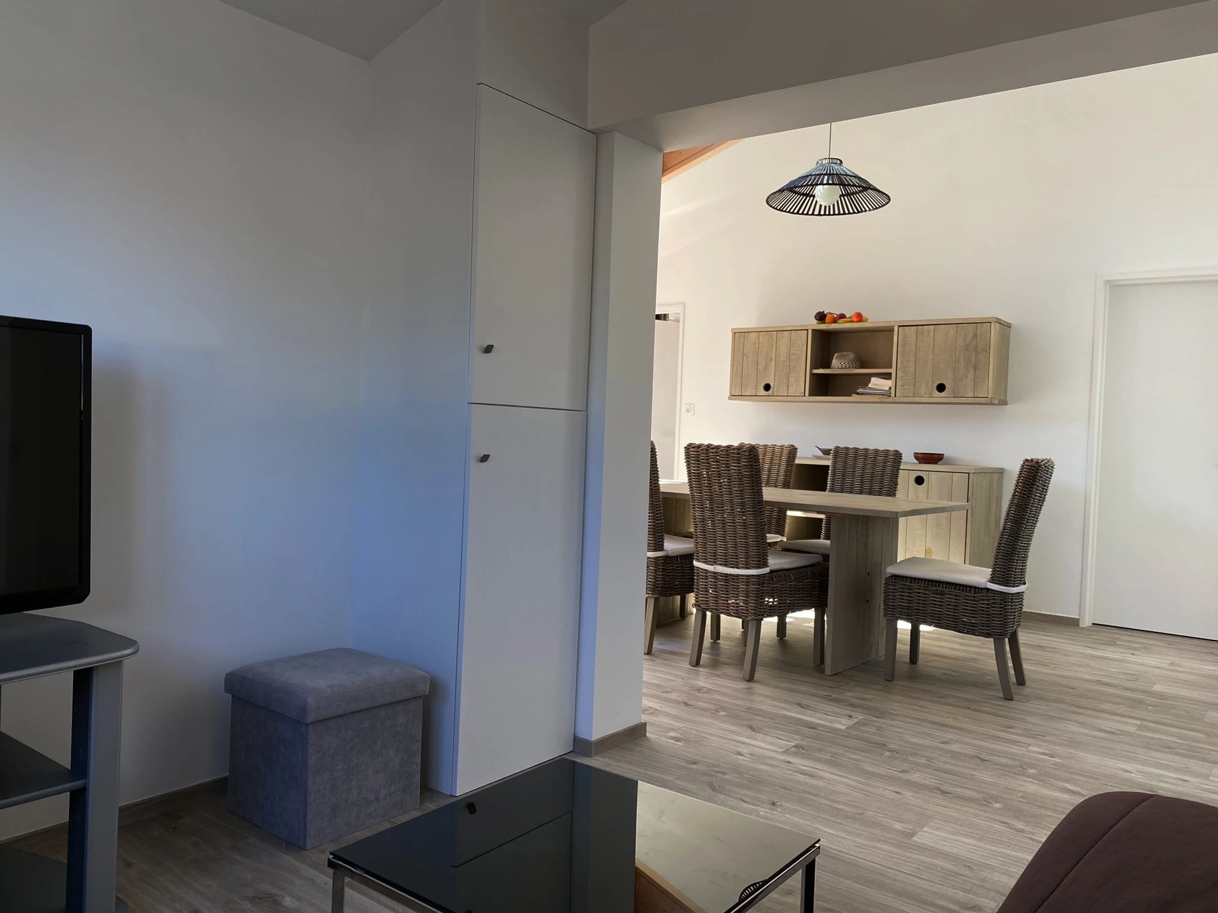 Inside, you will discover a bright living room with a sitting area, a lounge area equipped with a sofa and a television, as well as a modern and fully equipped kitchen (fridge, multi-function oven, ceramic hob, dishwasher, washing machine and plenty of storage space). The house also has two bedrooms: one with a double bed (160x200) and one with two single beds (80x200), a contemporary bathroom and separate toilets. Air-conditioned, it guarantees optimal comfort in all seasons. Finally, two private parking spaces are available in front of the house, a valuable asset in this sought-after area.