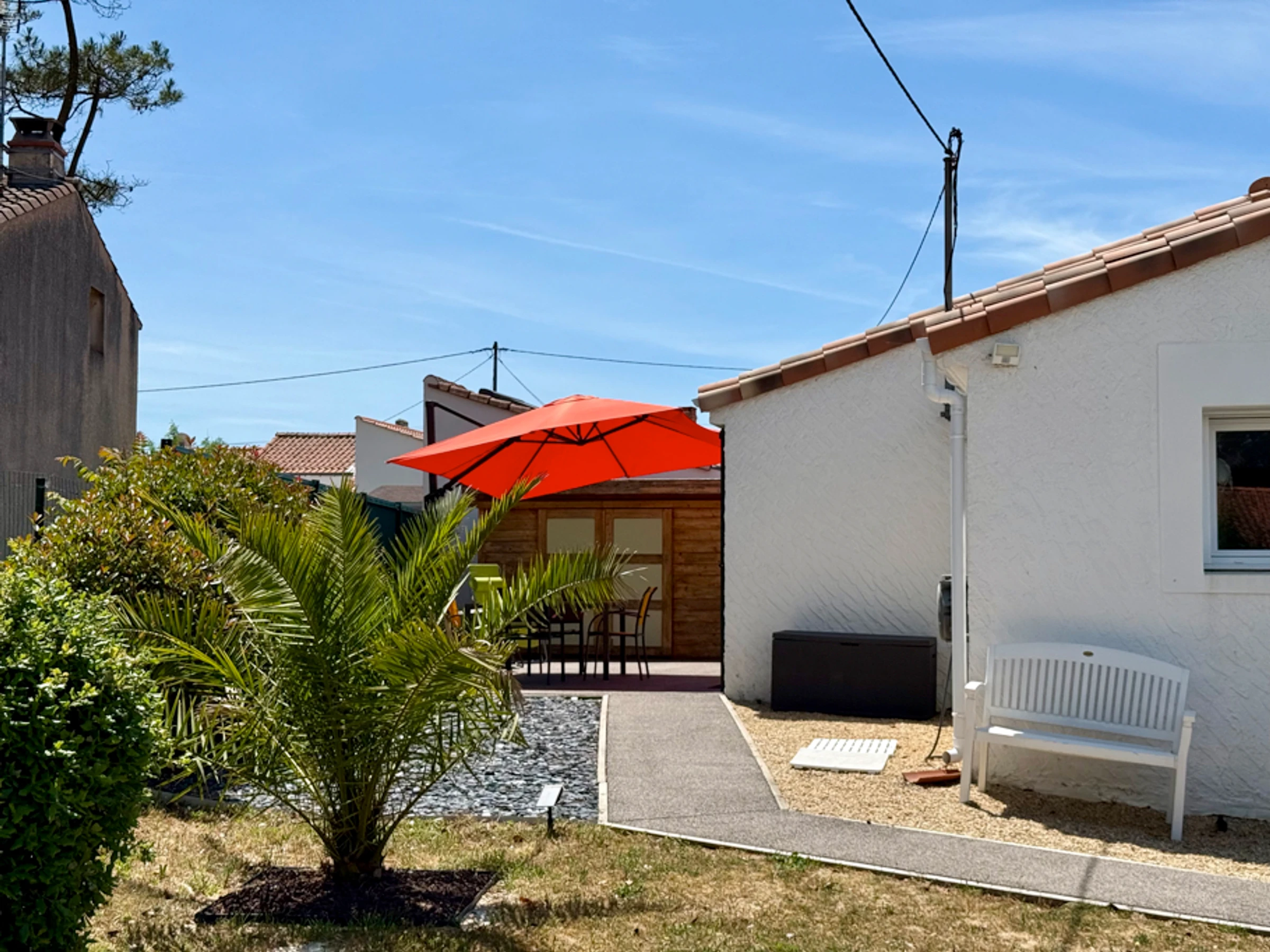 Ideally located in the charming village of Jard-sur-Mer, this 62 m² detached house is perfect for a peaceful and comfortable stay. Just 200 m from the marina, 500 m from the supervised Boisvinet beach and 200 m from the start of the lively pedestrian street with its shops and restaurants, it enjoys a privileged location. Nestled at the end of a dead end, the house offers an enclosed plot with a furnished terrace, garden furniture, loungers and a barbecue, perfect for relaxing moments outdoors.