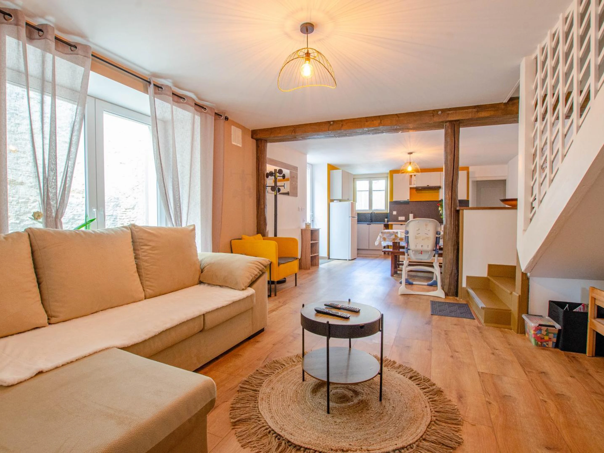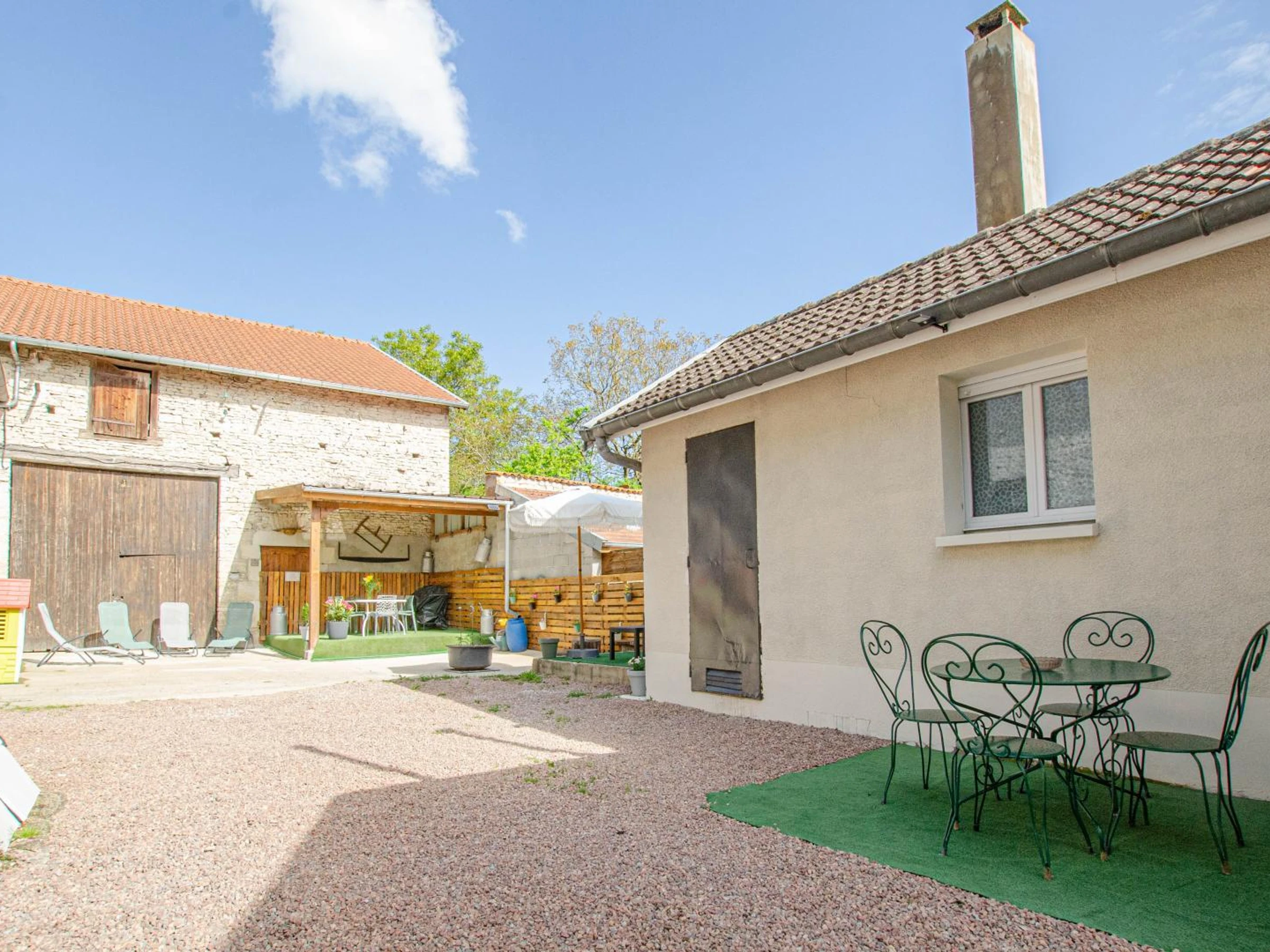 On the ground floor, you will find a living room with a kitchen, dining area, and relaxation space with toys, a television, and a speaker; a double bedroom (one 160x200 cm bed and one 70x140 cm child's bed); a shower room (shower and sink); and a separate toilet. Upstairs, there are two double bedrooms (one with a 160x200 cm bed and the other with a 140x190 cm bed) and a mezzanine reading area. Outside, the enclosed courtyard offers a covered terrace with garden furniture, a griddle, a relaxation area with a parasol, and sun loungers. There is parking for up to two cars. Beds are made upon arrival, and linens (tea towels and tablecloths) and end-of-stay cleaning are included in the price. Heating and electricity are included within reasonable consumption limits (meter readings taken upon arrival and departure). Located in the heart of the Champagne vineyards, just minutes from the lakes of the Forêt d’Orient, Nigloland amusement park, and beautiful hiking trails, this cottage is the perfect starting point for exploring the region or simply enjoying the serenity of nature. Here, everything is designed to make guests of all ages feel at home during a rejuvenating stay.