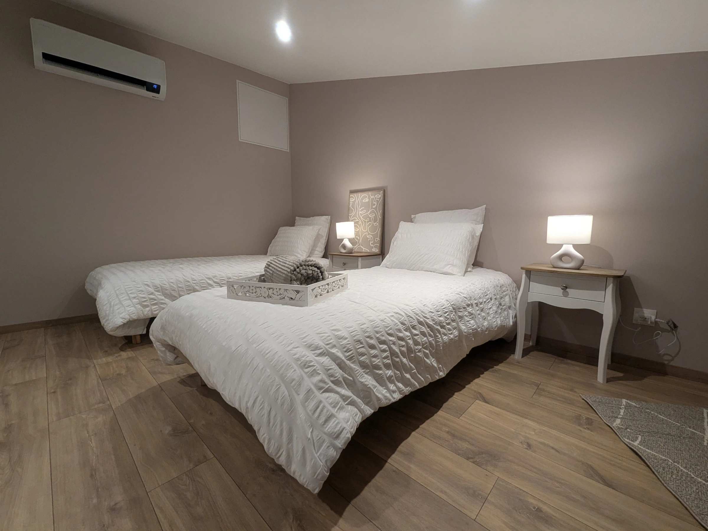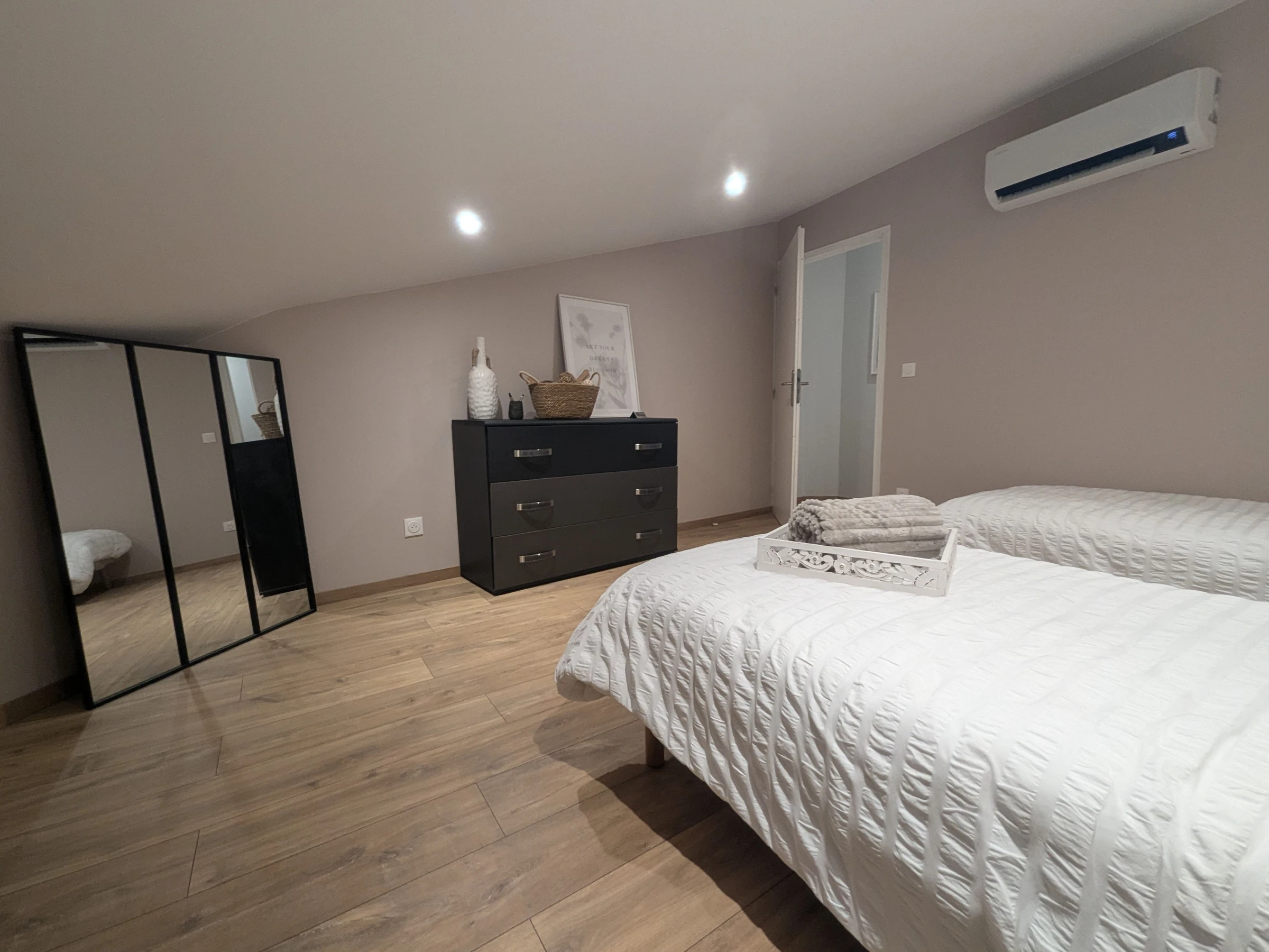 Access to the second level by a miller's staircase, a bedroom with two 90 cm beds.