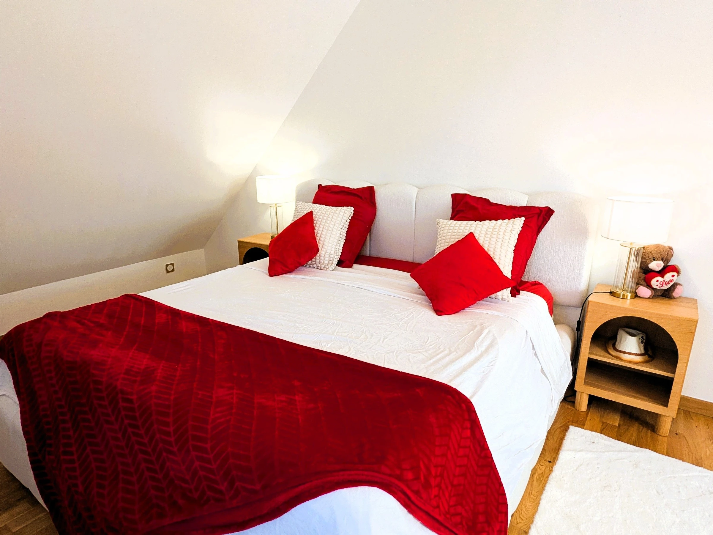 Upstairs, the sleeping area continues with three more very spacious bedrooms: one bedroom with a king-size bed (180 cm) and two bedrooms with king-size beds. Each bedroom also has a sitting/relaxation area, ideal for enjoying a moment of peace and quiet. A second living room is also located on this floor, furnished with a sofa, board games, and a PlayStation 5 console, perfect for relaxing with family or friends. A second bathroom completes this floor.