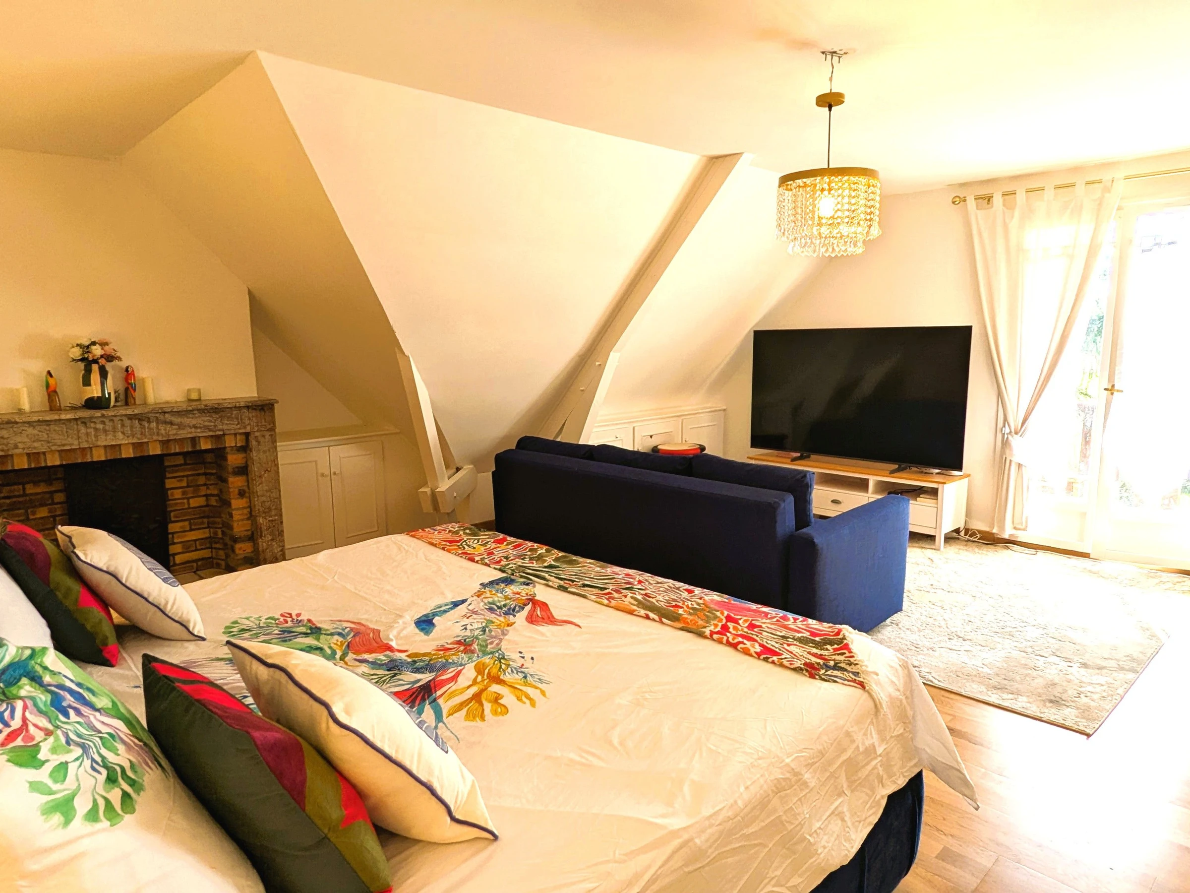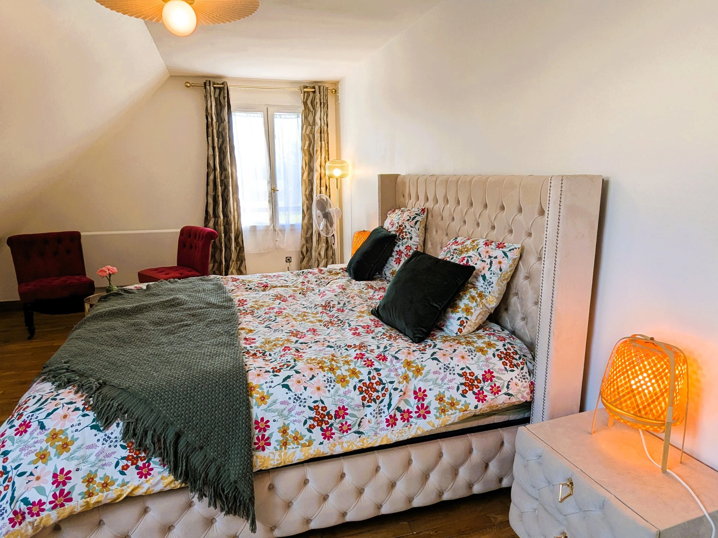 Located on the banks of the Loiret River, this country cottage welcomes you to a spacious, characterful 220 m² house, ideal for holidays with family or friends. Nestled in a peaceful setting, just twenty minutes from Pont-sur-Yonne, it offers comfort, space, and a welcoming atmosphere for up to 10 people. Upon entering, you'll discover a large, bright living area of approximately 60 m² comprising a living room, a dining room, and a fully equipped open-plan kitchen. The living room features a very large corner sofa, a television, and a fireplace, perfect for sharing cozy moments. The dining room has a large extendable table, ideal for large gatherings.