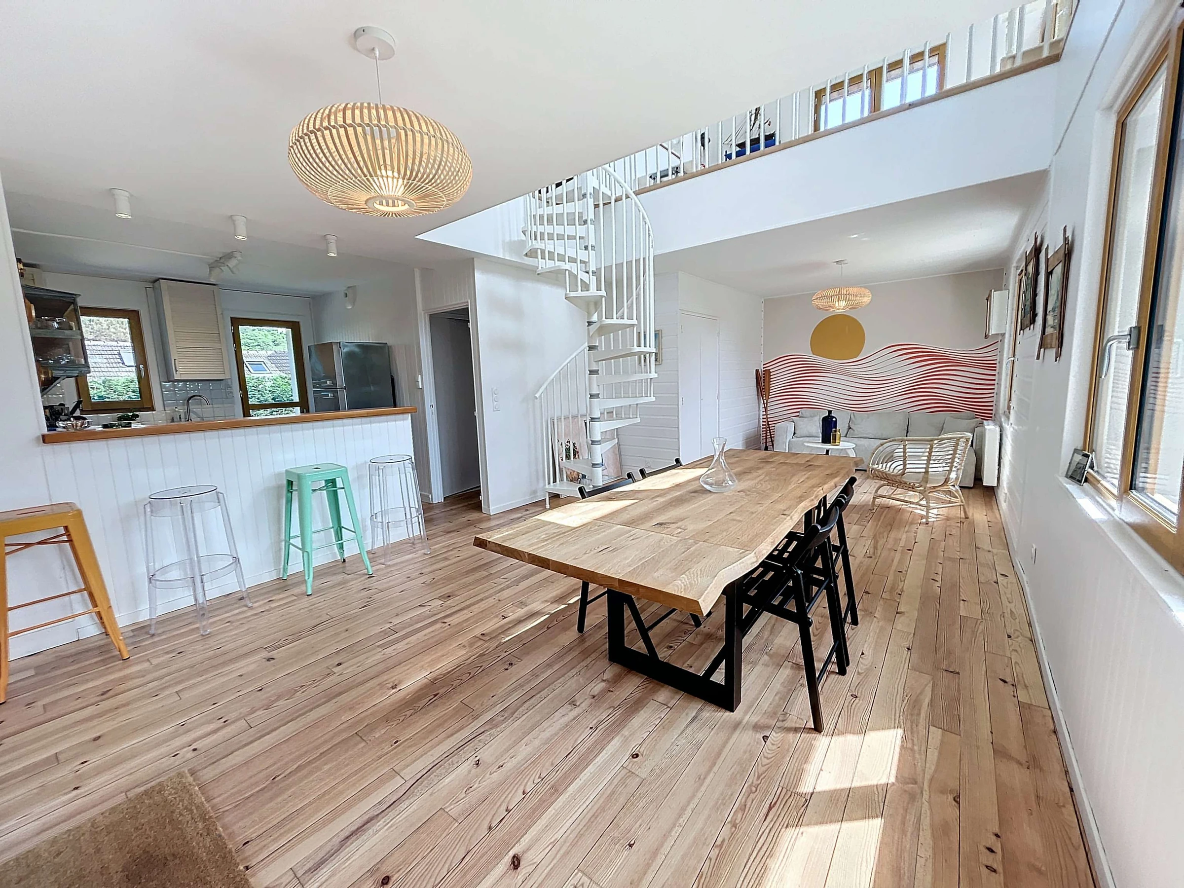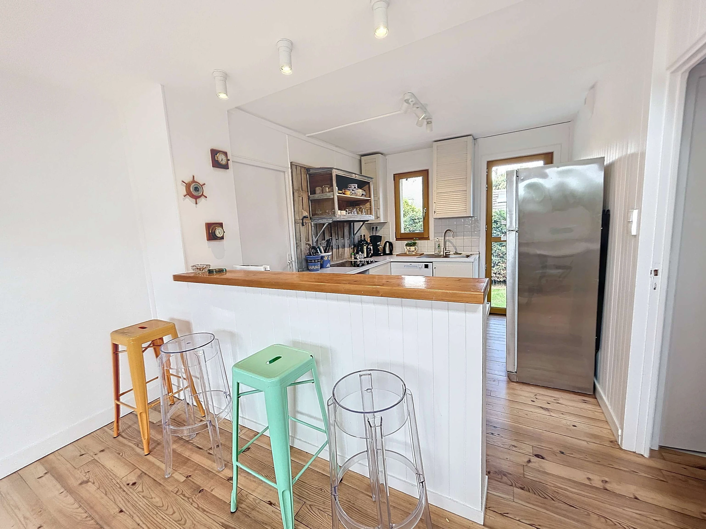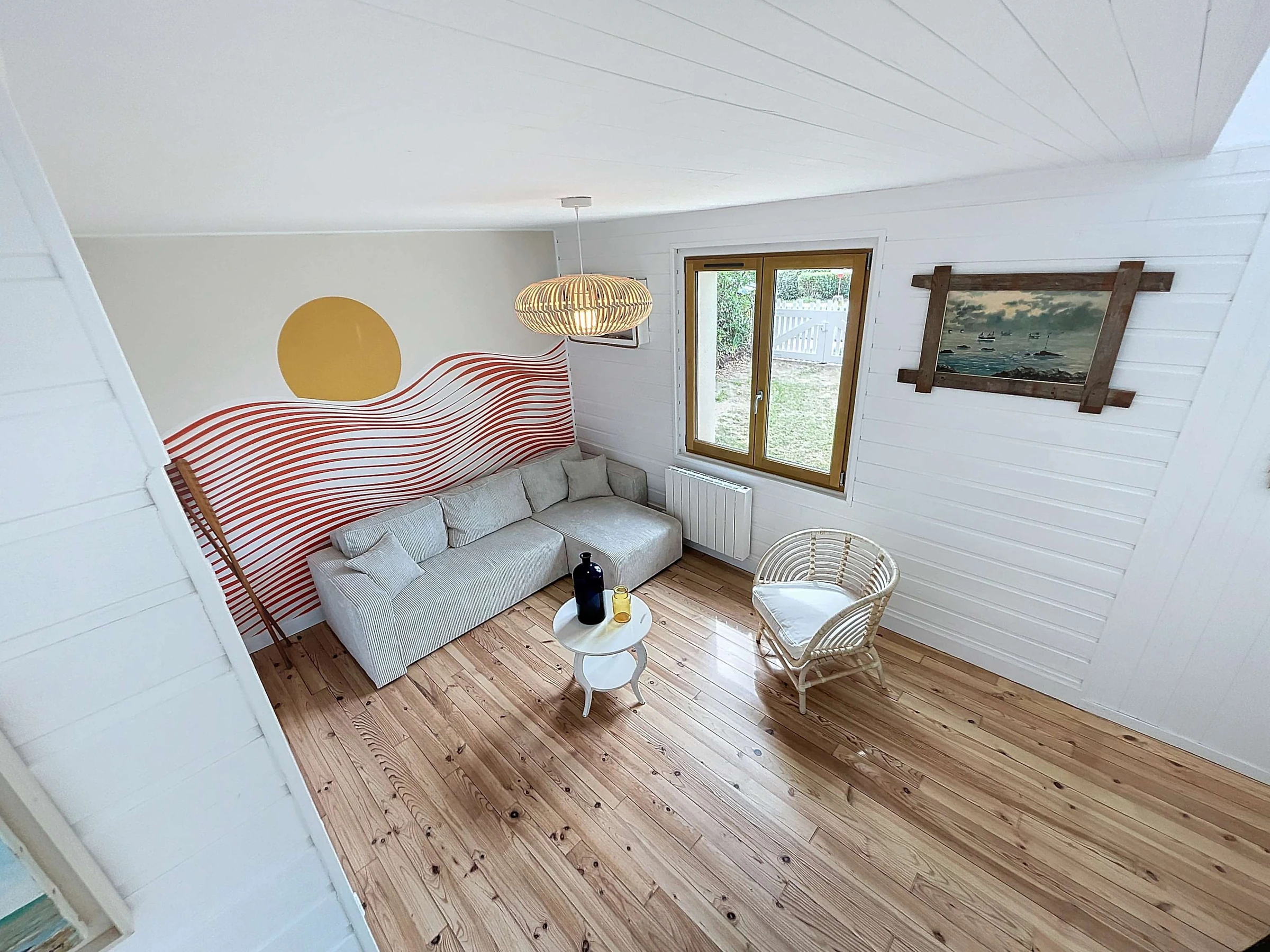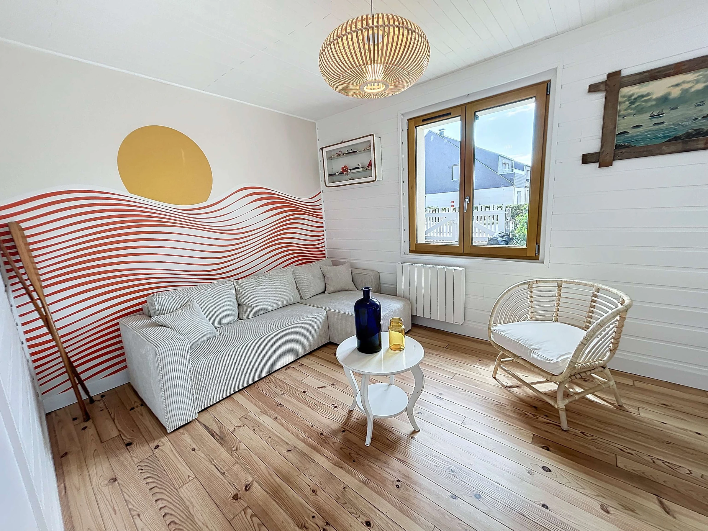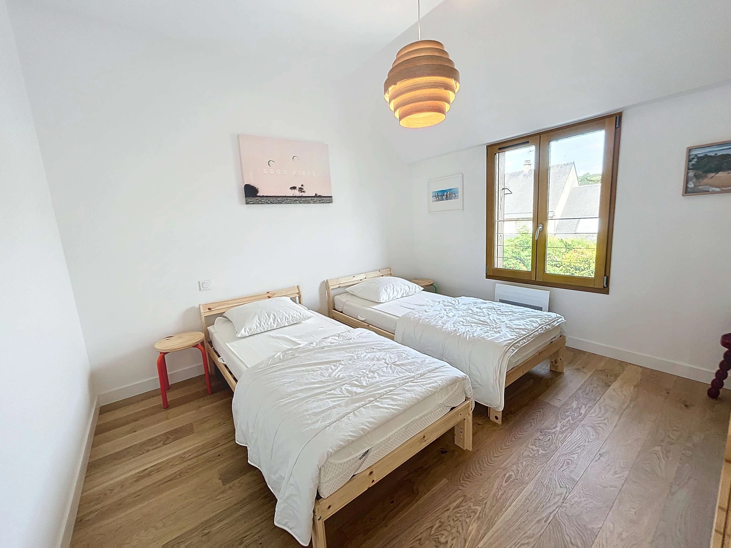 Located on the 2nd seafront, 20m from the beach and 1km from the shops and 250m from the Jullouville sailing school, we welcome you to "Ker Yano", a charming holiday home. Partly renovated, it consists of a fitted kitchen (dishwasher, mini-oven) opening onto the living room/lounge, two bedrooms with a 140 bed, a bedroom with two single bunk beds of 90, and a bathroom and separate toilet.