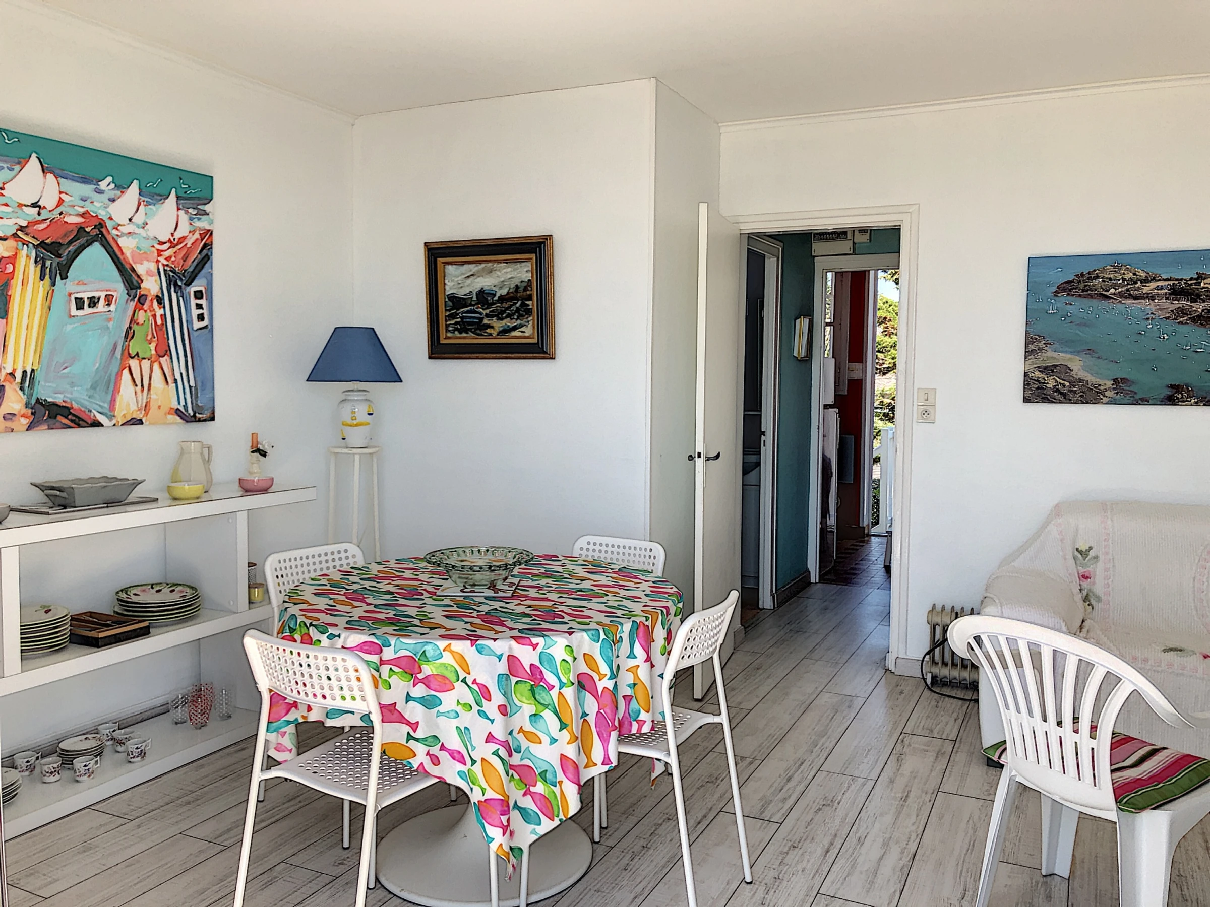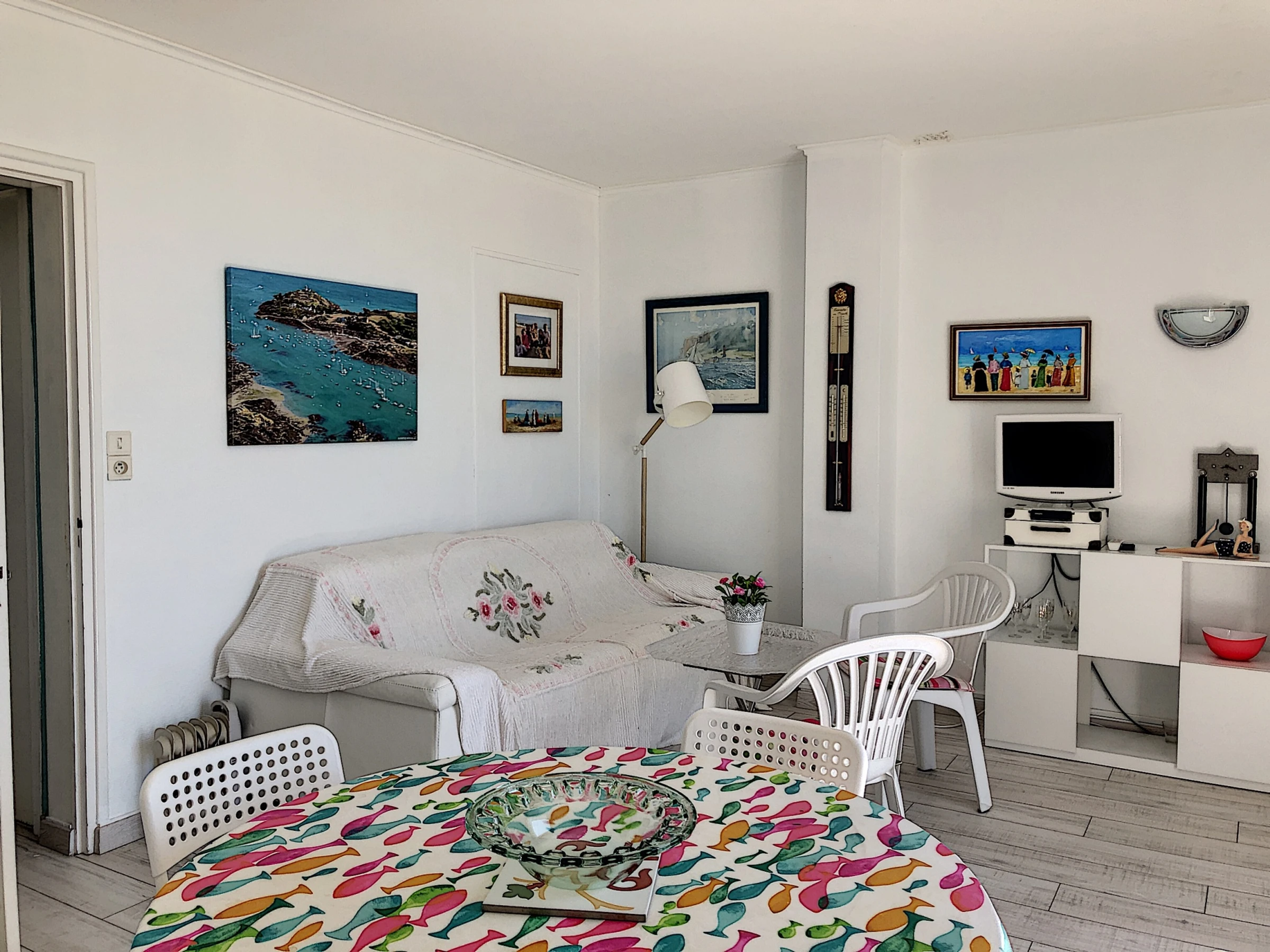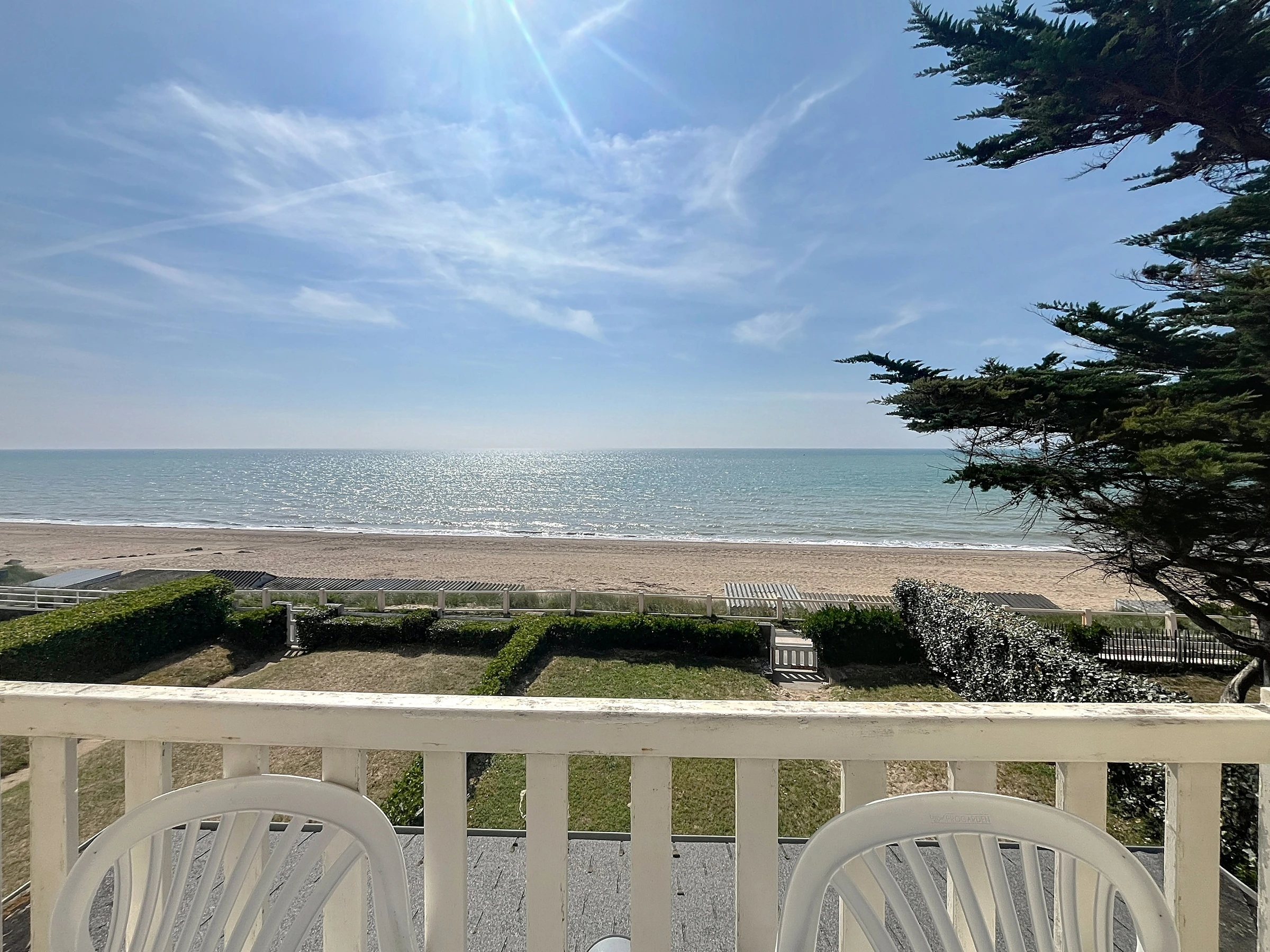 We welcome you to this charming beachfront apartment with exceptional views of Jullouville Beach. Located on the first floor of a small condominium with a balcony, the ground floor has a private garden with direct access to the beach. It features a living room with TV and a balcony overlooking the sea, a new kitchen (refrigerator, microwave, ceramic hob, mini oven, dishwasher), a bedroom with two single beds (90 cm) pushed together, and a bathroom (shower, washing machine).
