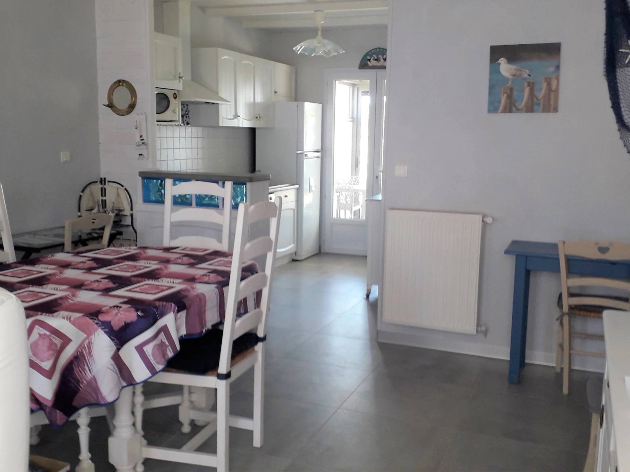 Located on rue Gaby Morlay, 600 m from the town center and the lake and 1900 m from the beach. House including: Living room/Living room with television - Kitchen equipped with a gas hob, refrigerator with freezer section, oven, DISHWASHER and MICROWAVE - Bathroom with Italian shower and sink - WC - Two bedrooms each with a bed for two people - Upstairs, a mezzanine with a double bed + a single bed - GARAGE used as a storage room with WASHING MACHINE - Pleasant veranda opening onto the garden with terrace, barbecue, garden furniture. Housekeeping for the tenant. Household linen not provided, rental possible from our partner, contact us. Heating from October 1 to May 31 in addition according to meter reading. Wifi rental possible with 5G box: €40/week