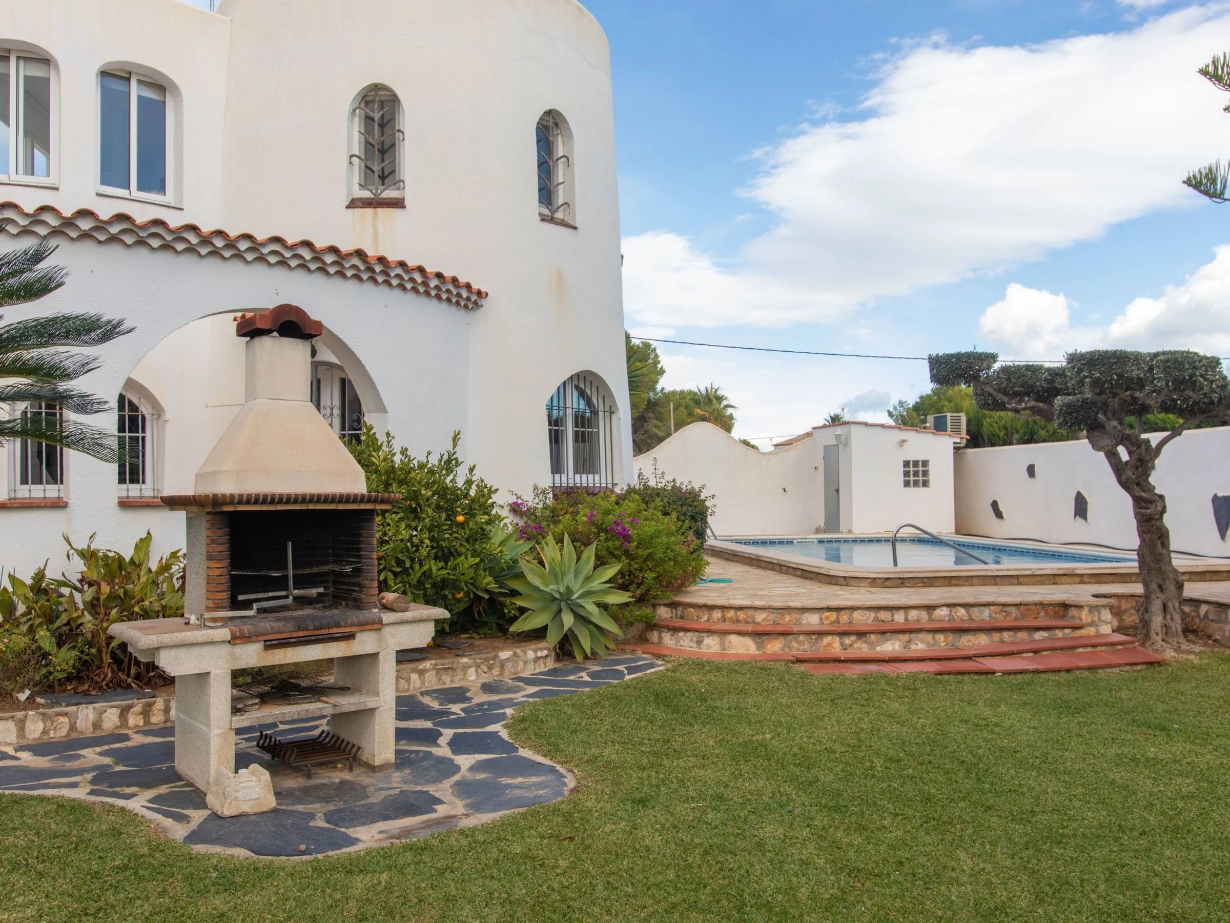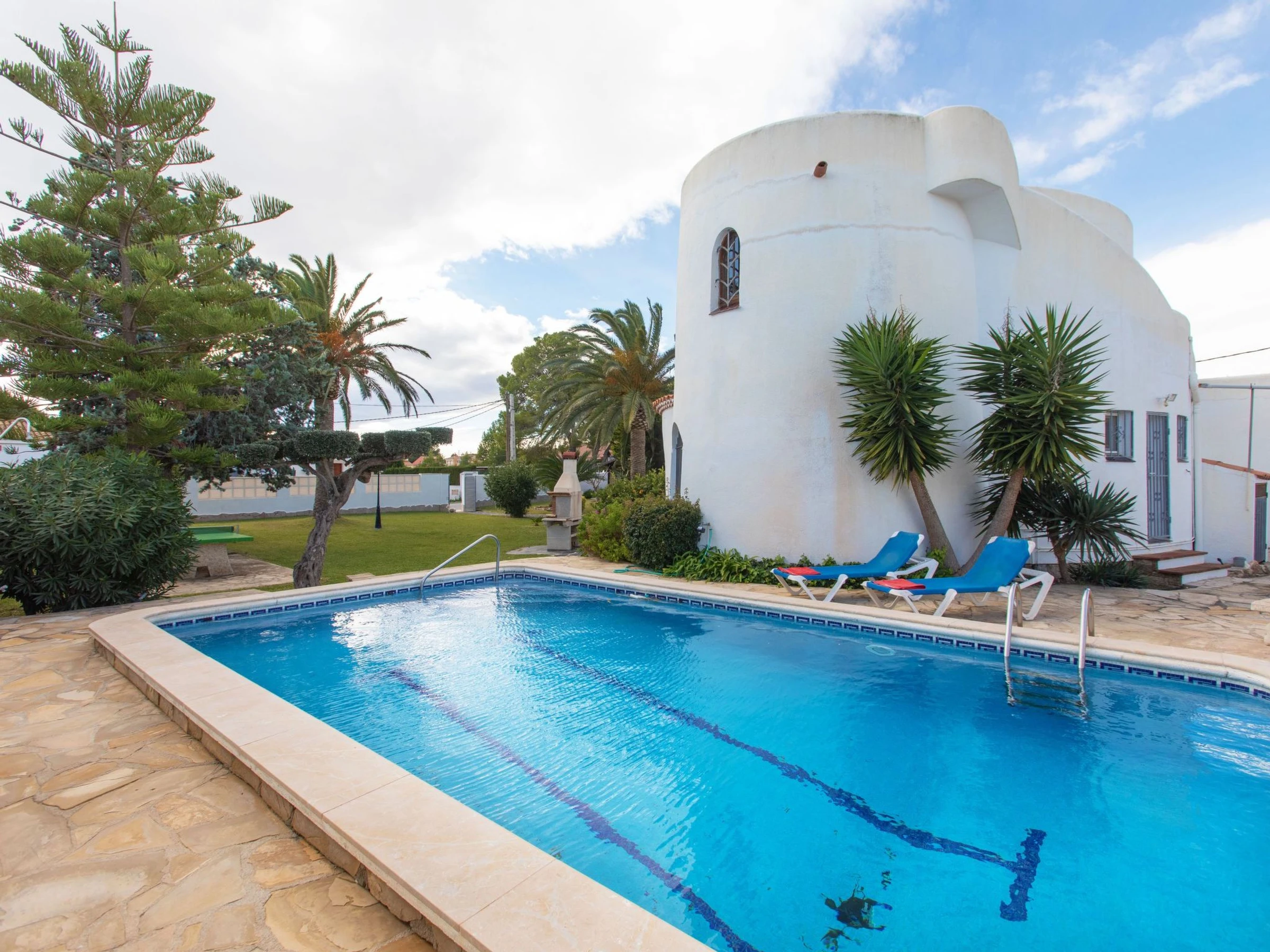 Les Tres Cales 3 km from l'Ametlla: Cosy, comfortable villa "Torreon", 2 storeys. In a quiet position, 300 m from the sea, 500 m from the beach. Private: property (fenced), swimming pool (8 x 4 m, depth 80 - 190 cm, seasonal availability: [hidden] - [hidden] Patio, garden furniture, barbecue, pool maintenance by the owner/gardener. Parking at the house. Shop 1.5 km, supermarket 1.5 km, restaurant 1.5 km, bus stop 2.9 km, railway station "ametlla de mar" 3.7 km. Nearby attractions: Parque Portaventura 48 km, parque Aquopolis 51 km, parque natura del Delta del Ebro 35 km, Tarragona 57 km, Reus 48 km, Barcelona 153 km. Please note: car recommended. Groups of teenagers on request only.