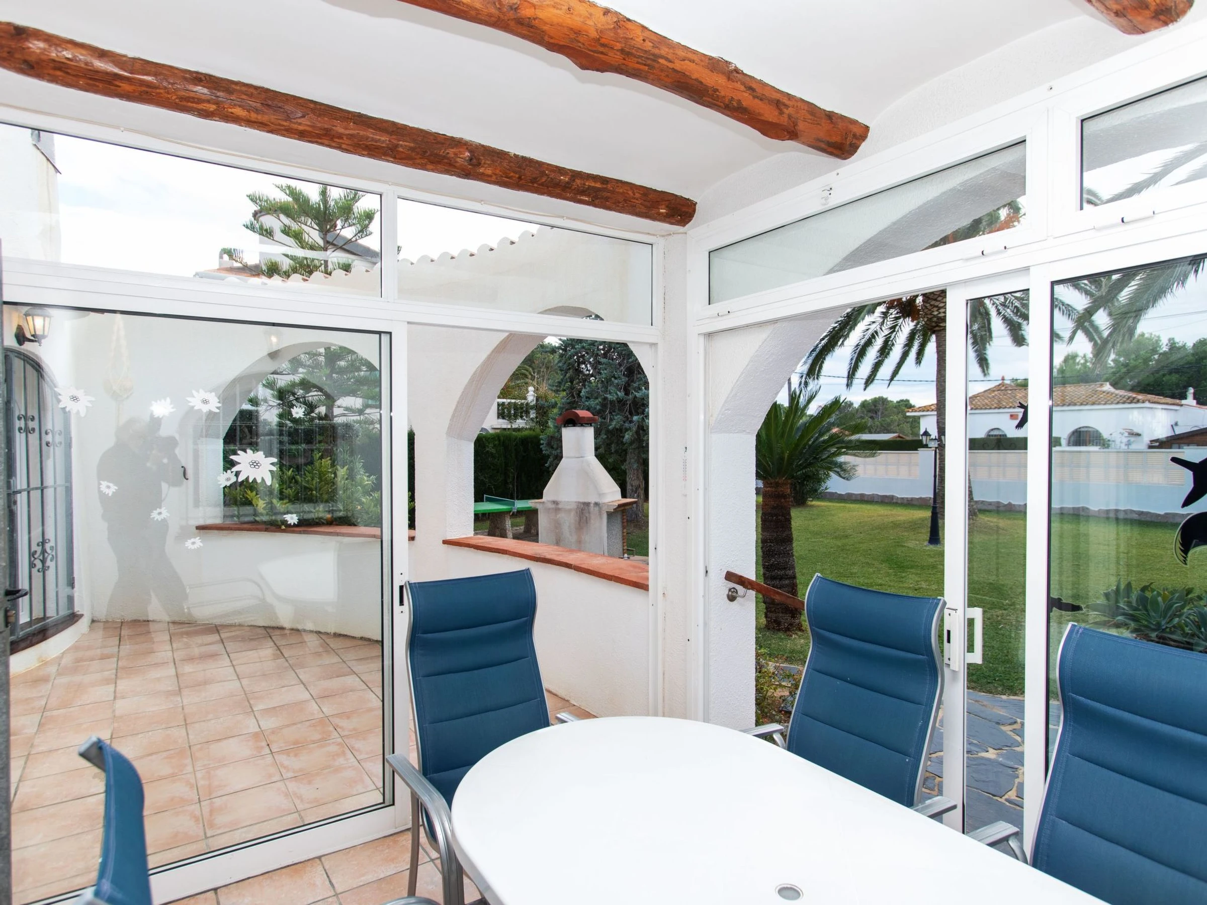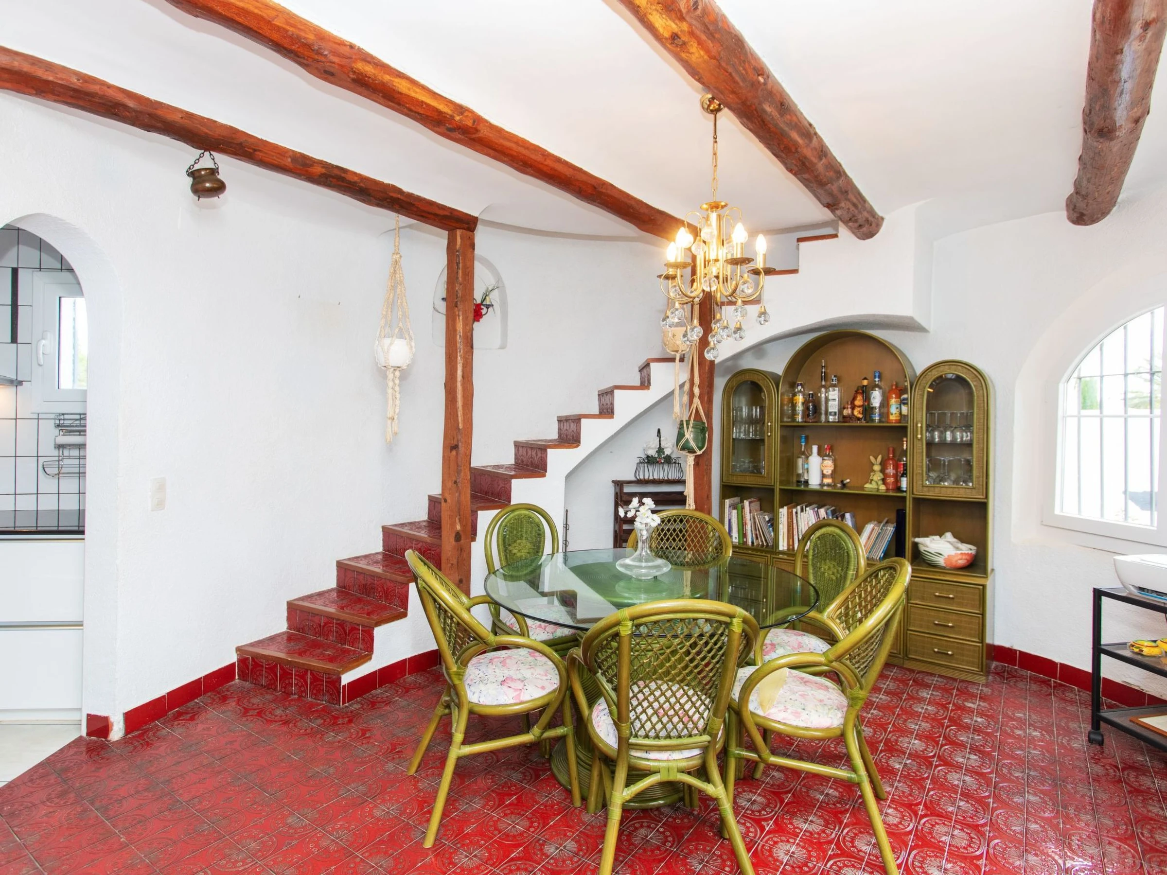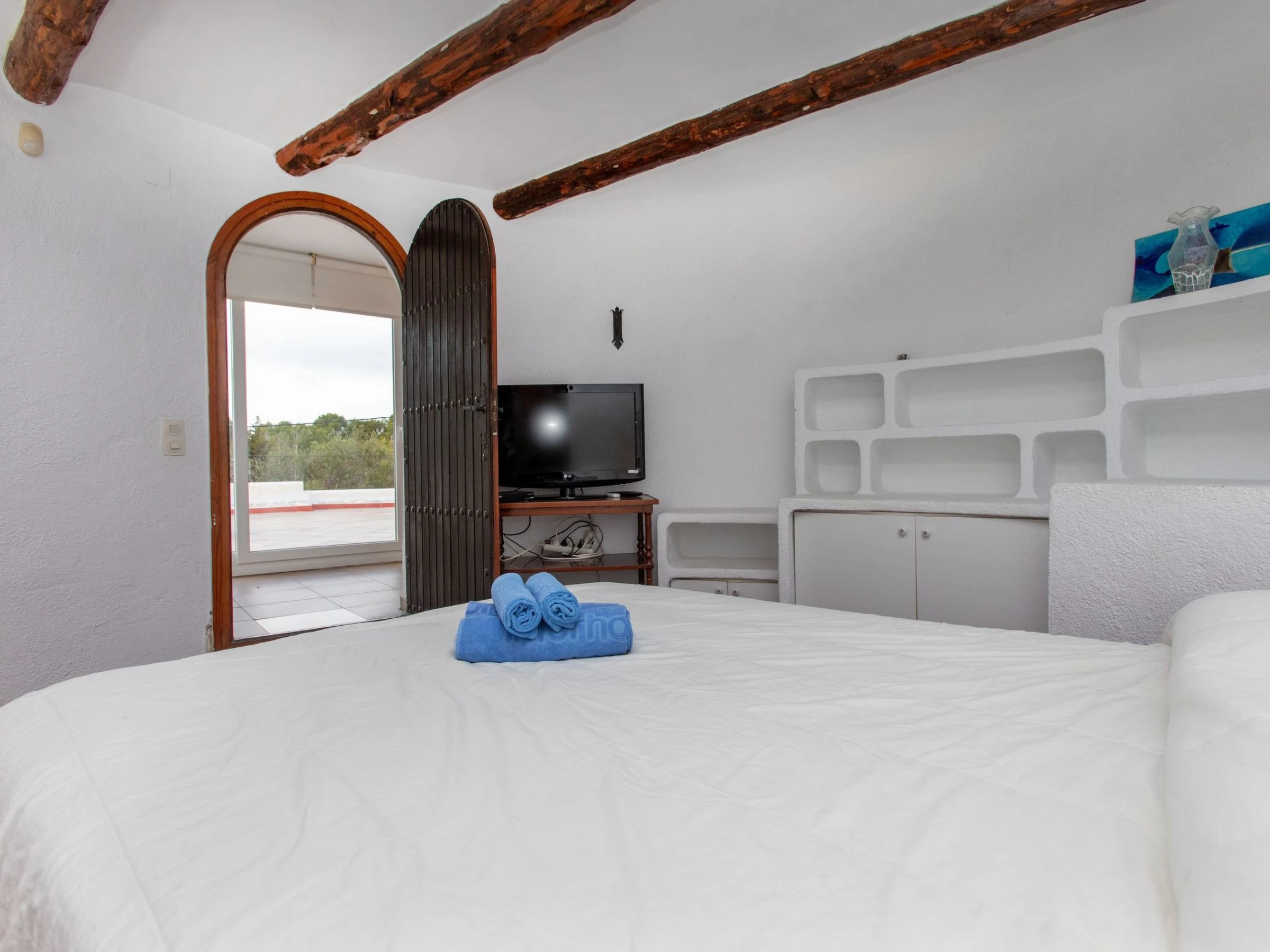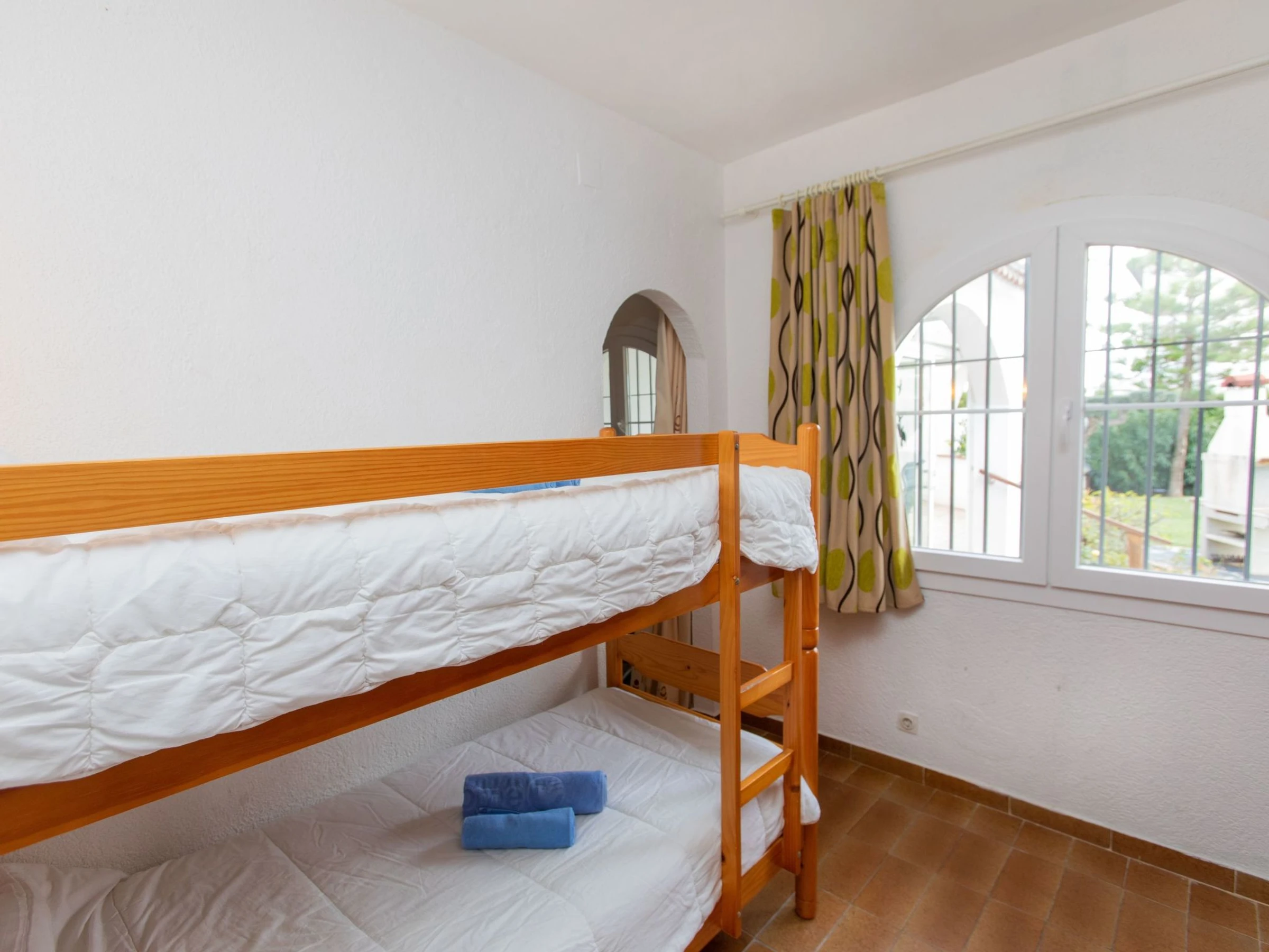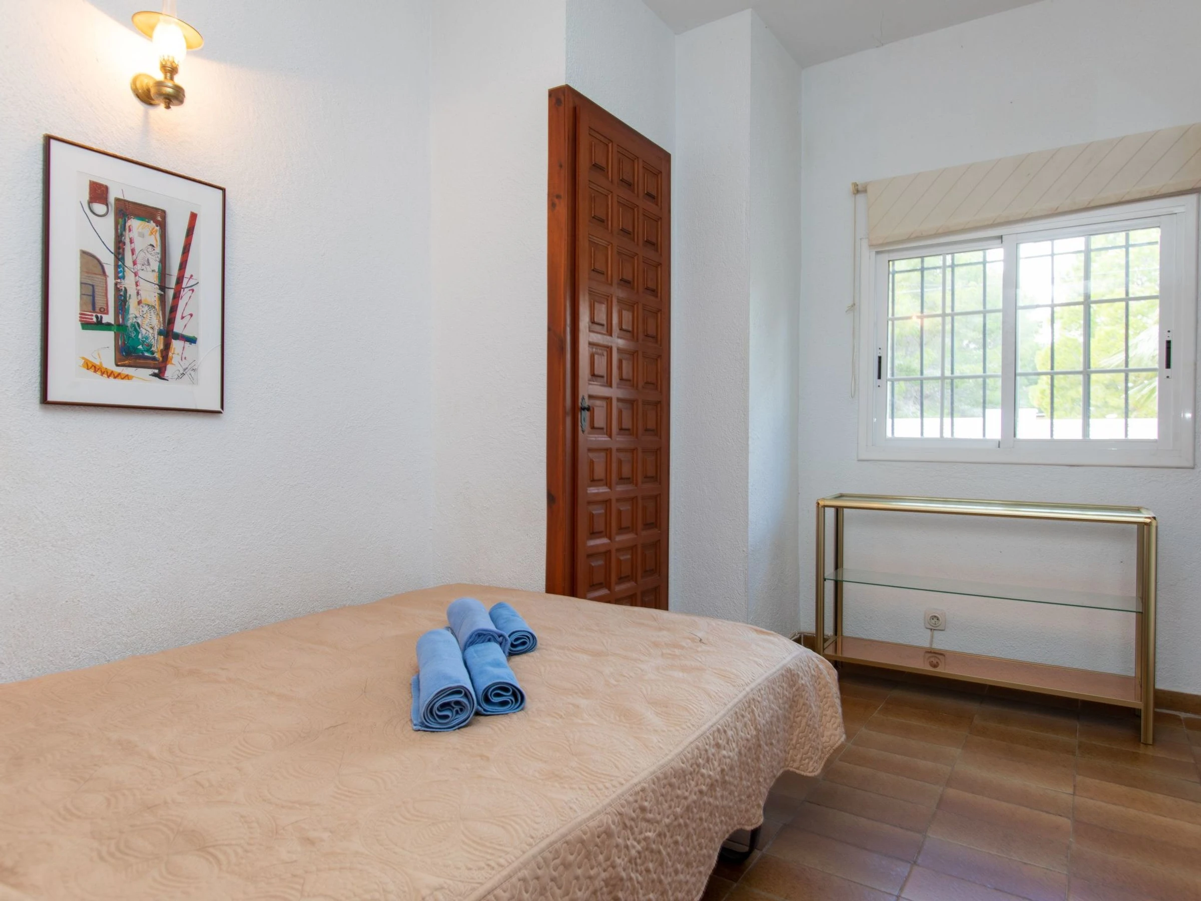 "Villa Torreon", 6-room villa 125 m2 on 2 levels. Comfortable and cosy furnishings: living/dining room with dining table, satellite TV and fan. 2 rooms, each room with 1 french bed (135 cm). 1 room with 2 beds (90 cm). 1 room with 1 x 2 bunk beds (90 cm). Kitchen (oven, dishwasher, 4 ceramic glass hob hotplates, toaster, kettle, microwave, electric coffee machine). Shower/WC. No heating option. Upper floor: 1 room with 1 french bed (200 cm), shower/WC. Exit to the terrace. Patio. Terrace furniture, barbecue. Facilities: washing machine, iron, children's high chair, baby cot, hair dryer. Internet (WiFi, free). Parking at the house. Please note: TV only DE, CH. [hidden] // Reg. Nr.: ESFCTU000043020000037818000000000000000[hidden]9
