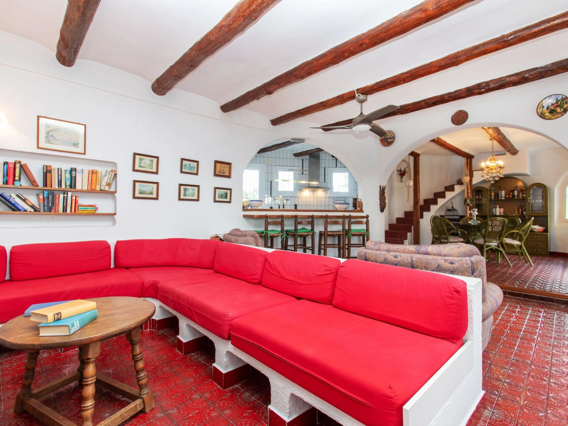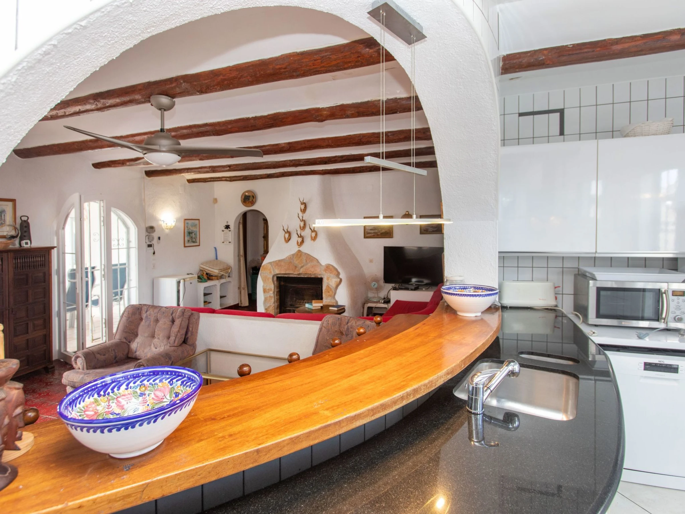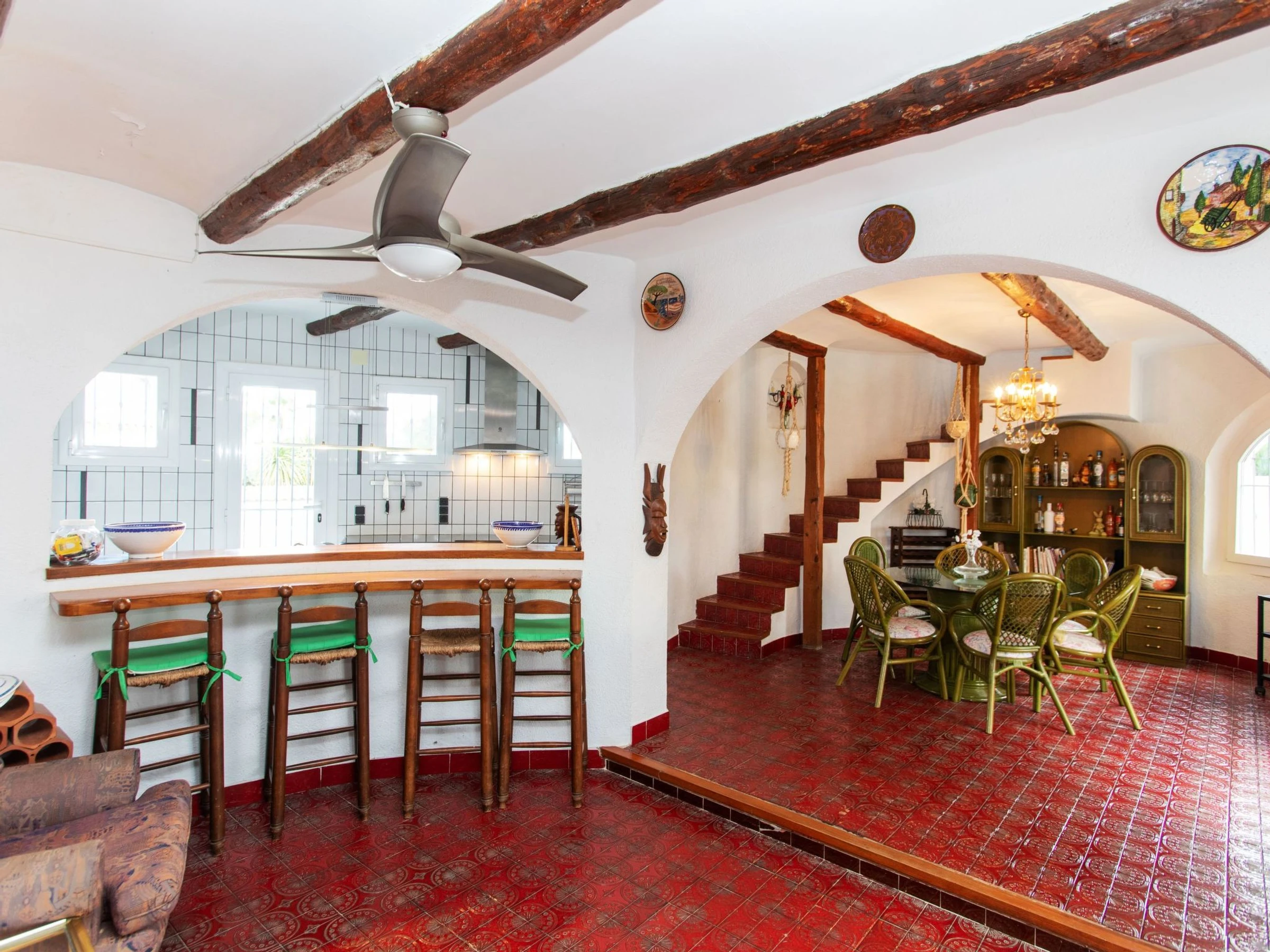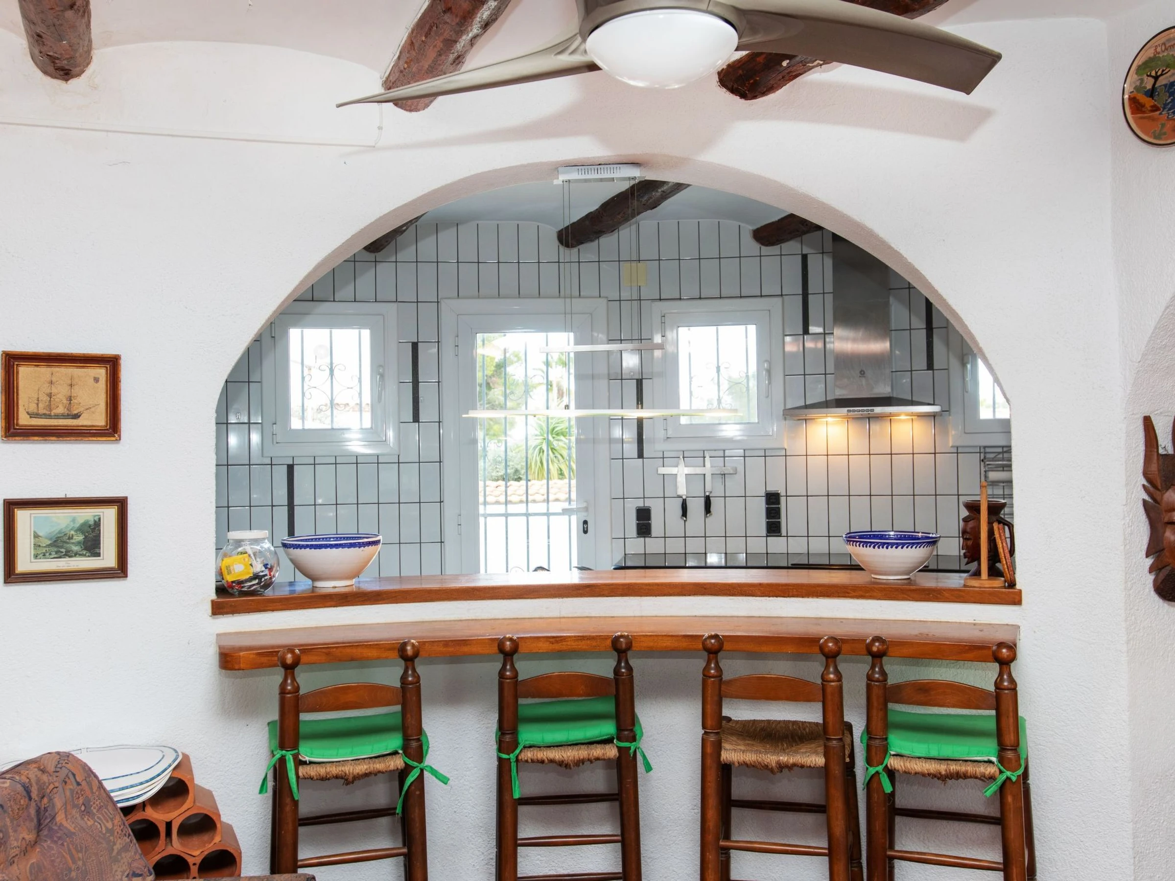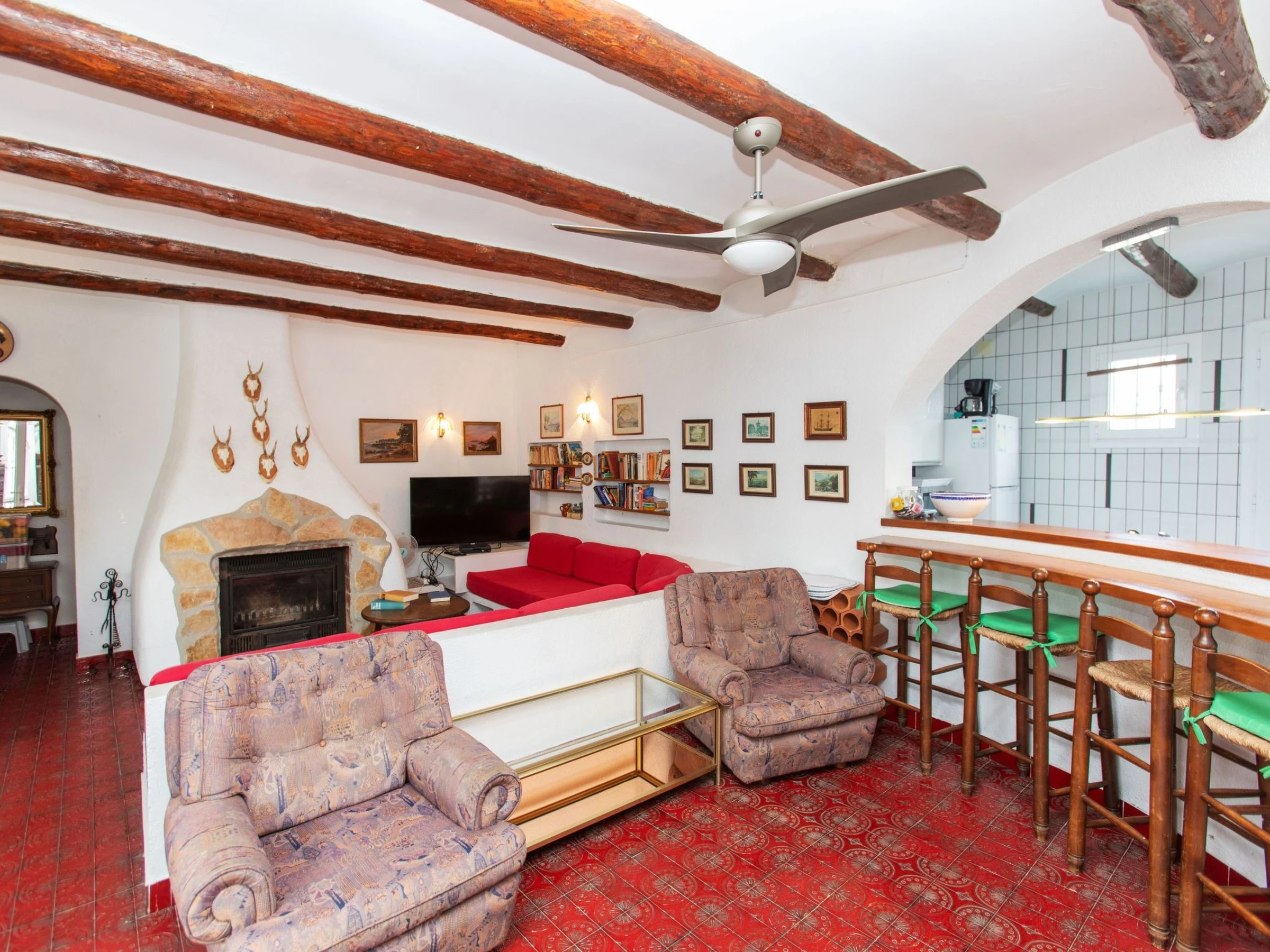 "Villa Torreon", 6-room villa 125 m2 on 2 levels. Comfortable and cosy furnishings: living/dining room with dining table, satellite TV and fan. 2 rooms, each room with 1 french bed (135 cm). 1 room with 2 beds (90 cm). 1 room with 1 x 2 bunk beds (90 cm). Kitchen (oven, dishwasher, 4 ceramic glass hob hotplates, toaster, kettle, microwave, electric coffee machine). Shower/WC. No heating option. Upper floor: 1 room with 1 french bed (200 cm), shower/WC. Exit to the terrace. Patio. Terrace furniture, barbecue. Facilities: washing machine, iron, children's high chair, baby cot, hair dryer. Internet (WiFi, free). Parking at the house. Please note: TV only DE, CH. [hidden] // Reg. Nr.: ESFCTU000043020000037818000000000000000[hidden]9