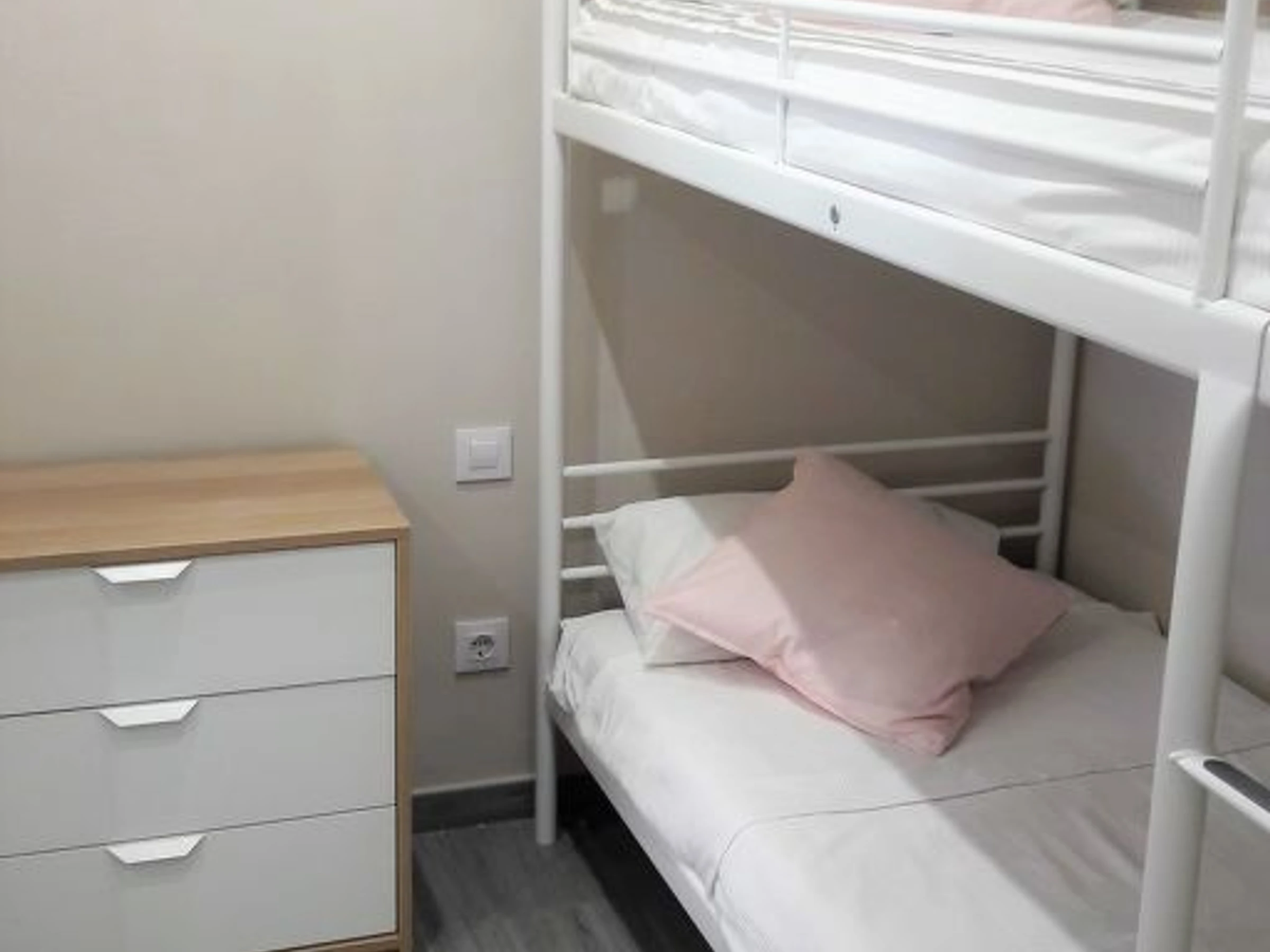 4-room terraced house 73 m2 on 3 levels on 1st floor. Comfortable and modern furnishings: 1 room with 1 french bed and air conditioning. Exit to the balcony. 1 room with 1 french bed and air conditioning. Exit to the balcony. 1 room with 1 x 2 bunk beds. Shower/WC. Upper floor: living/dining room with cable TV, flat screen and air conditioning. Exit to the terrace. Kitchen (oven, 1 ceramic glass hob hotplate, microwave, freezer, electric coffee machine). Exit to the terrace. Sep. WC. Terrace furniture. Facilities: washing machine. Internet (WiFi, free). [hidden]