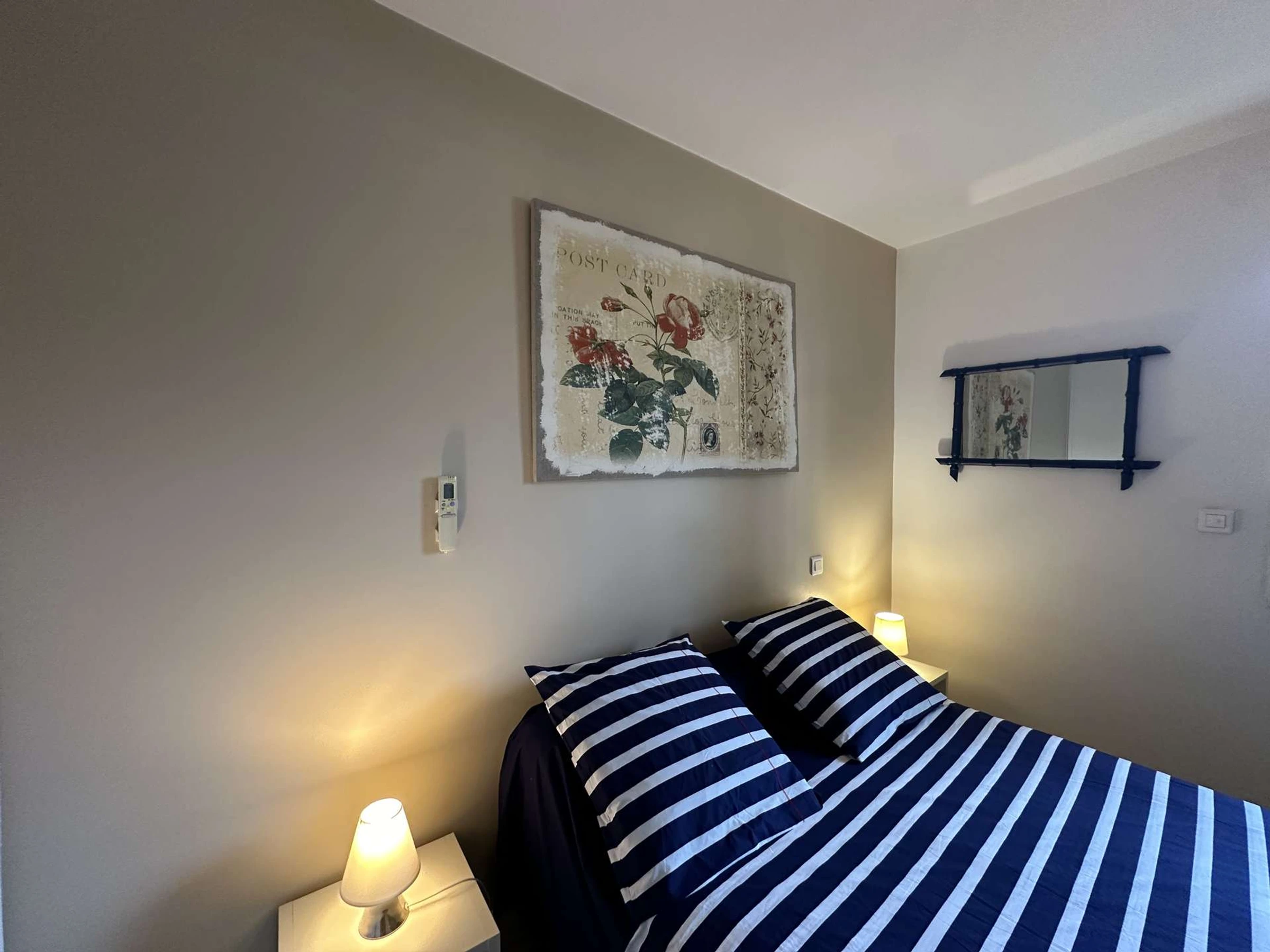 This beautiful apartment is located on the ground floor and is composed of an equipped kitchen, a living room with a convertible sofa, a bathroom with WC, a bedroom with a double bed (140).