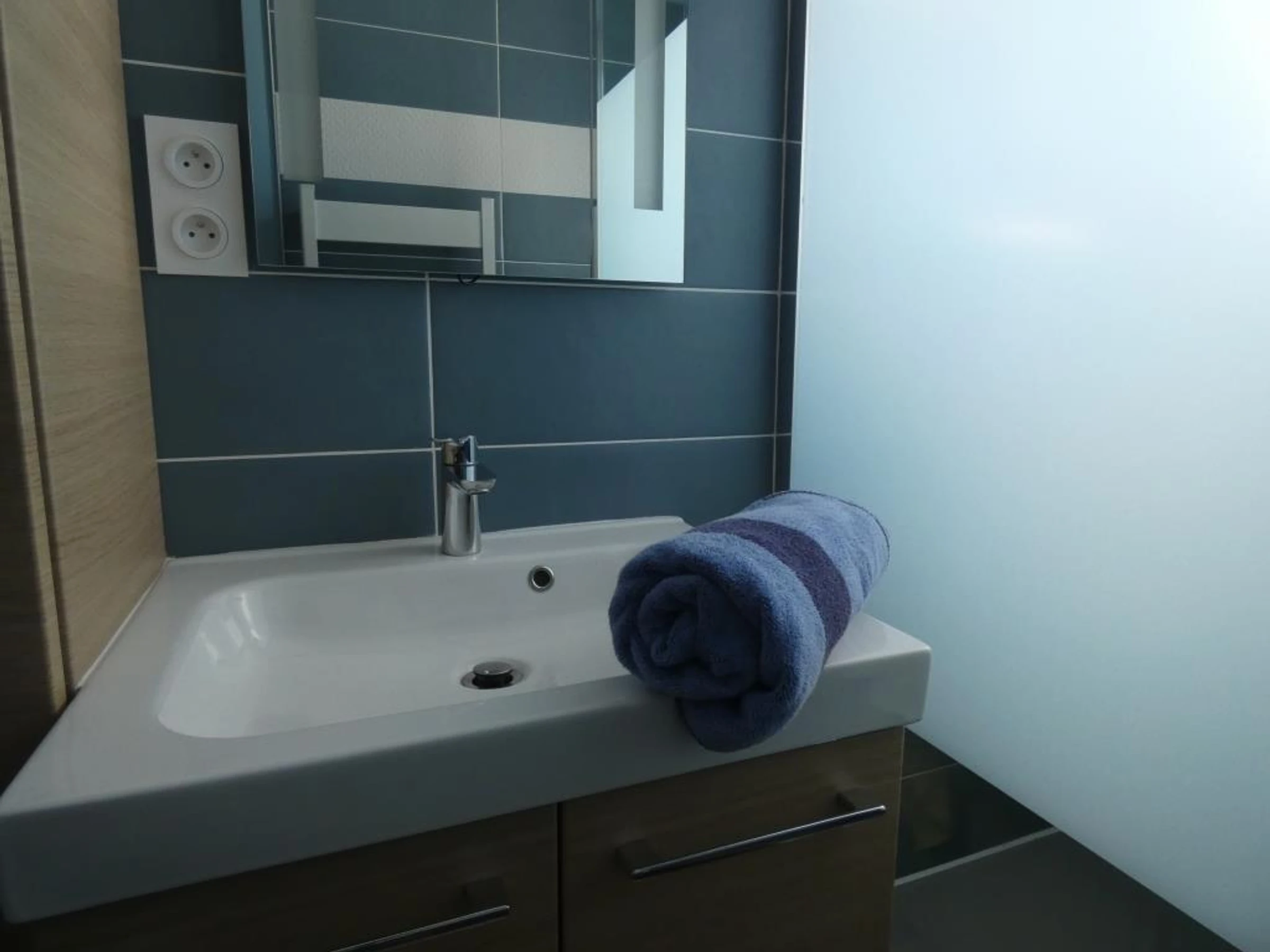 - A bedroom with a double bed (140x190) and duvet + 2 pillows.