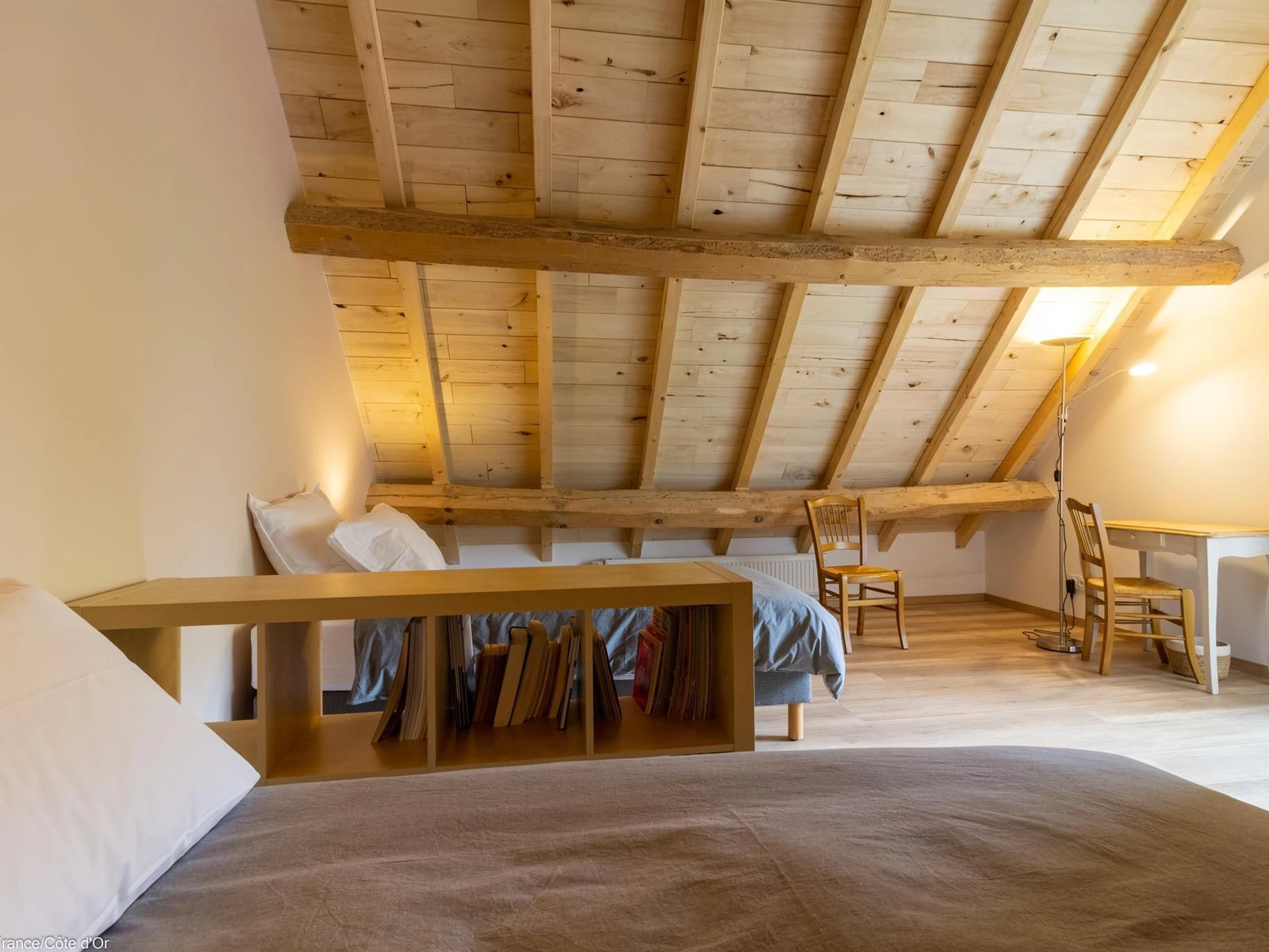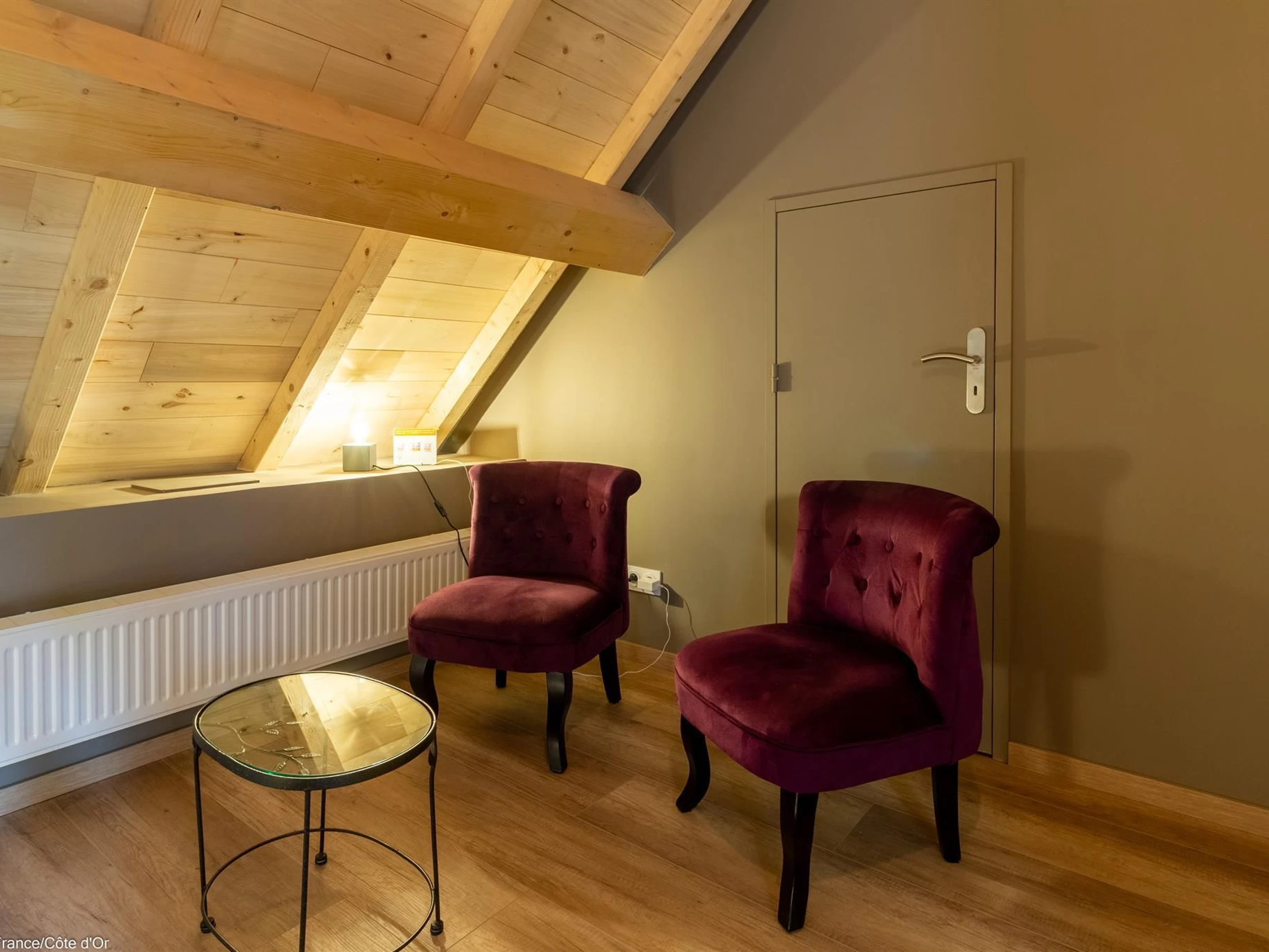 In this beautiful building of character, renovated with great care, you will appreciate the charm and comfort of these spacious and harmonious rooms with soft colors, nicely furnished. Lovers of old stones, authenticity and refinement will be delighted. 5 rooms are available including two family rooms and 1 suite. For your comfort, pretty lounge with a large library. Breakfasts are served in the dining room or in fine weather in the enclosed and wooded garden. Fresh, local and homemade products are offered. Accommodation certified Green Key and Accueil Vélo. Loan of bicycles. Parking in the courtyard closed by a gate. Bicycle storage in a closed shed. Restaurant in the village. A38 motorway exit, junction n°30 at Pont-de-Pany. Ideal for families, this completely private space is composed of a bedroom with a 160x200cm bed and a second bedroom with two 90X200cm beds that can be joined. Bathroom with shower and bathtub. Separate toilet. Lounge / reading area with a 5th 90x190cm bed (20€ / on request). WIFI