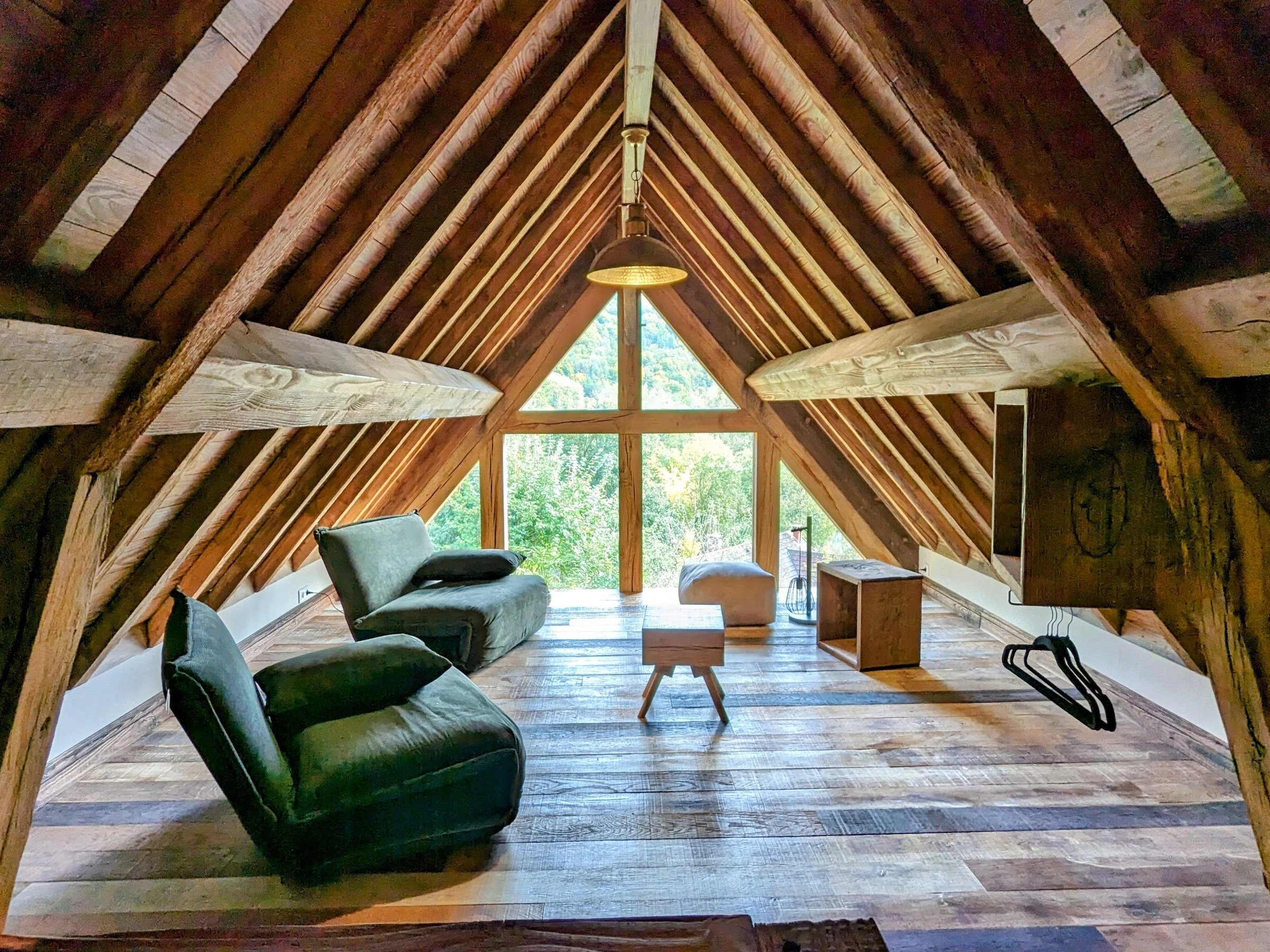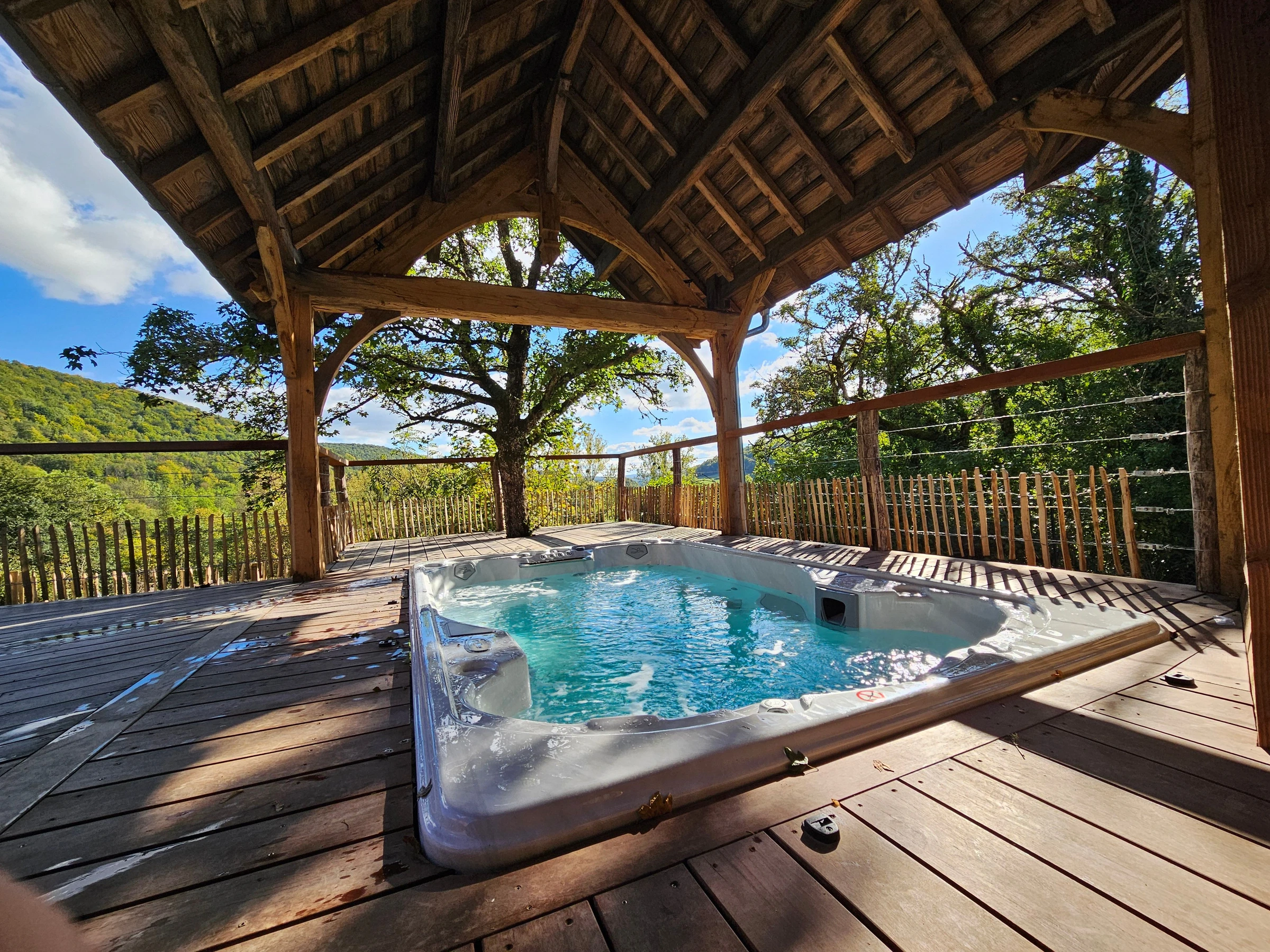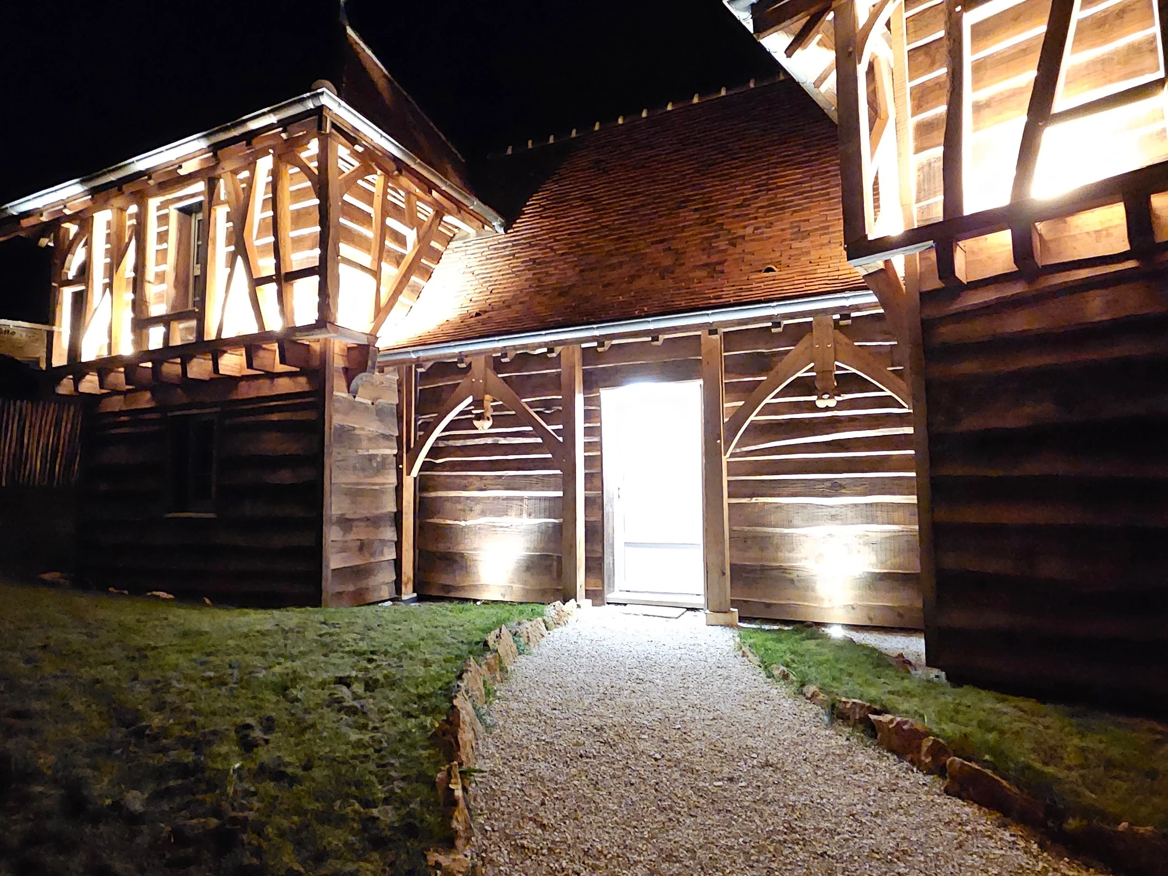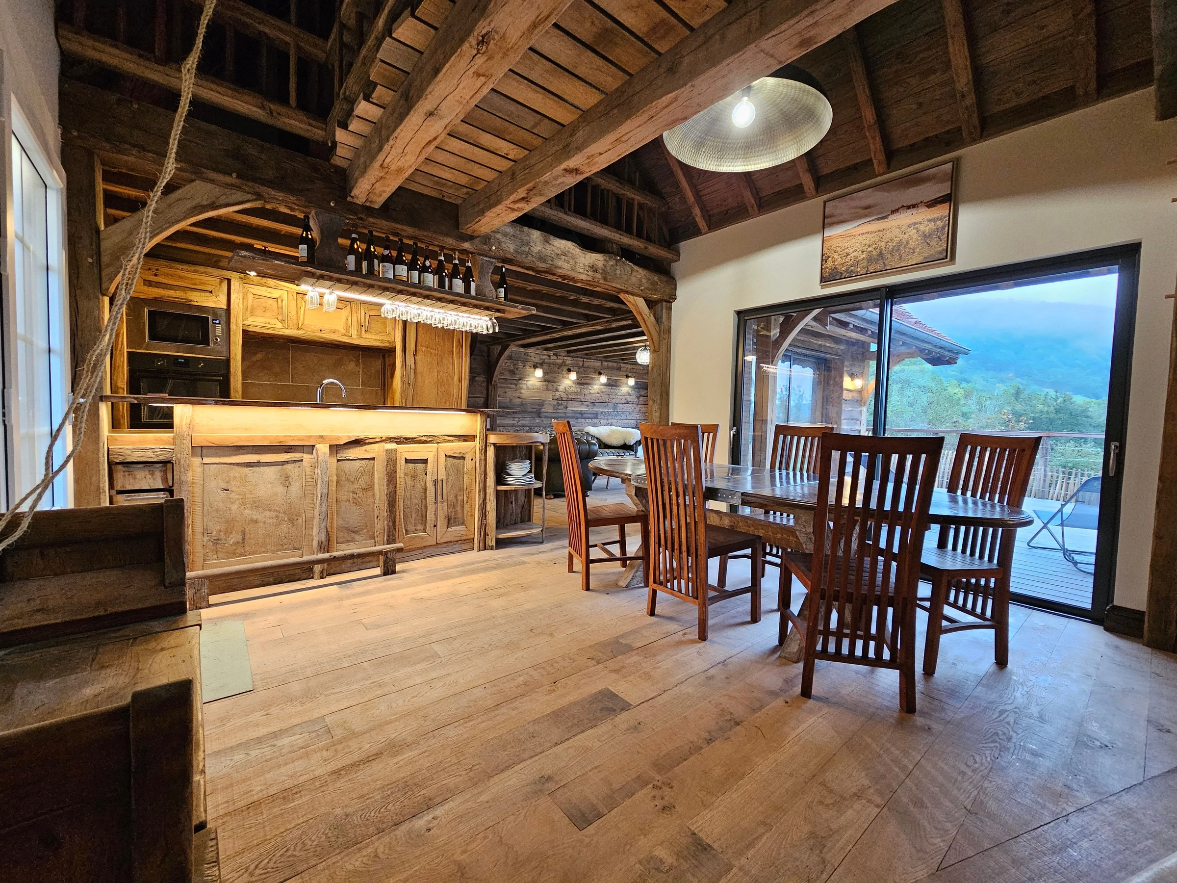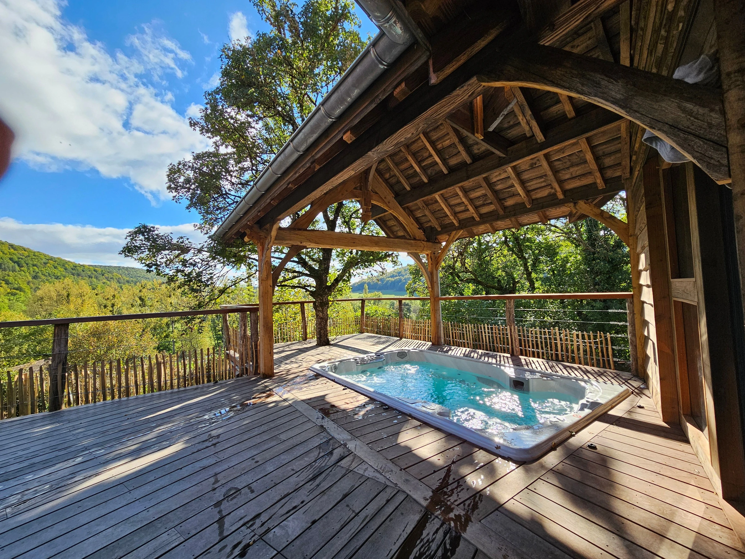 Loosely inspired by the Château du Clos Vougeot, this impressive 100% wooden cottage, with large swimming spa, was entirely built by Arnaud, a carpenter by trade, and Hélène, his wife. They will welcome you in a luxury accommodation with refined decoration and imposing exposed beams.
