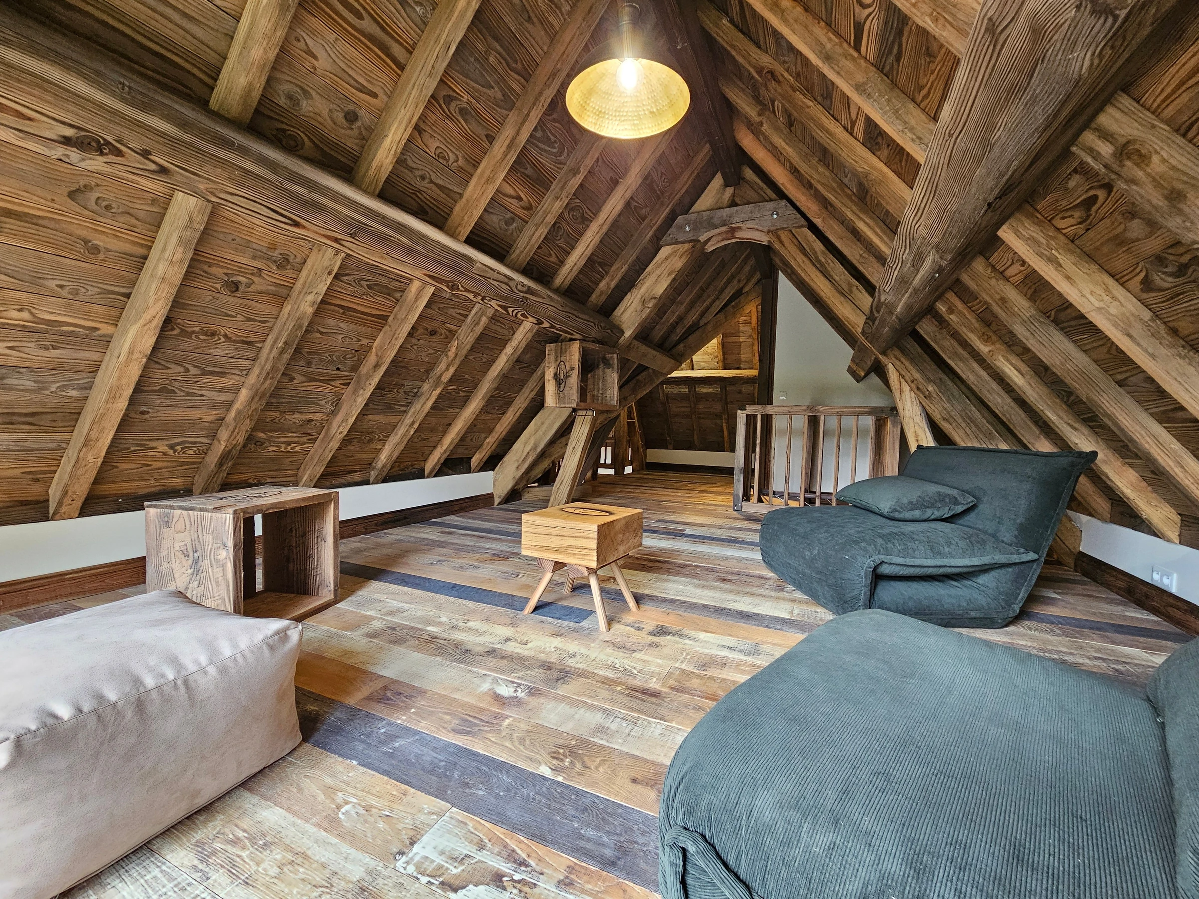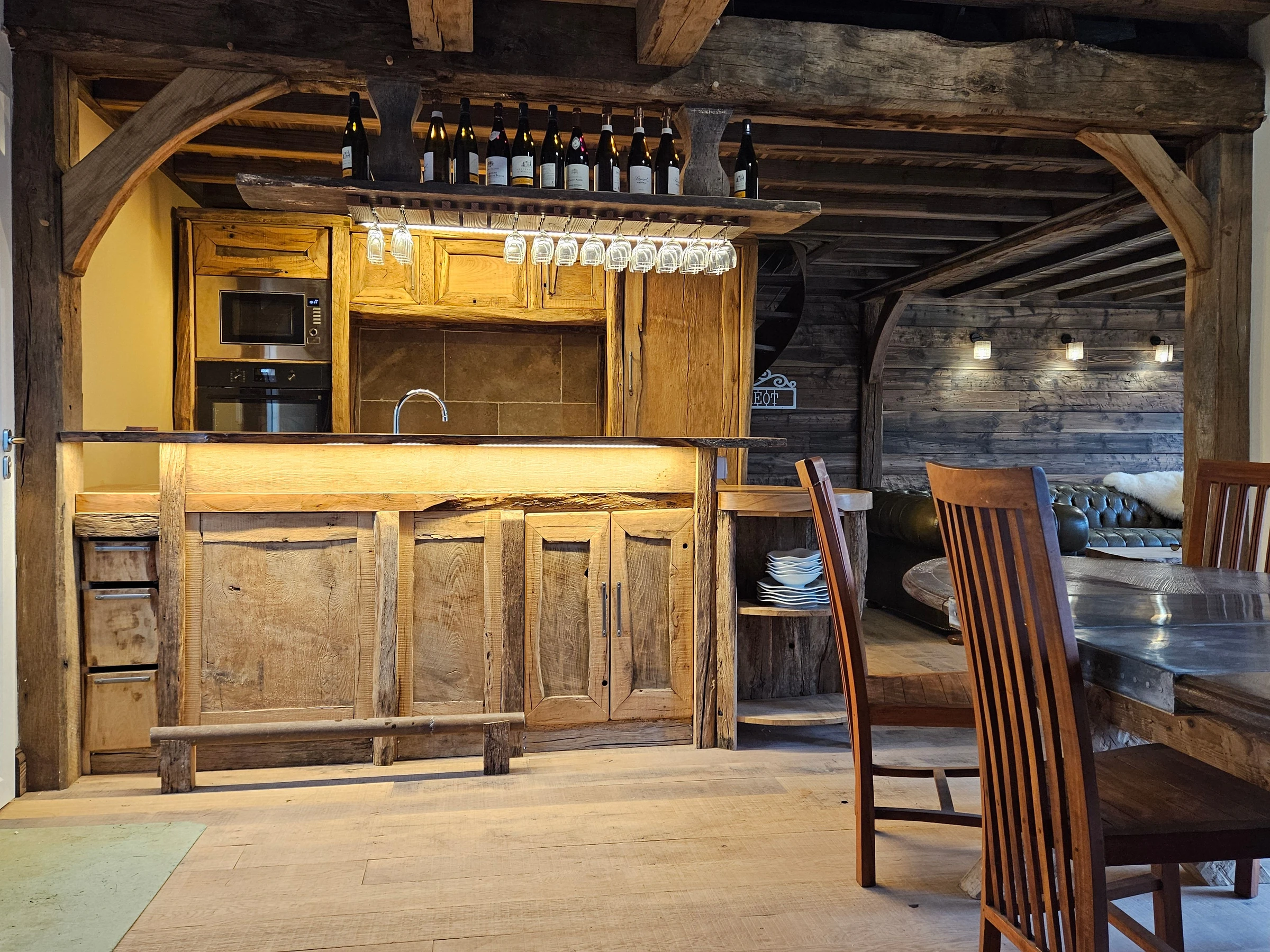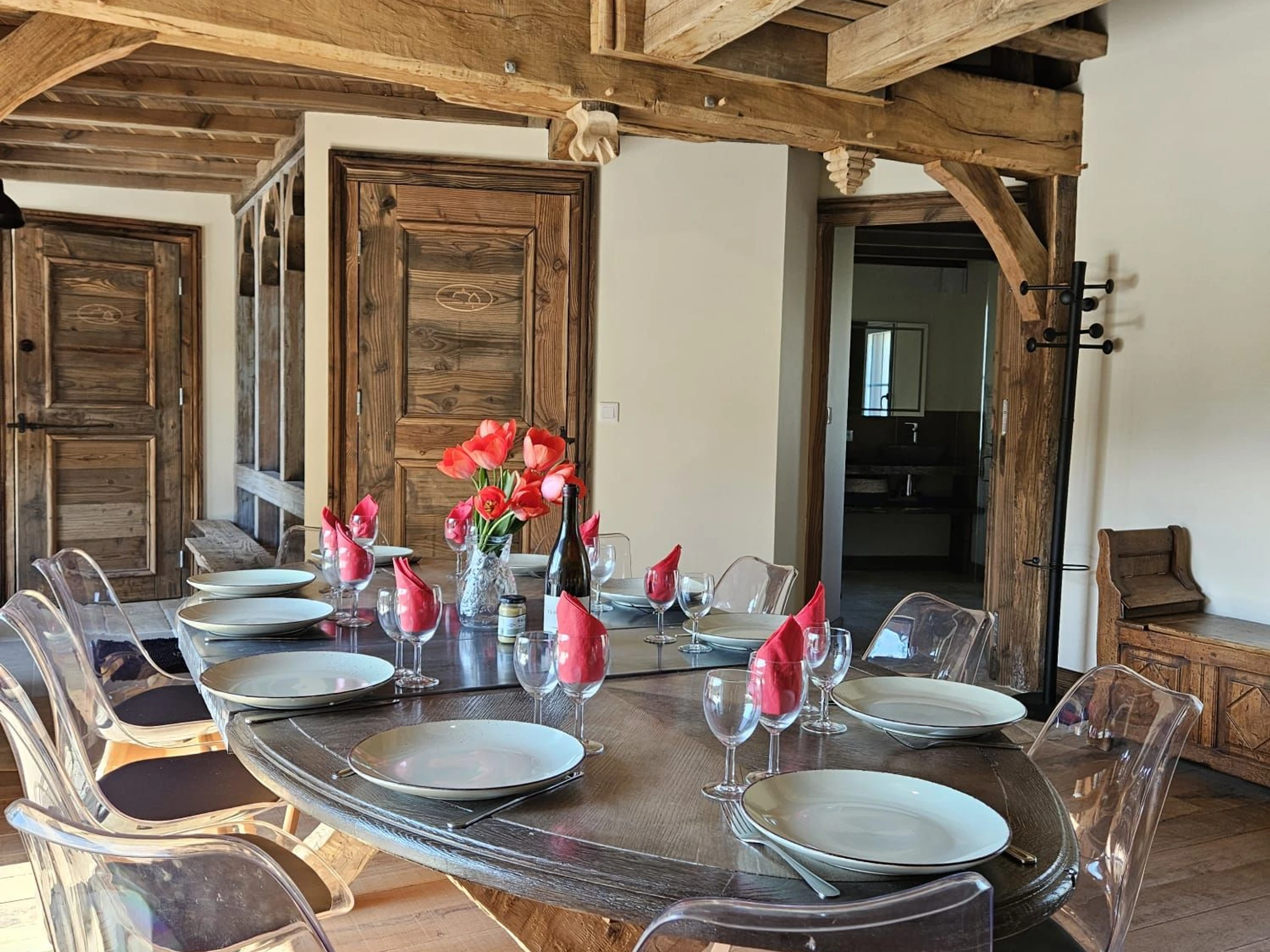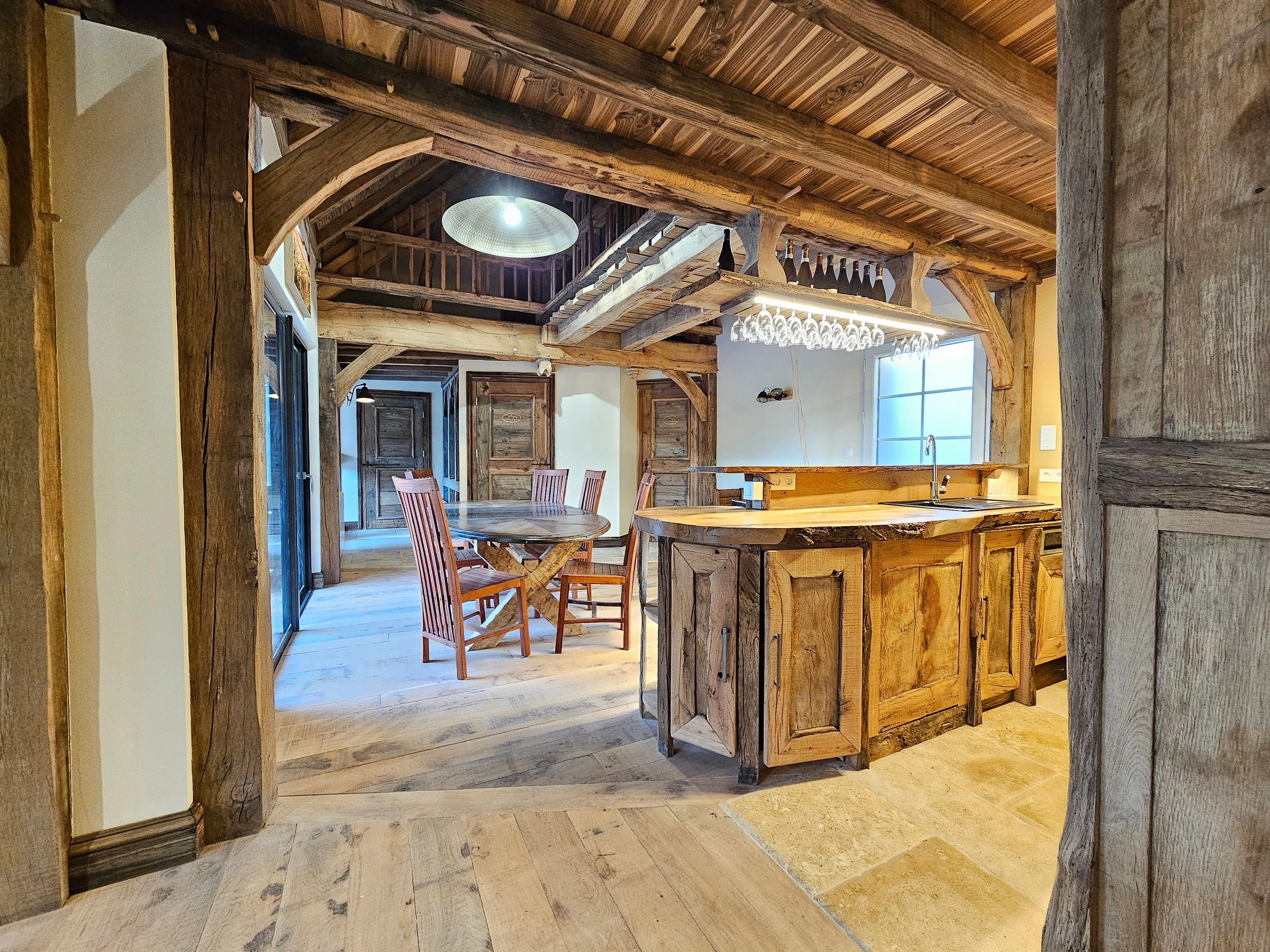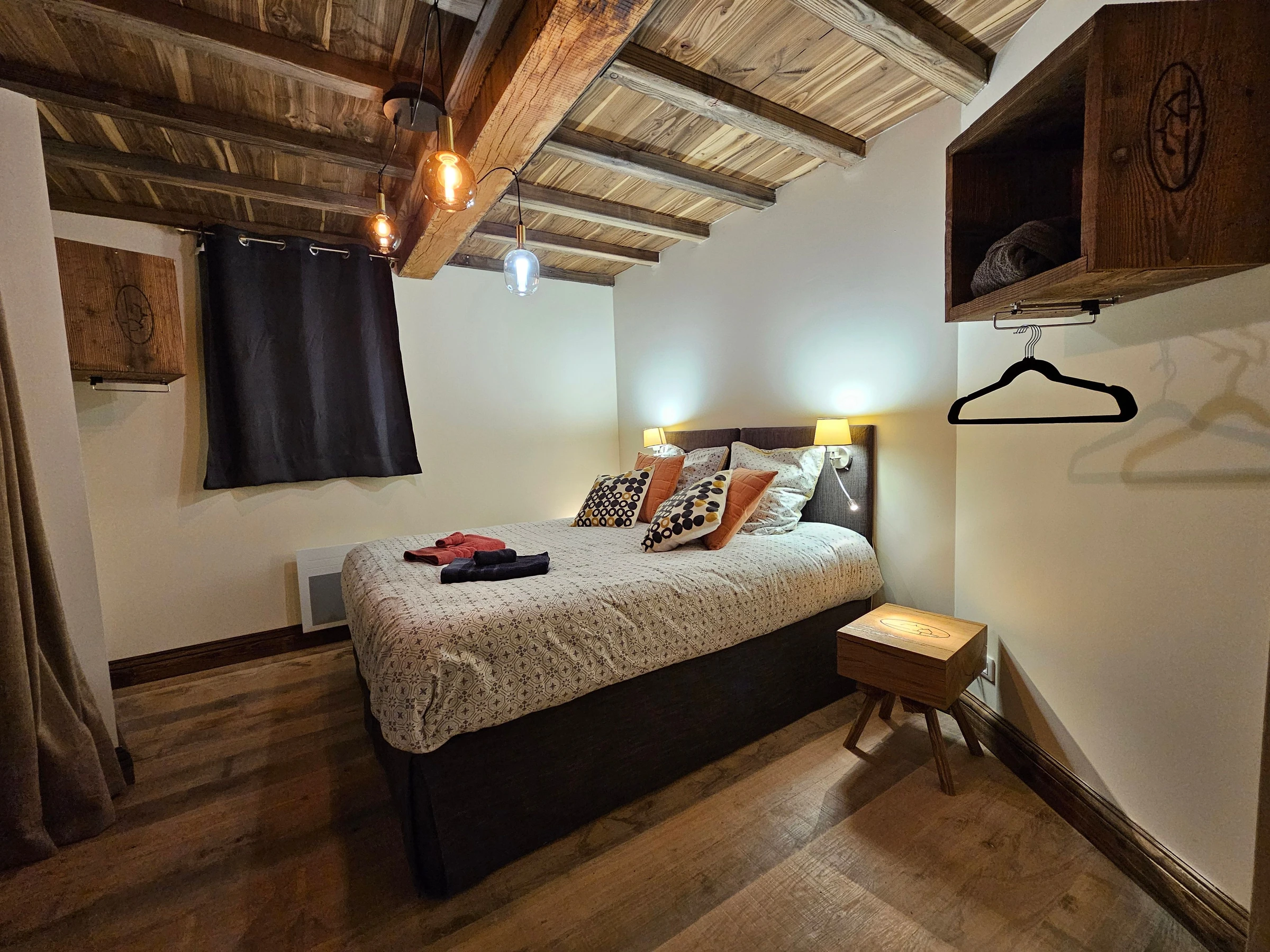 Loosely inspired by the Château du Clos Vougeot, this impressive 100% wooden cottage, with large swimming spa, was entirely built by Arnaud, a carpenter by trade, and Hélène, his wife. They will welcome you in a luxury accommodation with refined decoration and imposing exposed beams.