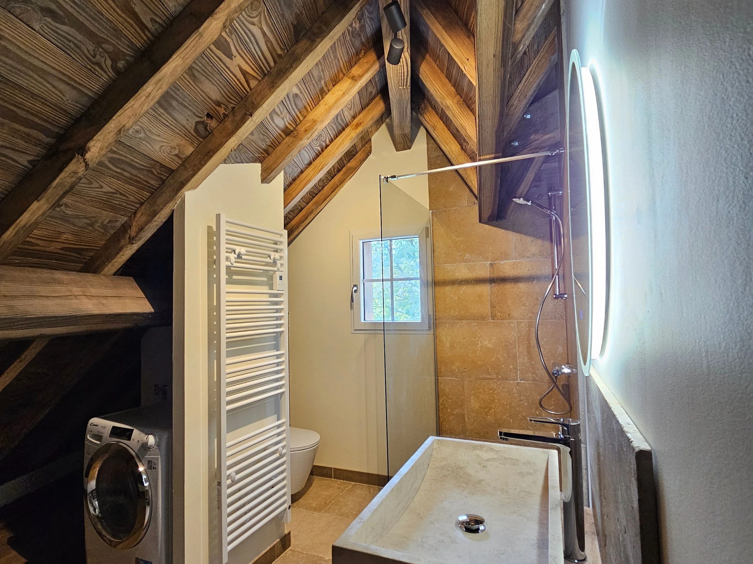 On the ground floor: Fully equipped kitchen open to the dining room with direct access to the terrace, 2 bedrooms: 1 with 2 twin 80 cm beds and the other with 2 twin 90 cm beds. 1 cozy living room with bay window, offering a magnificent view of the Ouche Valley, TV (wifi being installed on 10/10/2024). Upstairs (access by a narrow spiral staircase): 1 mezzanine with 2 90 cm beds, 2 bedrooms each with 2 twin 90 cm beds. Shower room with Italian shower, washing machine. 1 separate toilet. Large terrace with open view, swimming SPA (depth 1.20m). Private parking.