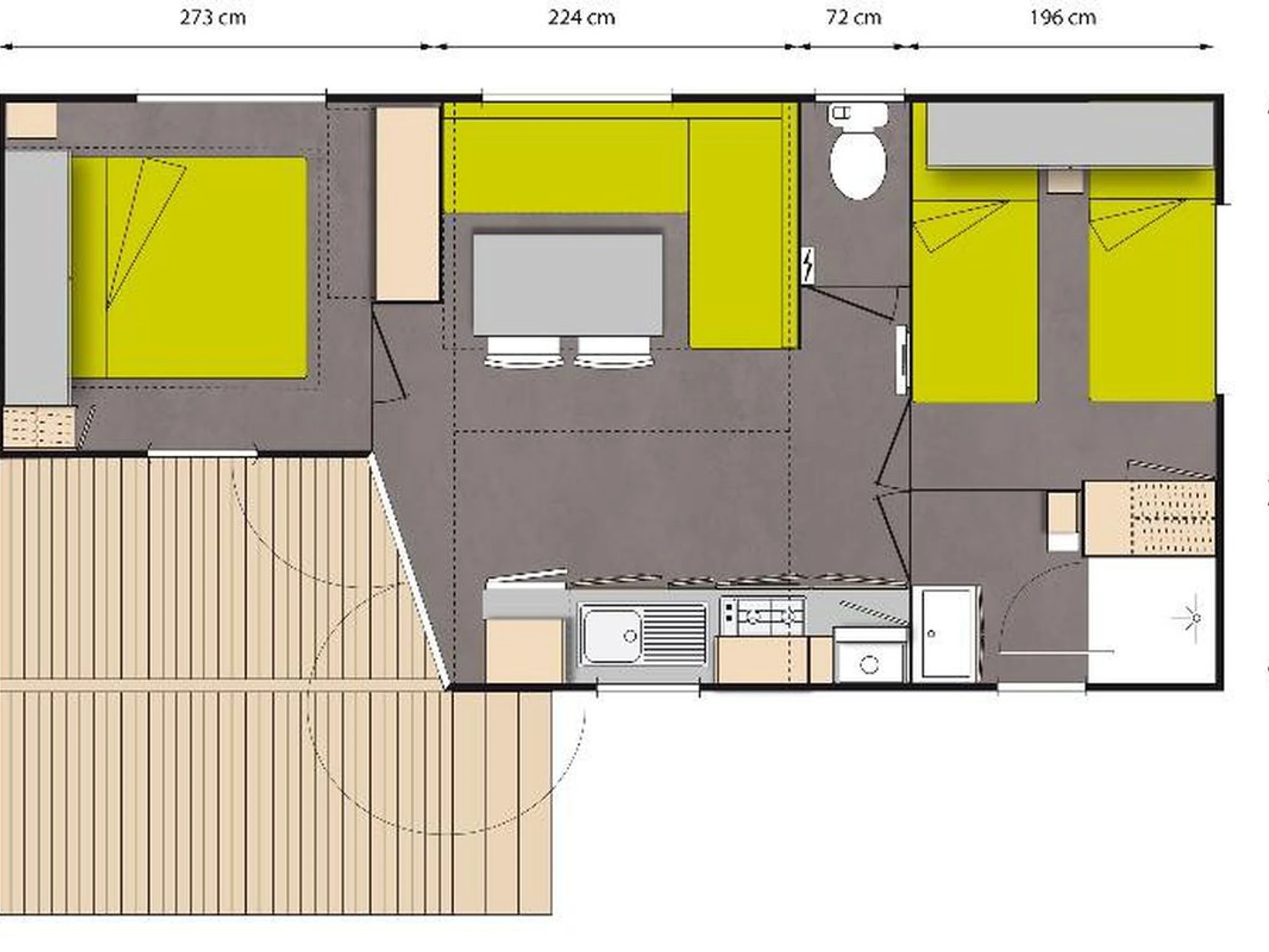 28m² mobile home for 4 people:
