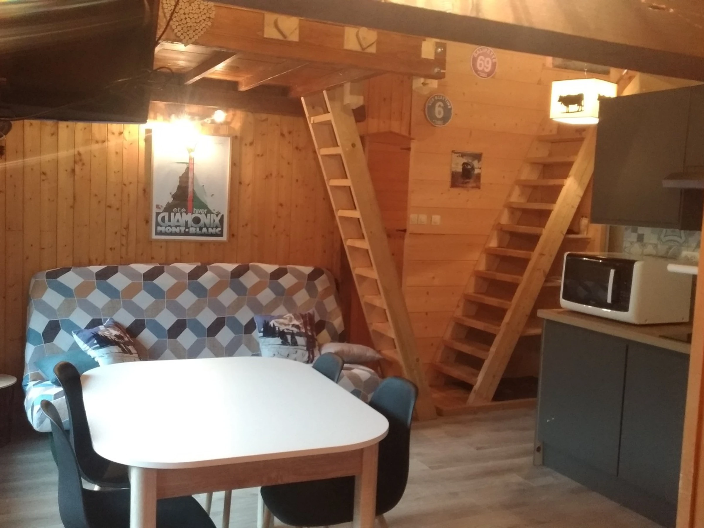 Studio on the 3rd floor, 24m², comprising an entrance opening onto the living room with fitted kitchen, a bathroom with shower and toilet, a lounge area with sofa bed (140 X190), access to the two mezzanines with double beds (140x190).
