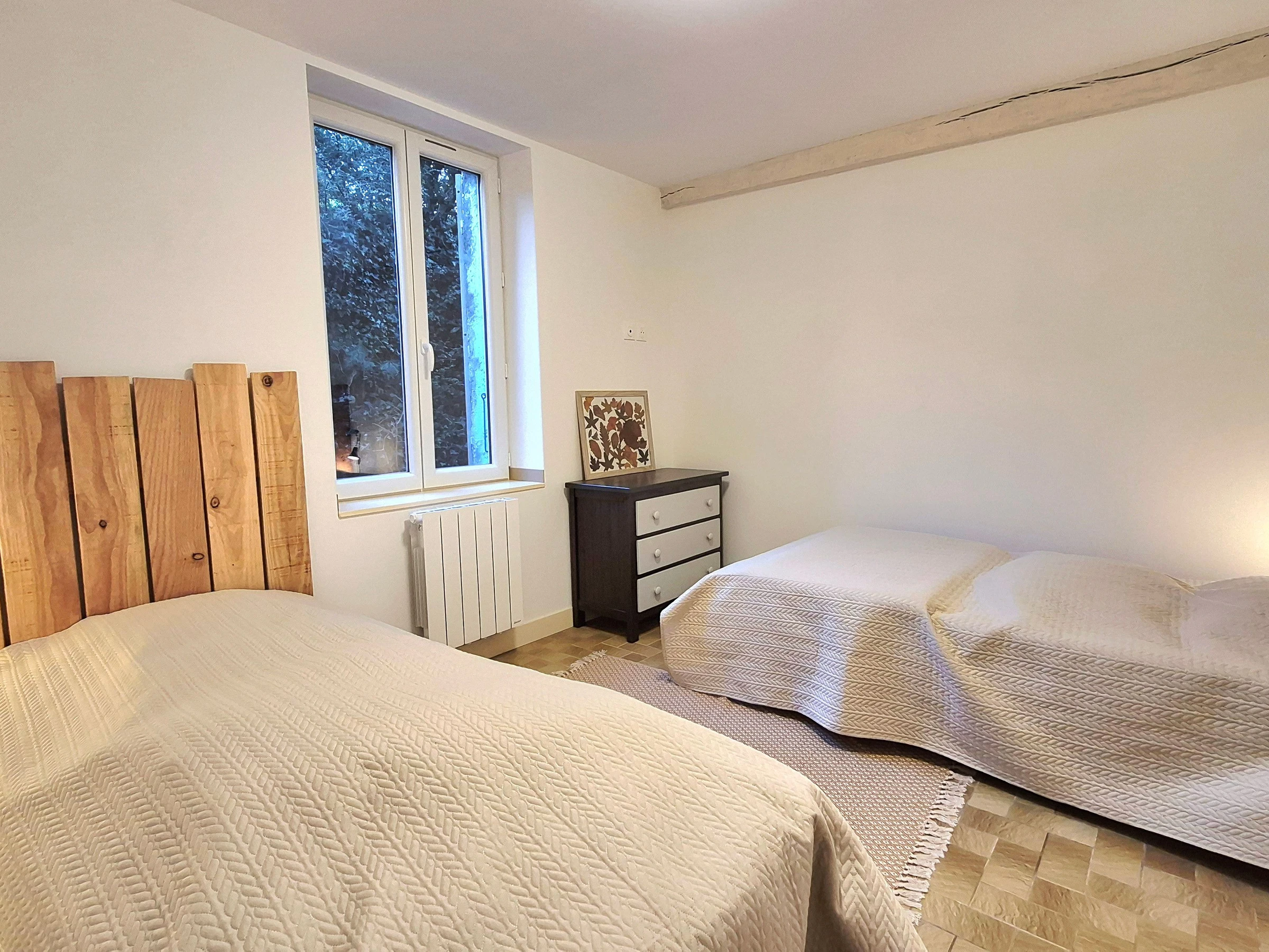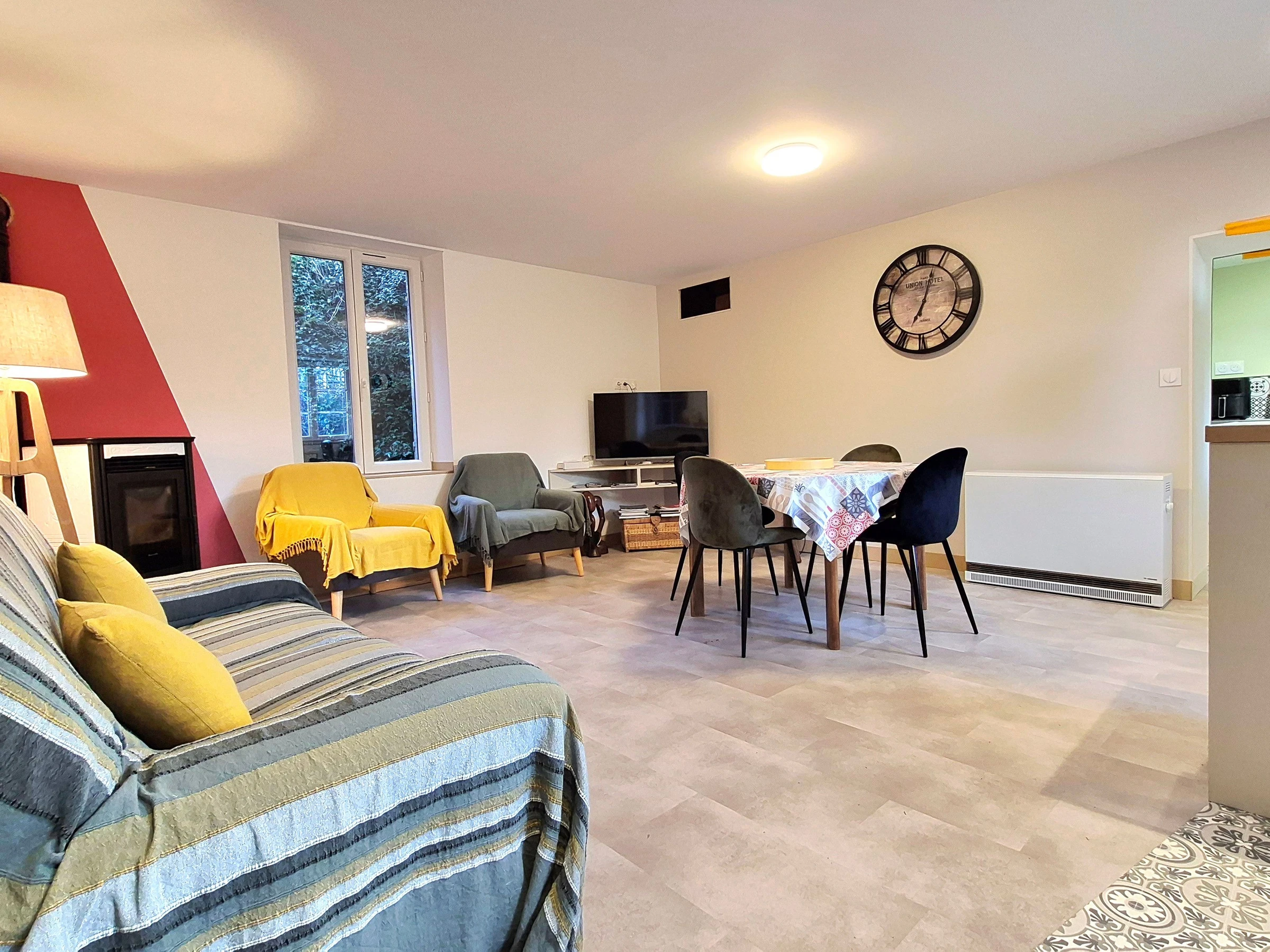 In a quiet hamlet near La Charité-sur-Loire, you'll find a charming, renovated cottage and its beautifully landscaped grounds (small pond, part of which is home to beehives), ideal for relaxation. The cottage features a living room, two bedrooms (one with a queen-size bed and the other with two single beds), a fully equipped kitchen, a bathroom (with a large shower), a laundry room (with a washing machine), a pantry, two toilets (one main and one additional), private parking, a terrace, and landscaped grounds. A high chair and travel cot are available. There is also a storage area for bicycles or motorcycles.