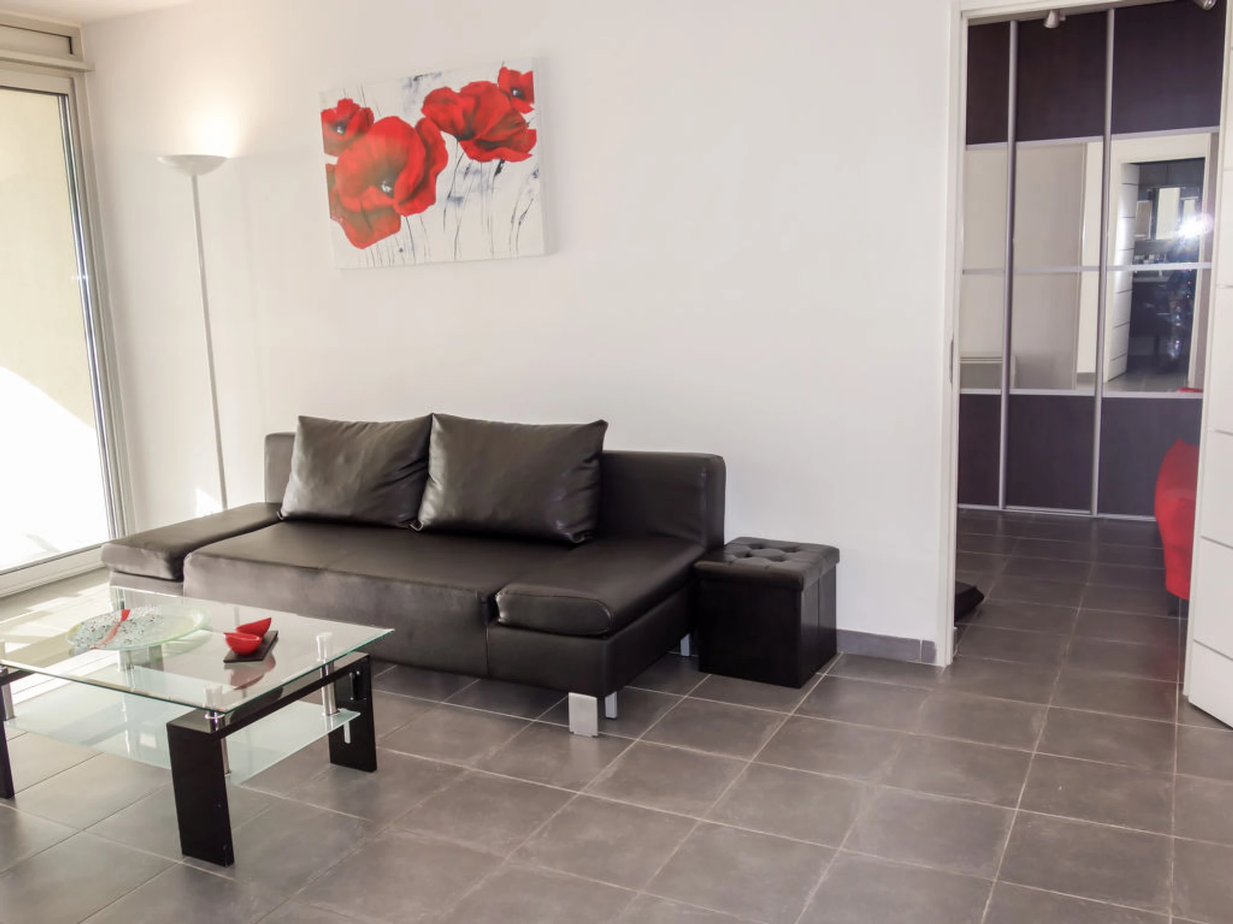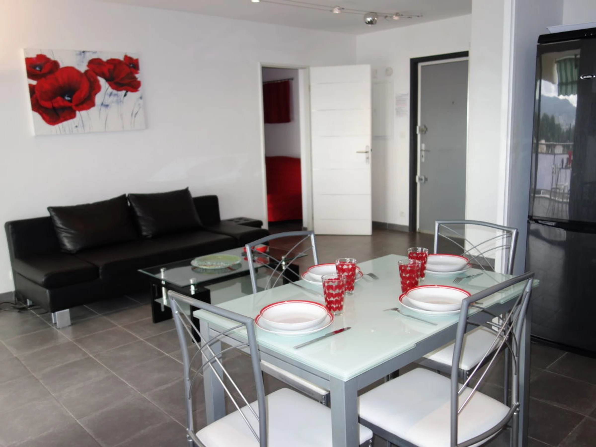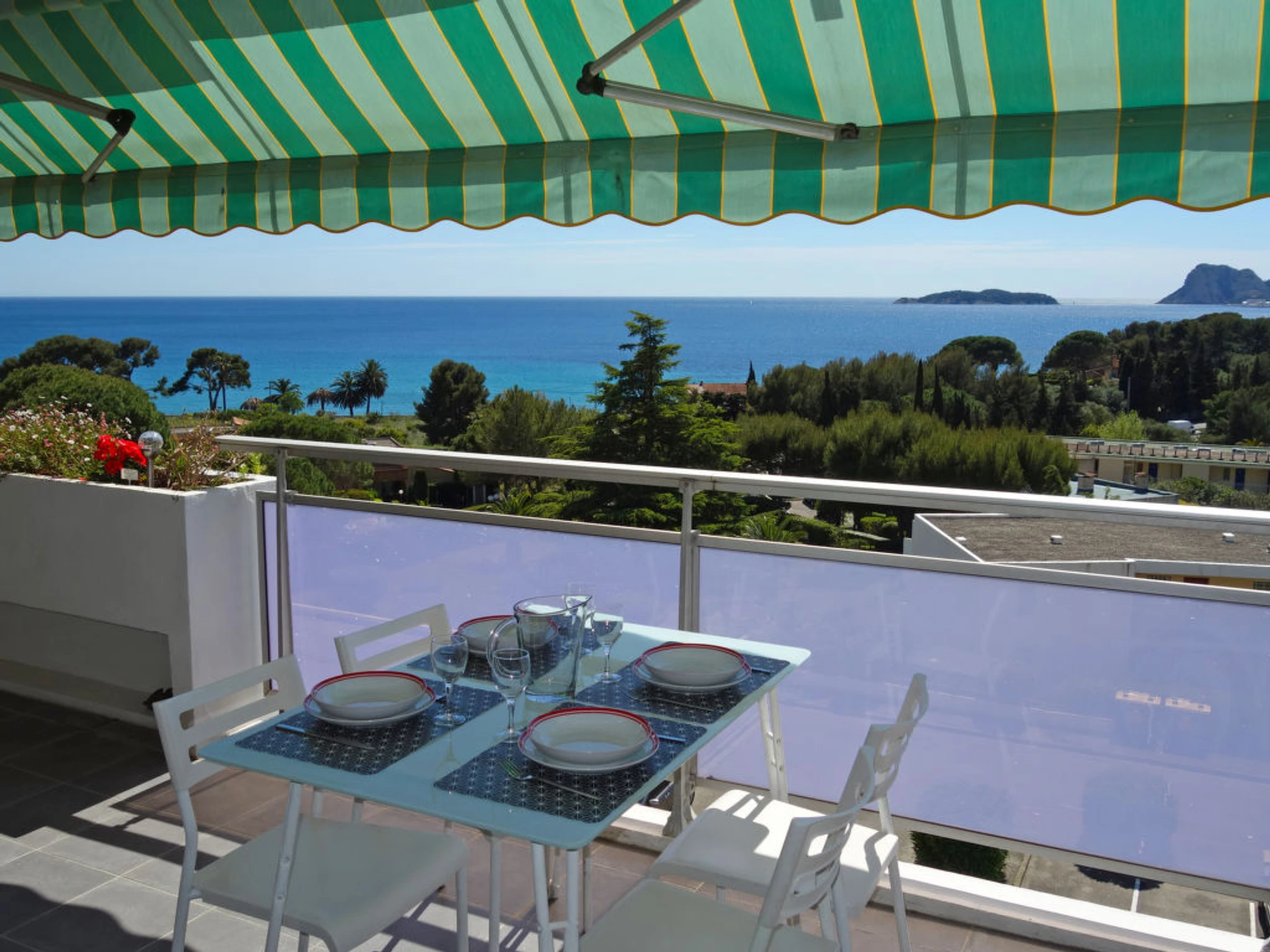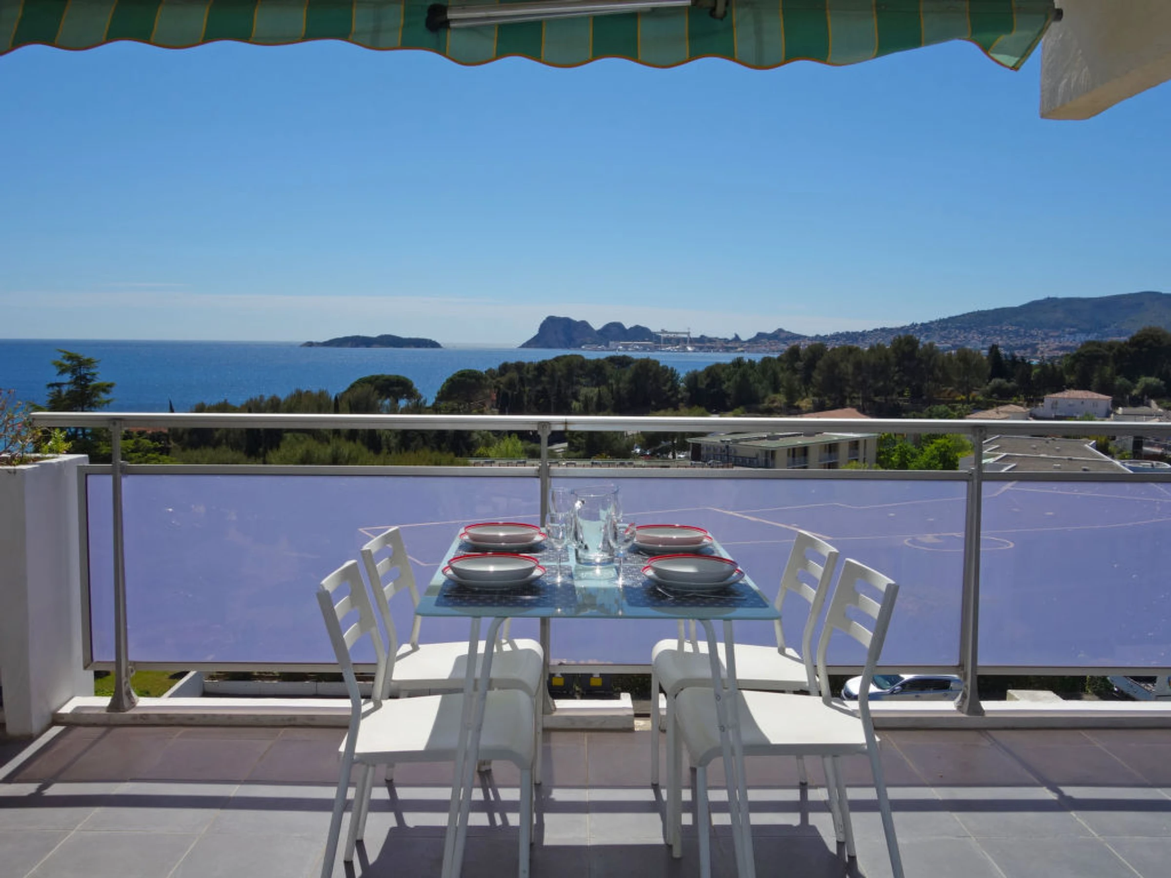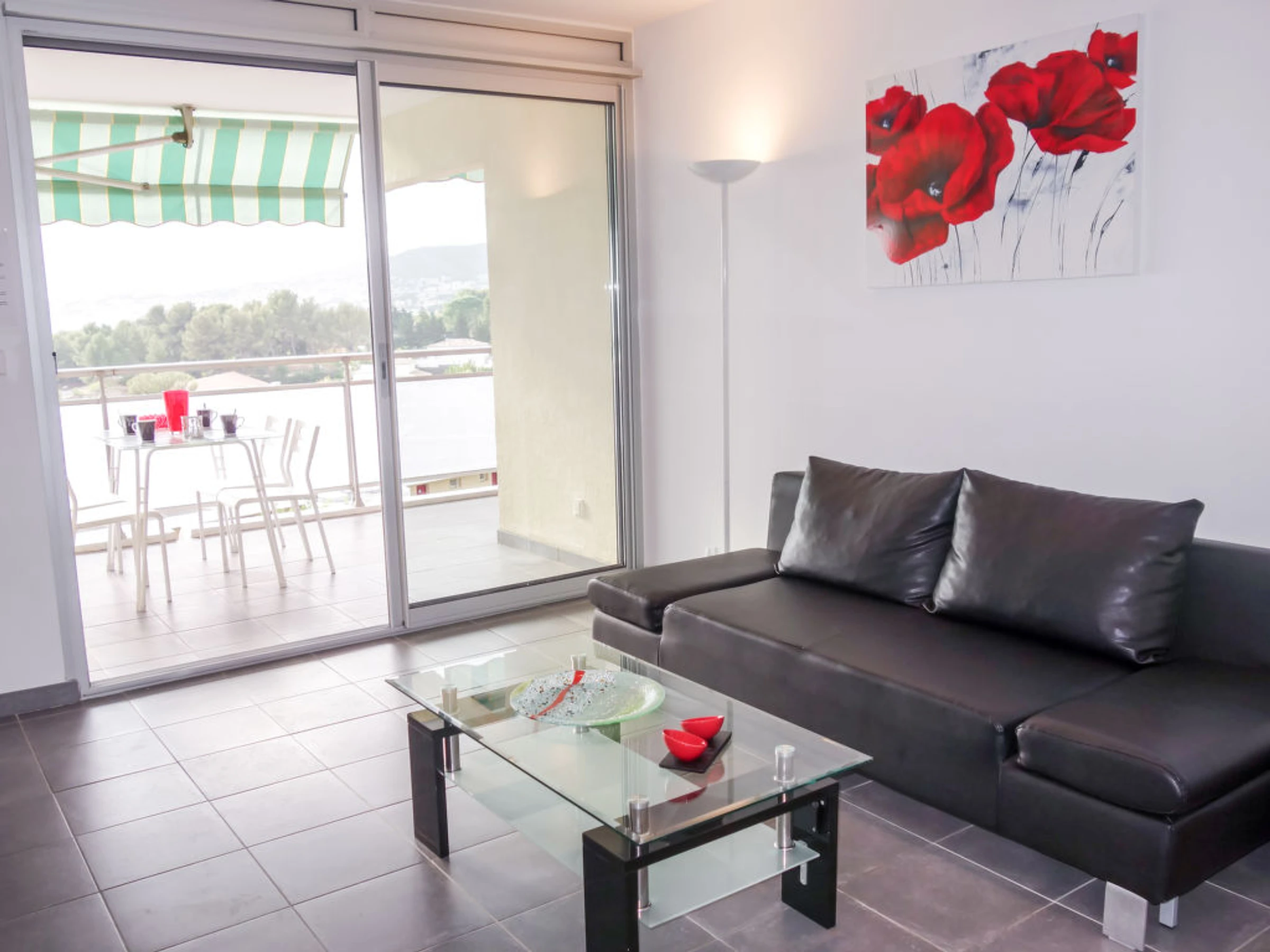 3-room apartment 56 m2 on 2nd floor, south facing position. Renovated in 2012, practical and modern furnishings: large living/dining room with TV (flat screen). Exit to the terrace, south facing position. Walk-through room with 1 double sofabed (140 cm, length 190 cm). 1 room with 1 french bed (1 x 140 cm, length 190 cm). Exit to the terrace. Large, open kitchen (oven, dishwasher, 3 induction hot plates, freezer, electric coffee machine, combination microwave). Shower, sep. WC. Electric heating. Large terrace 20 m2, roofed, south facing position. Terrace furniture, electric barbecue. Marvellous panoramic view of the sea. Facilities: washing machine, iron. Internet (WiFi, extra). Reserved parking space n 188. Please note: TV only FR. Smoke alarm, no lift. Access to the bedroom with the double bed is throught the bedroom with the double sofa bed.