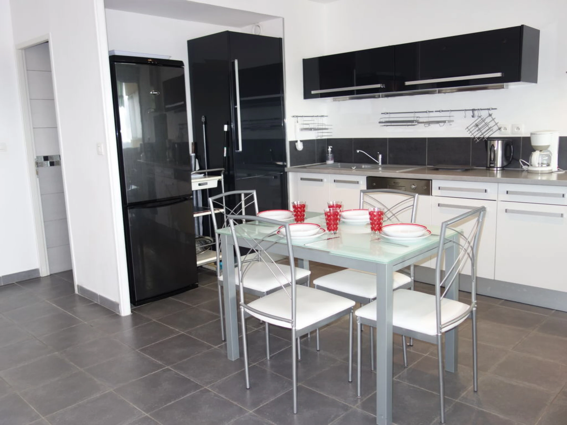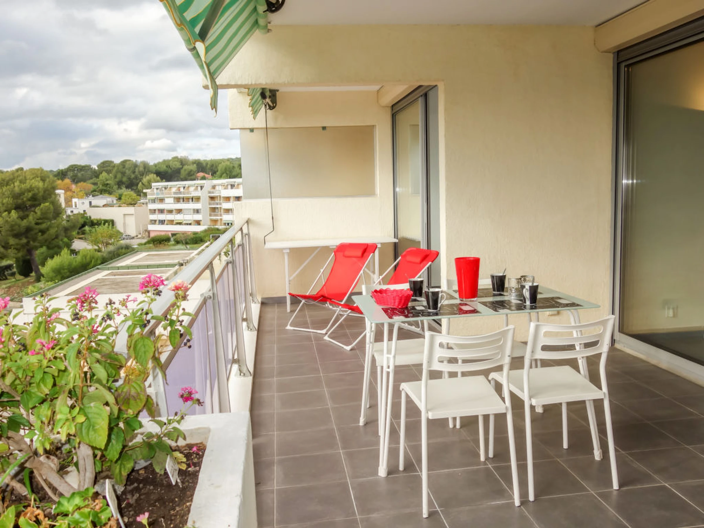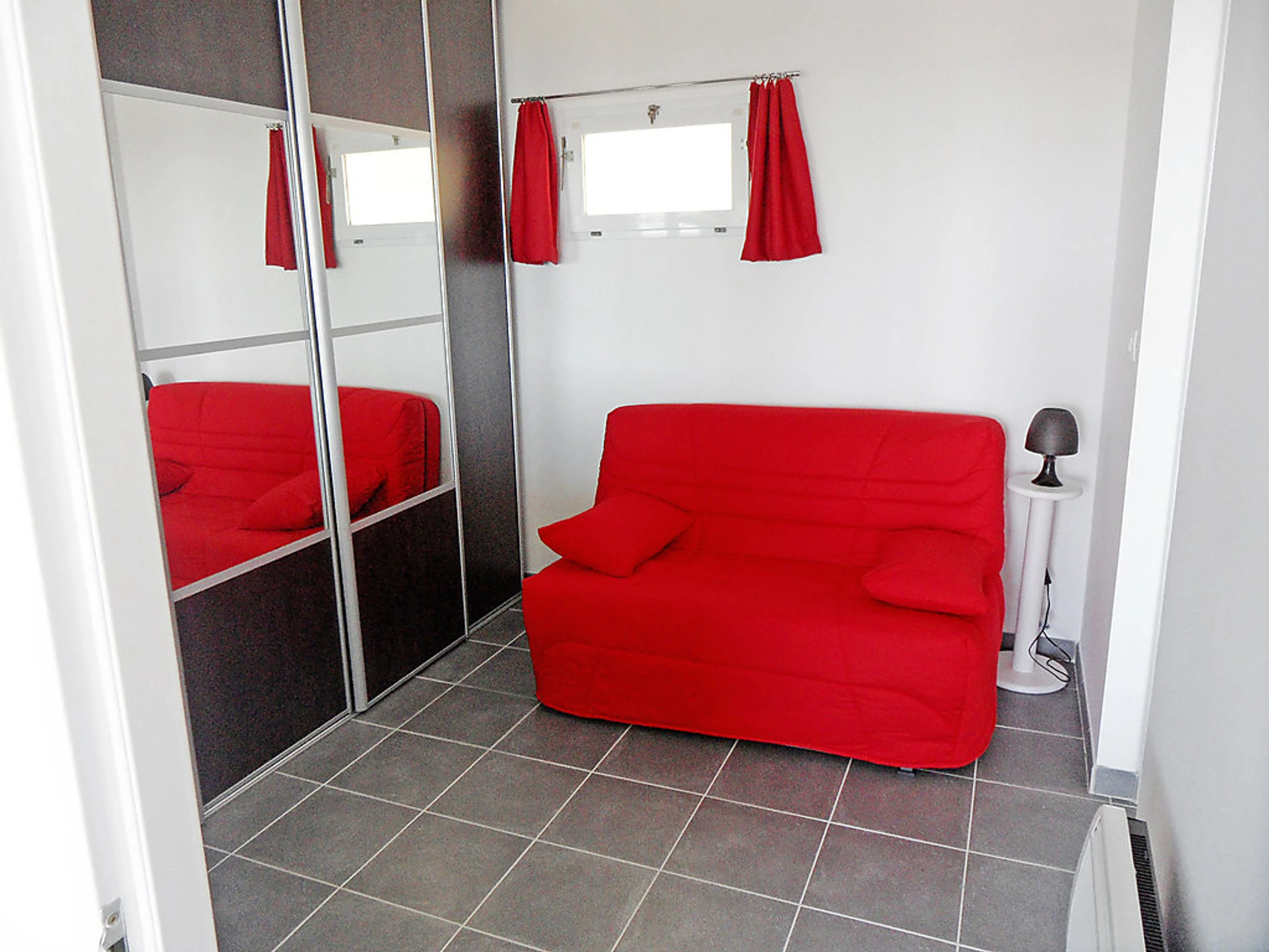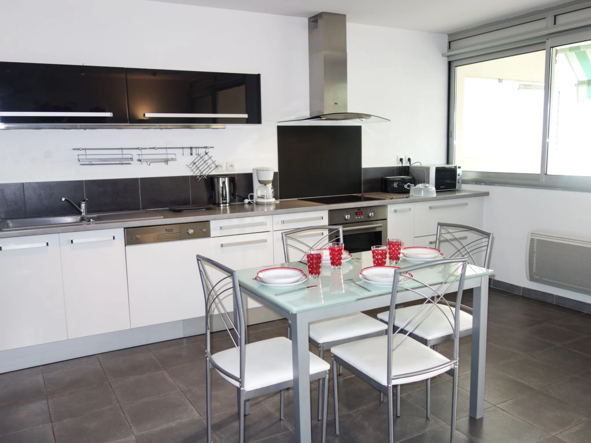 3-room apartment 56 m2 on 2nd floor, south facing position. Renovated in 2012, practical and modern furnishings: large living/dining room with TV (flat screen). Exit to the terrace, south facing position. Walk-through room with 1 double sofabed (140 cm, length 190 cm). 1 room with 1 french bed (1 x 140 cm, length 190 cm). Exit to the terrace. Large, open kitchen (oven, dishwasher, 3 induction hot plates, freezer, electric coffee machine, combination microwave). Shower, sep. WC. Electric heating. Large terrace 20 m2, roofed, south facing position. Terrace furniture, electric barbecue. Marvellous panoramic view of the sea. Facilities: washing machine, iron. Internet (WiFi, extra). Reserved parking space n 188. Please note: TV only FR. Smoke alarm, no lift. Access to the bedroom with the double bed is throught the bedroom with the double sofa bed.