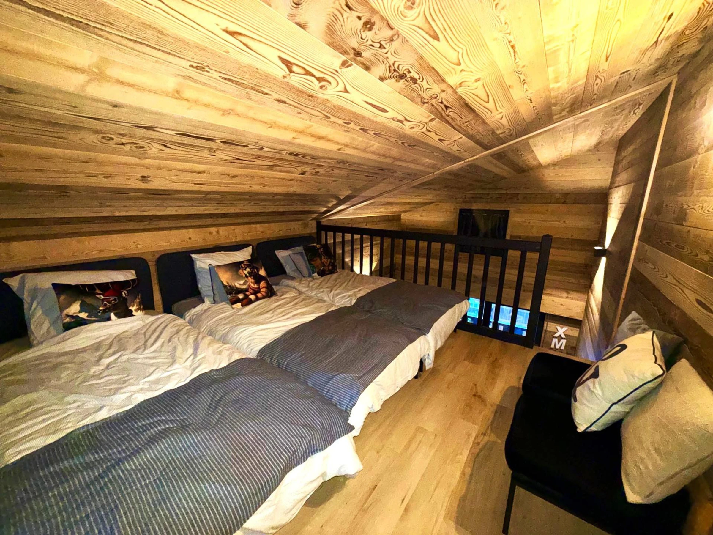 - Mezzanine (9.40 [hidden] with 9.40 [hidden]<1.80) : 2 single beds (2X90)- duvets 14x200cm