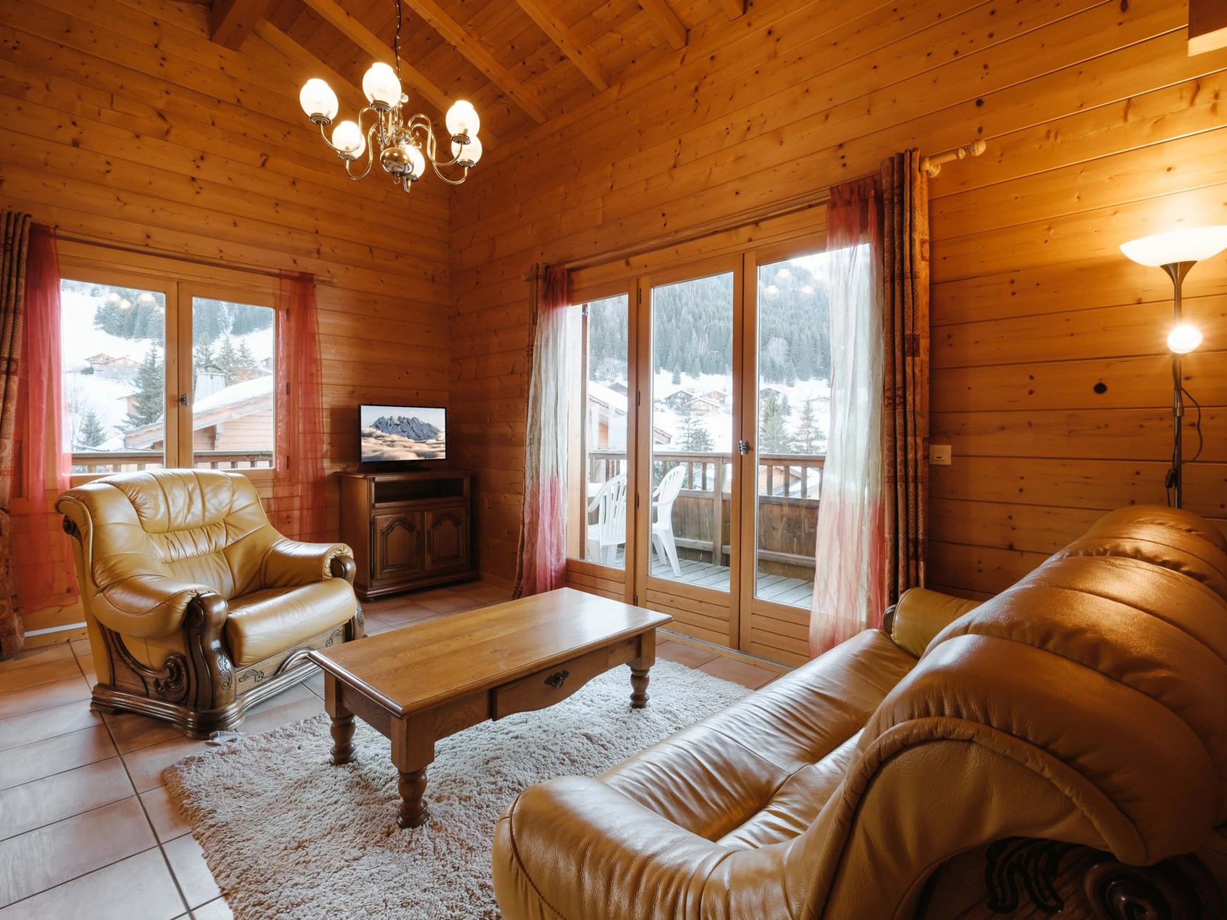 - LIVING-ROOM (23.49 m²) : eating place, lounge place, flat sreen TV, south facing windows, next door chalets / vegetation / mountain view, east facing french window, access south east facing balcony, next door chalets / vegetation / mountain view