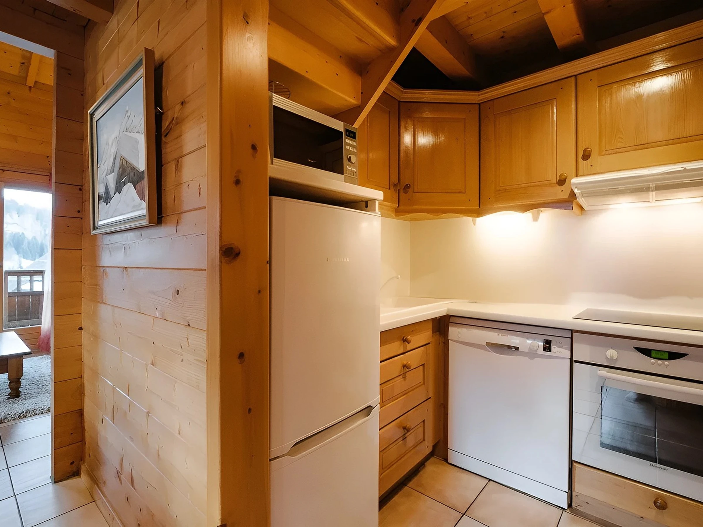 - KITCHEN (3.71 m²) : combined fridge + freezer (210L), INDUCTION STOVE, DISHWASHER, MICROWAVE, OVEN