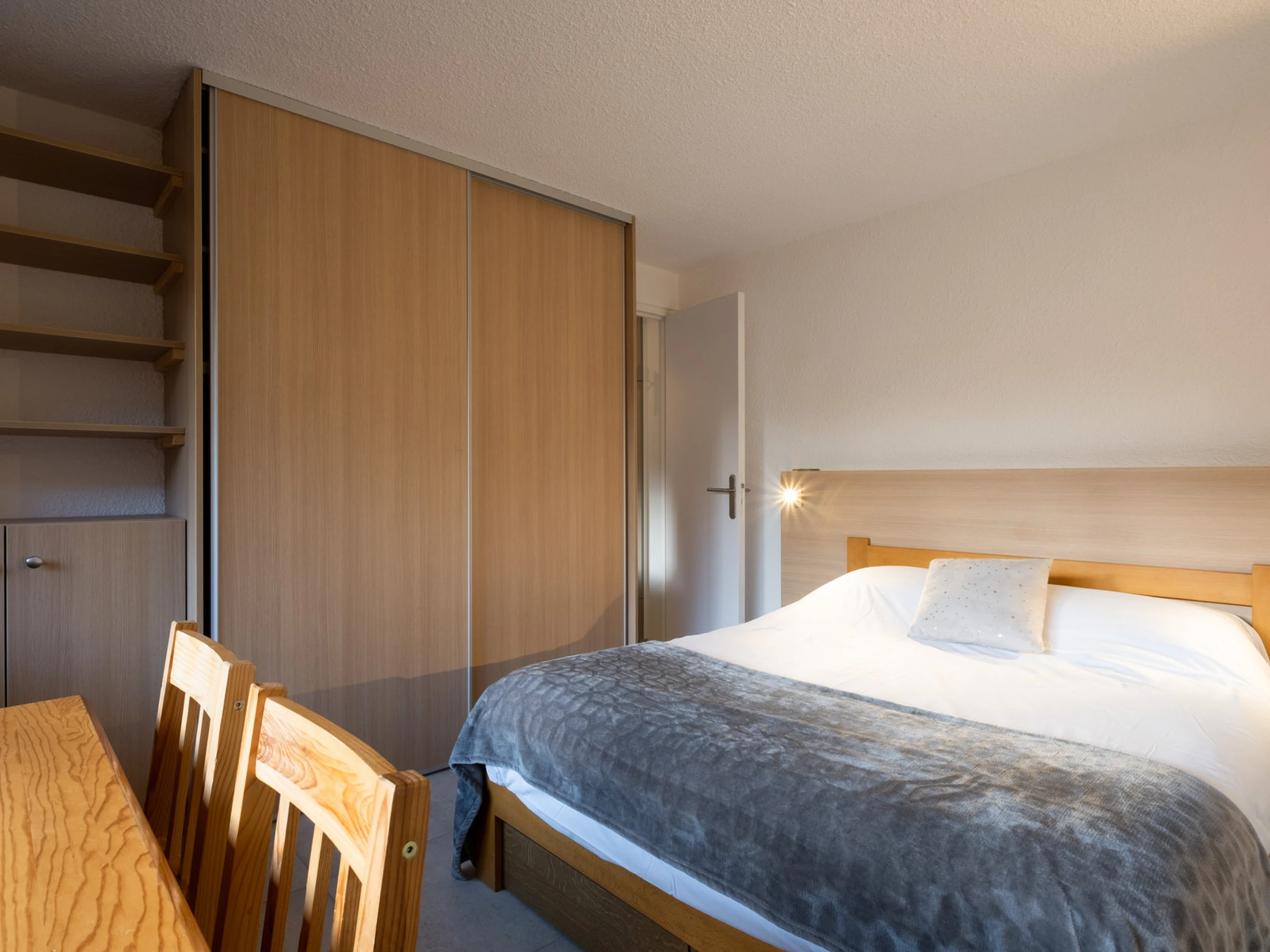 The independent bedroom includes a double bed (140 cm) and benefits from direct access to the south-facing terrace.