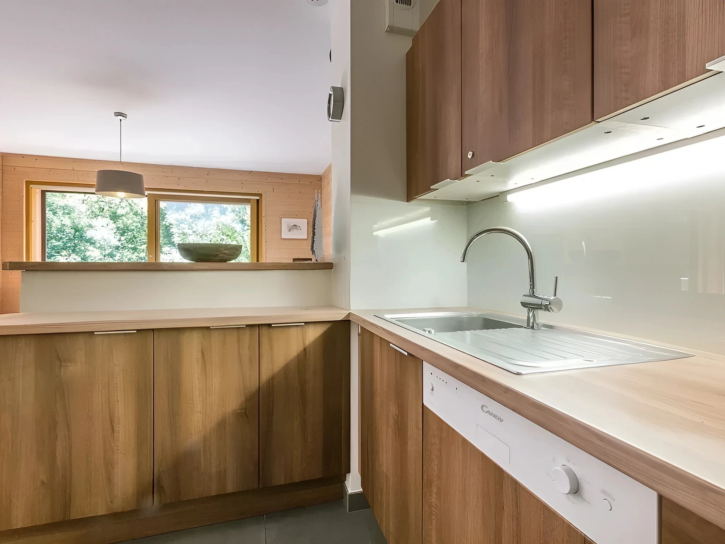 - Open KITCHEN: combined fridge+freezer (285 L), oven, MICROWAVE, INDUCTION STOVE, DISHWASHER