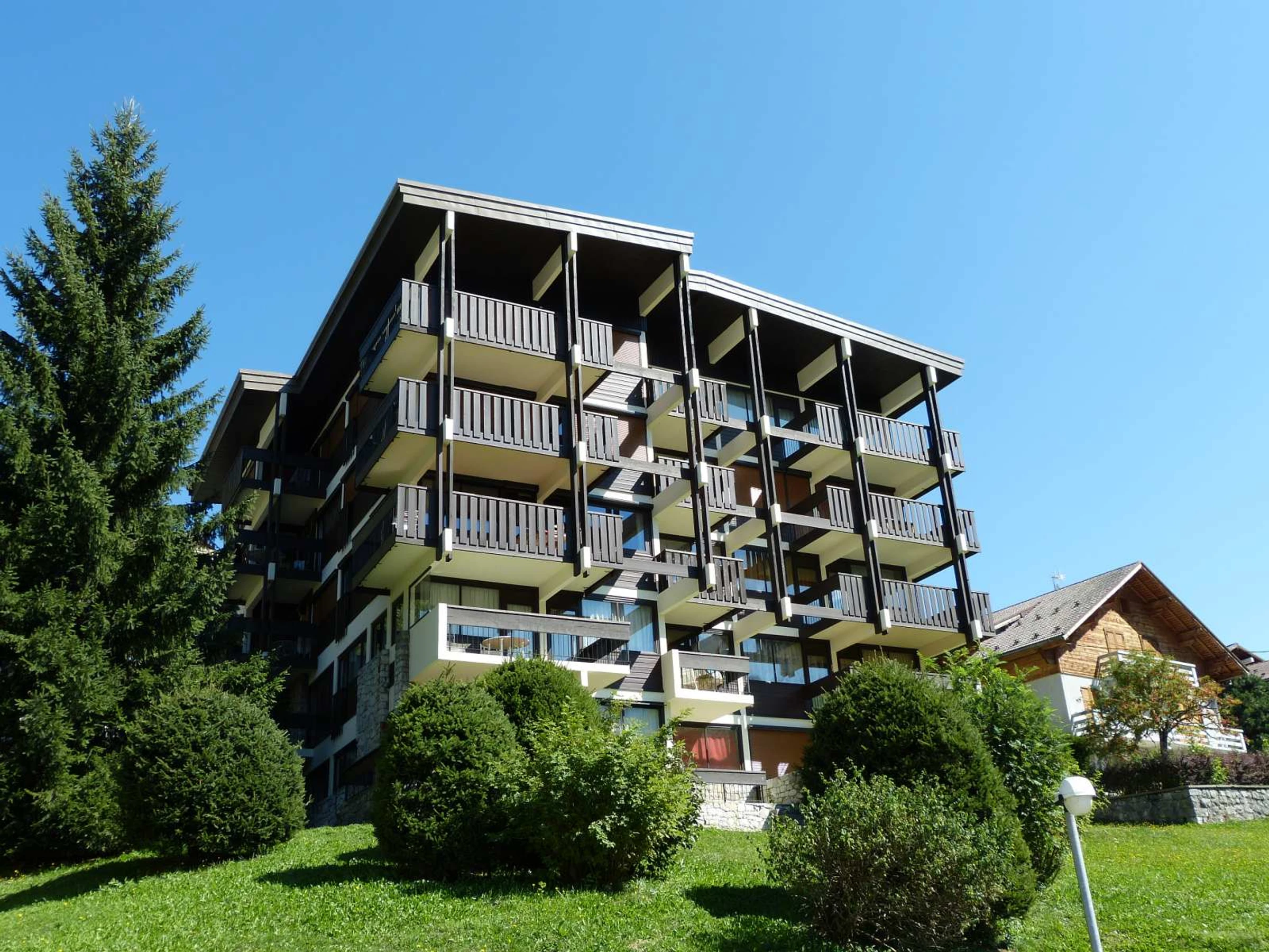 Residence located UPTOWN, at 250 m from BOSSONNET Telemix (6-seater combined chairlift and cable car), chairlift, ski lift (ski lessons departure / contact Schools) and shops. Bus stop in front of the residence in winter season and at 240 m in summer season.