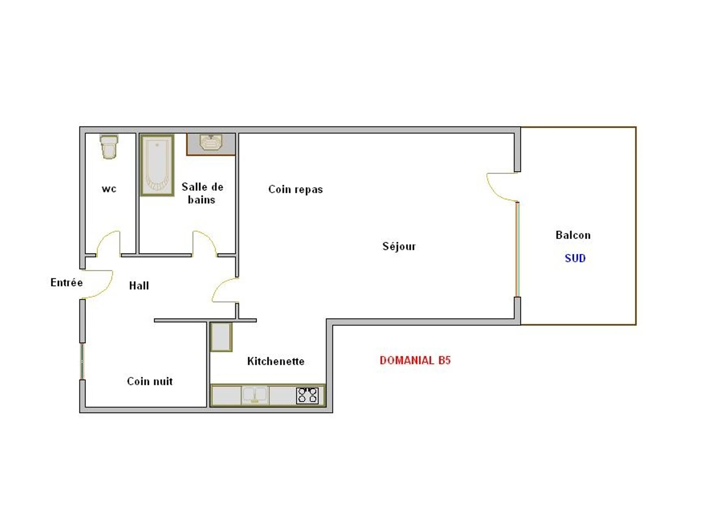 - HALL / SLEEPING CORNER, separate by a curtain (6.08 m²): 2 BUNK BEDS (80) -> upper bed forbidden under 6 years old, north facing window on passageway