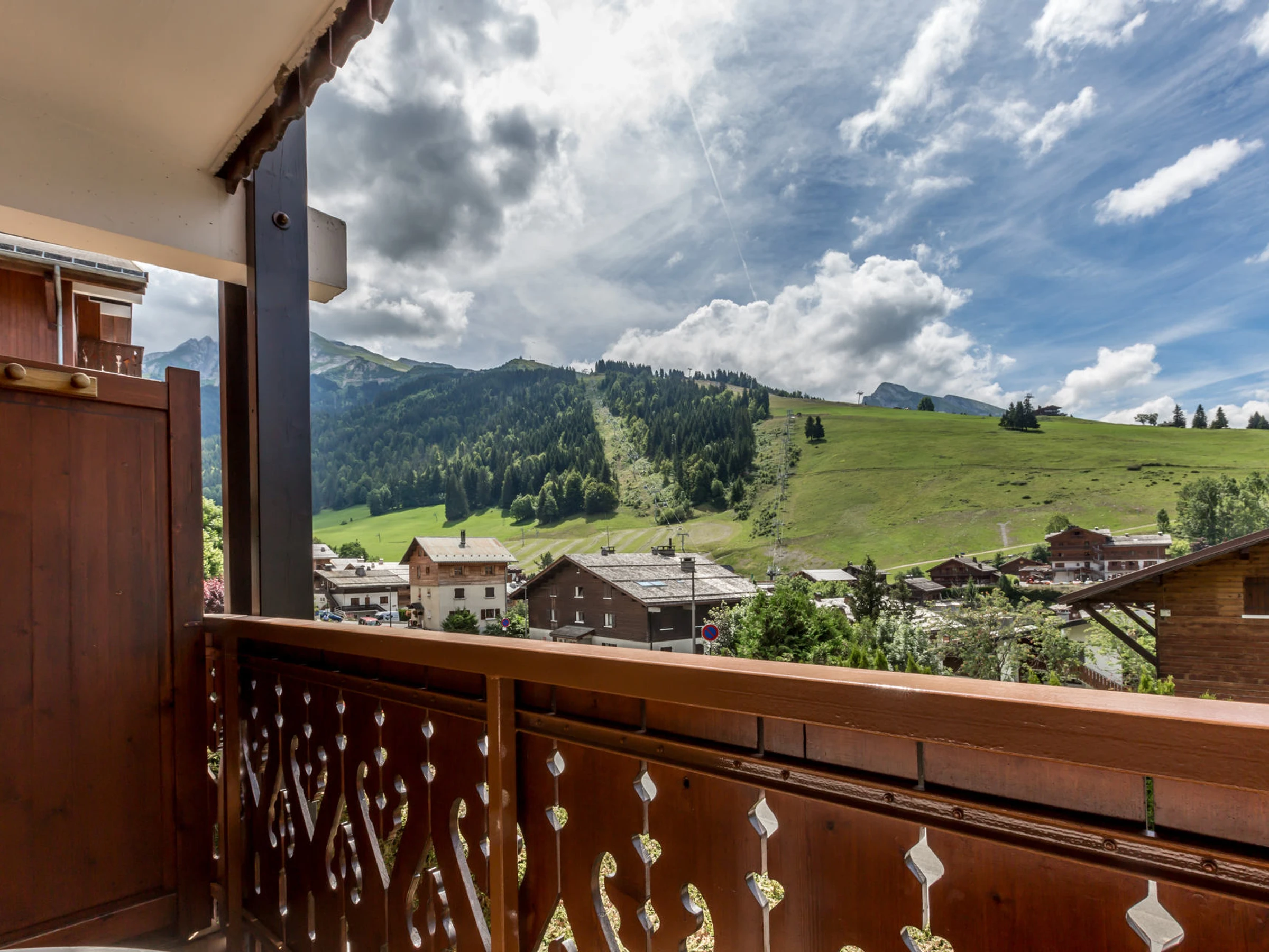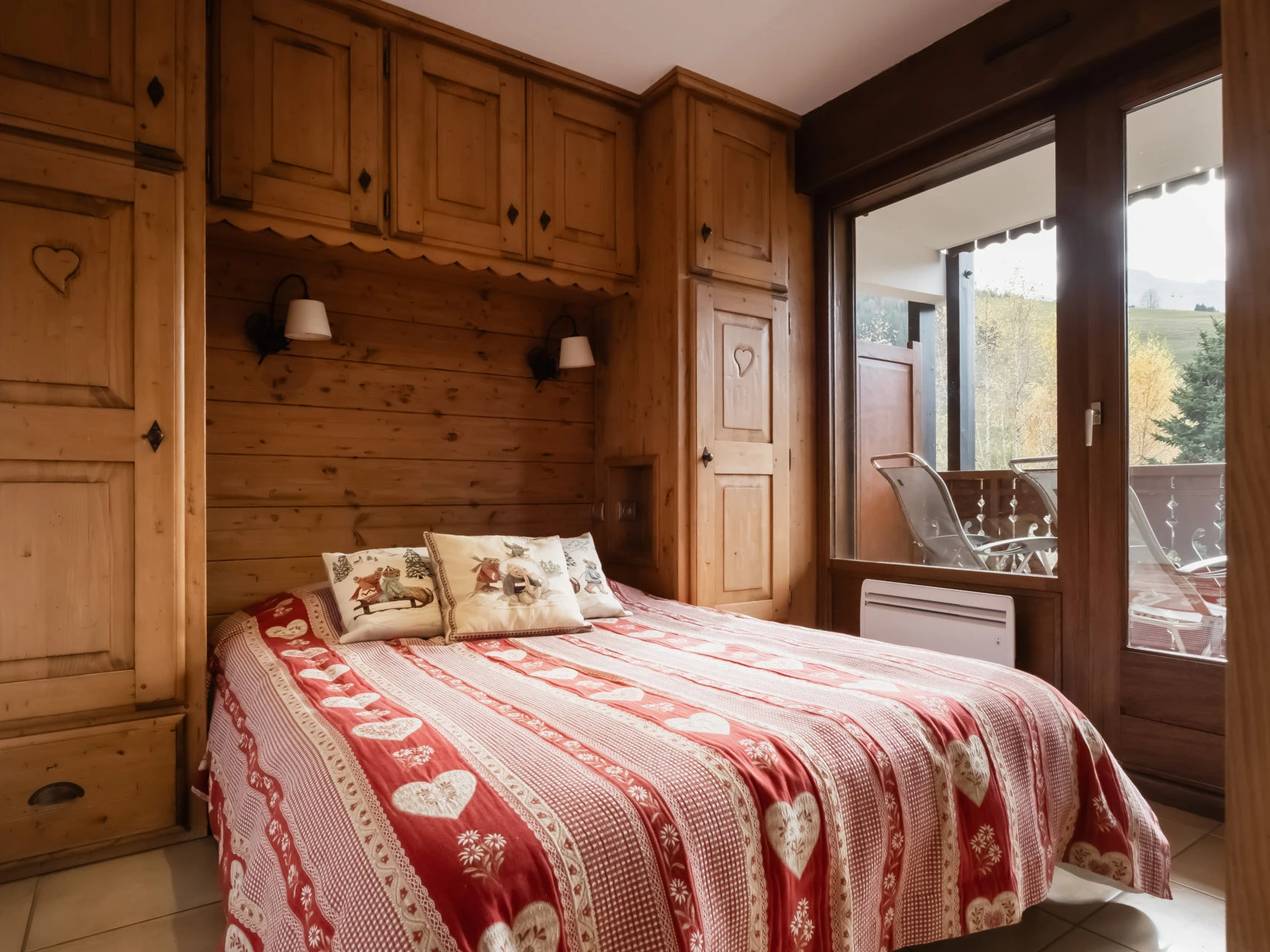 - BEDROOM (8.19 m²): 1 DOUBLE BED (140), south facing bay window + French window + balcony, village / mountain view