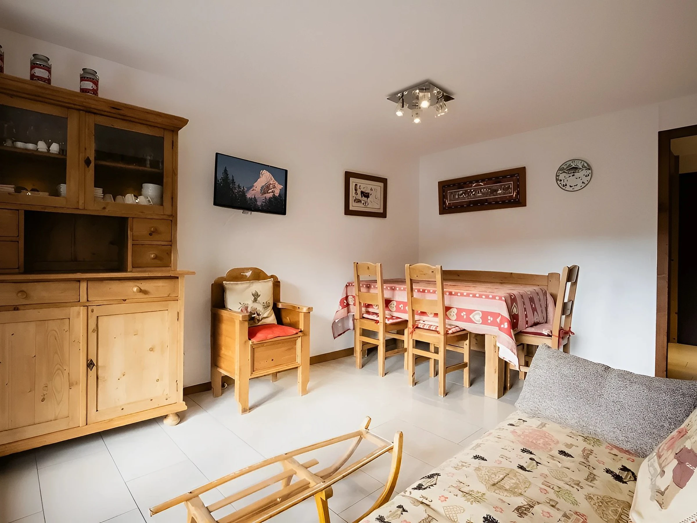 - LIVING ROOM (16.60 m²) : 1 DOUBLE SOFA BED RAPIDO (140), flat screen TV, south facing bay window + French window + balcony, village / mountain view