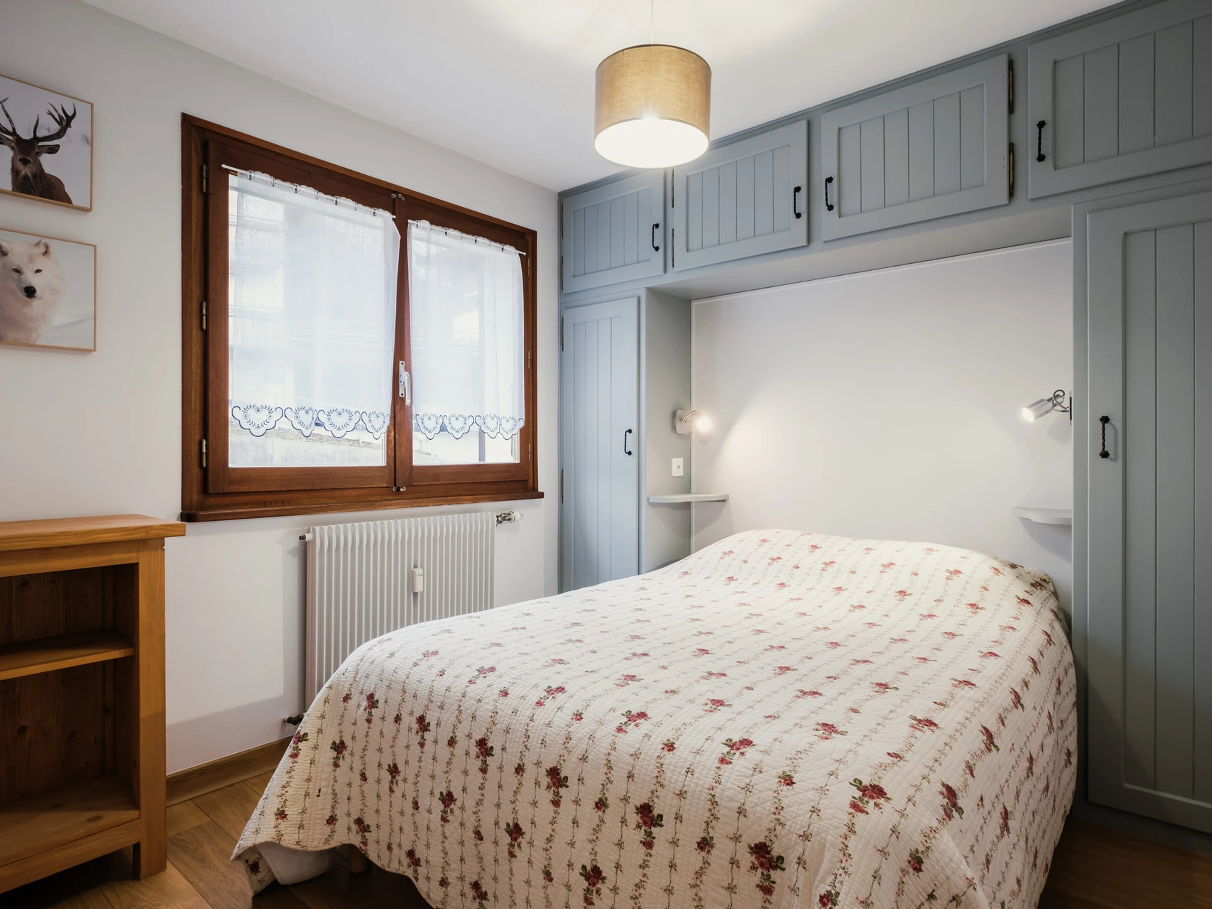 - BEDROOM (7.72 m²): 1 DOUBLE BED (140 cm), west facing window, route des Riondes view