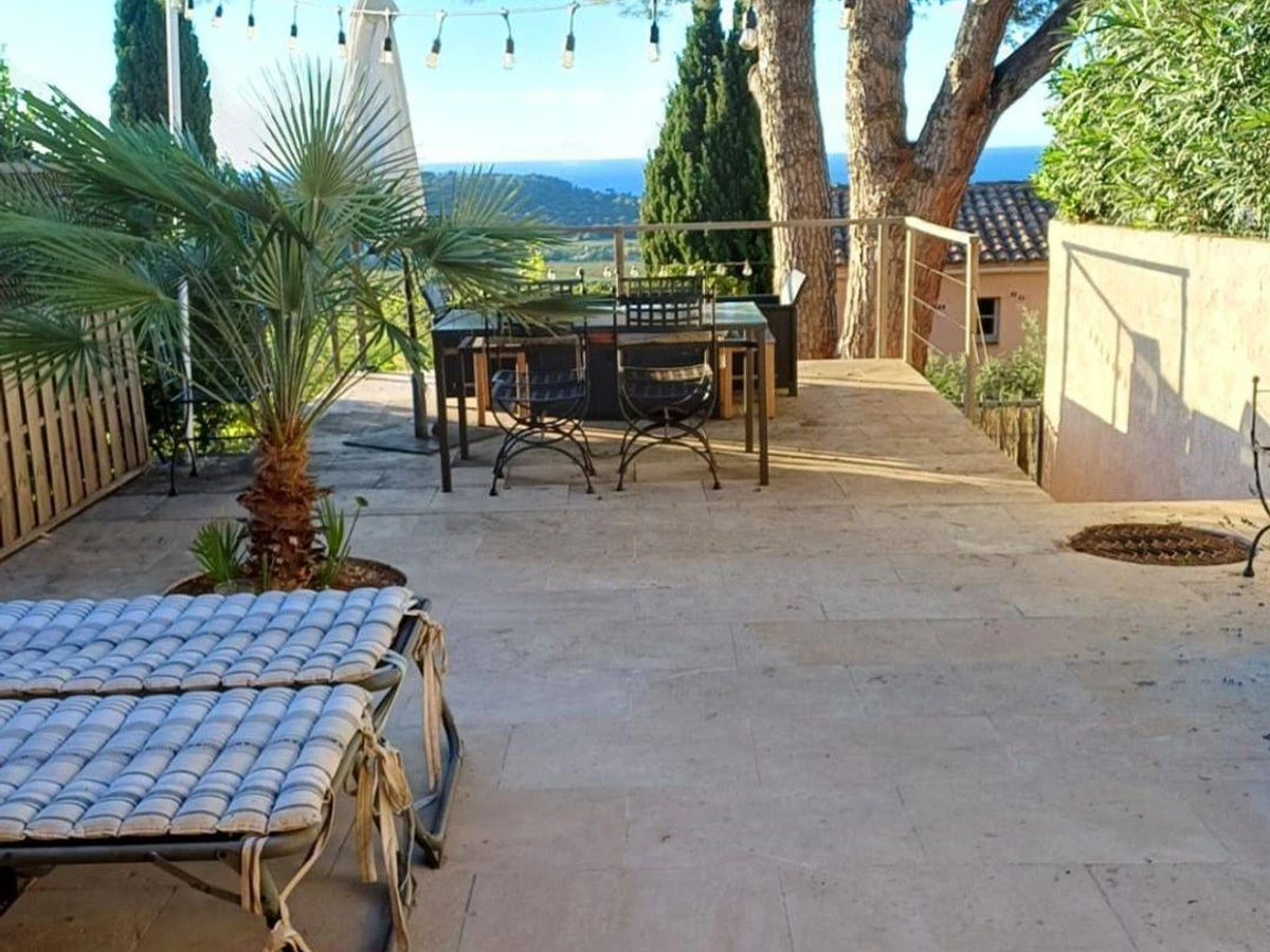 Downstairs, there is a bedroom with two single beds, and upstairs, a mezzanine bedroom with a double bed. The bathroom has both a bathtub and a shower. All amenities and free shuttle buses, which will whisk you to the beautiful beaches of La Croix-Valmer in just a few minutes, are a 5-minute walk away.