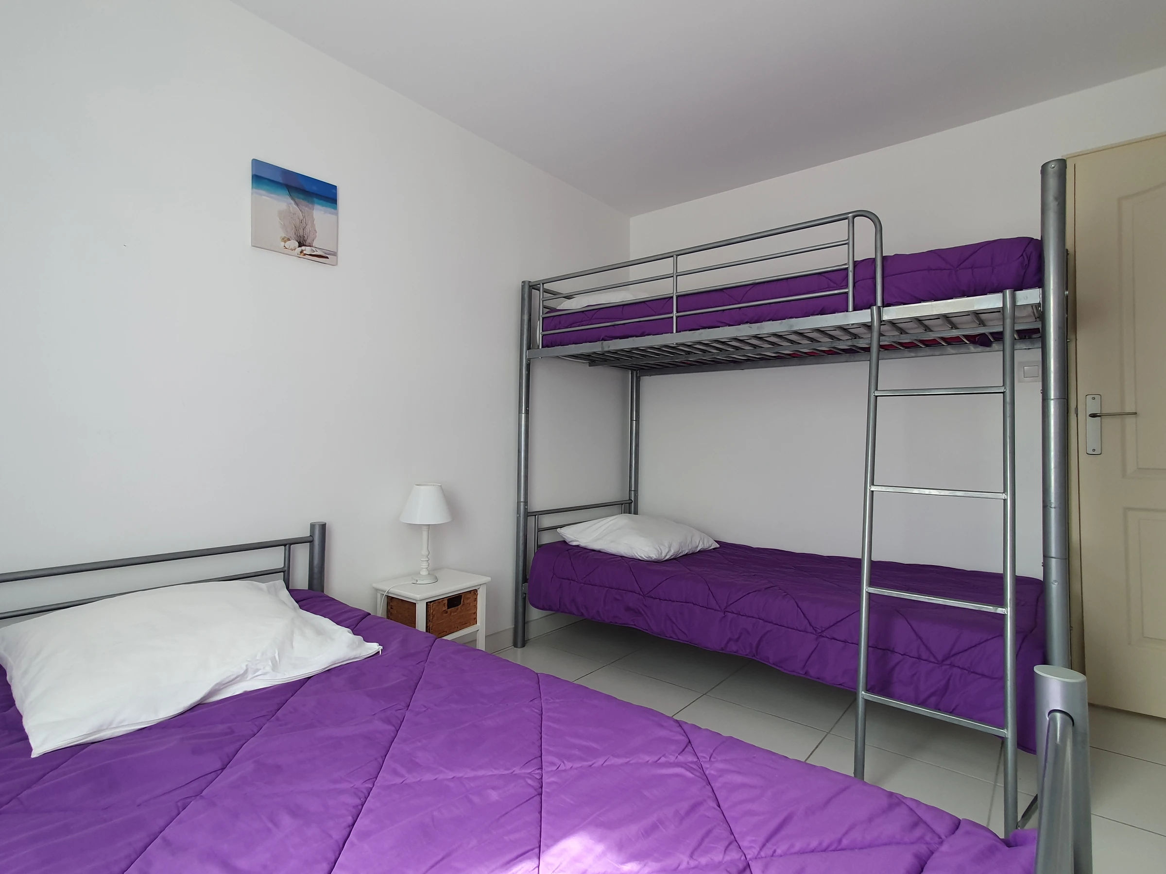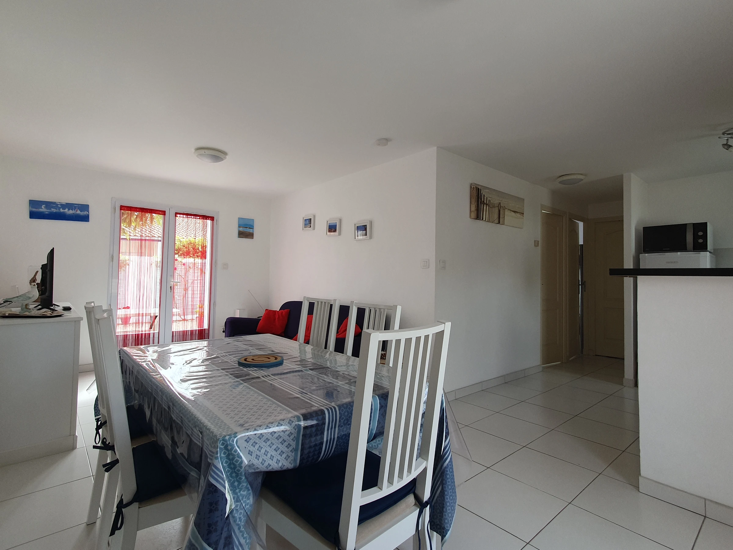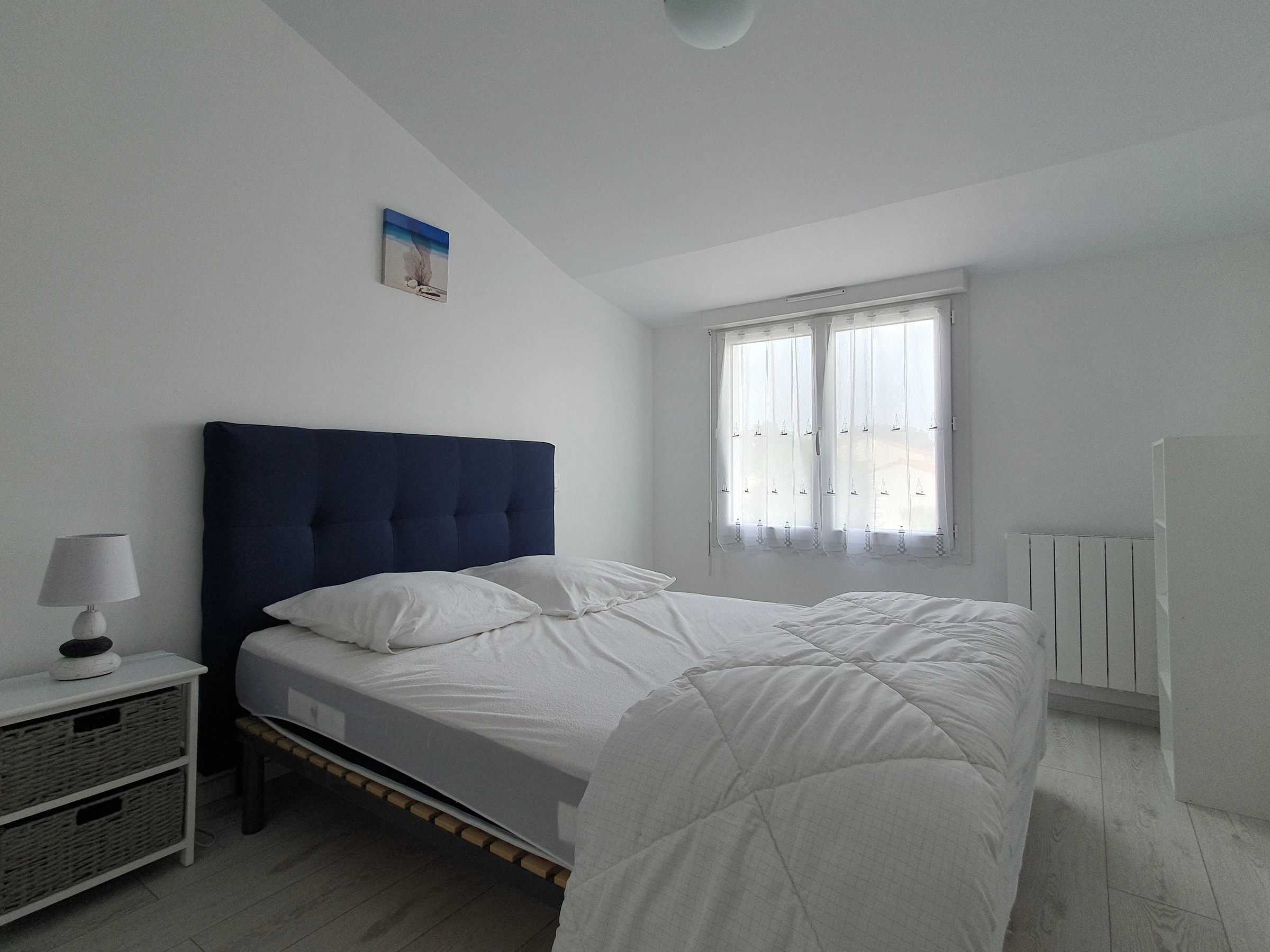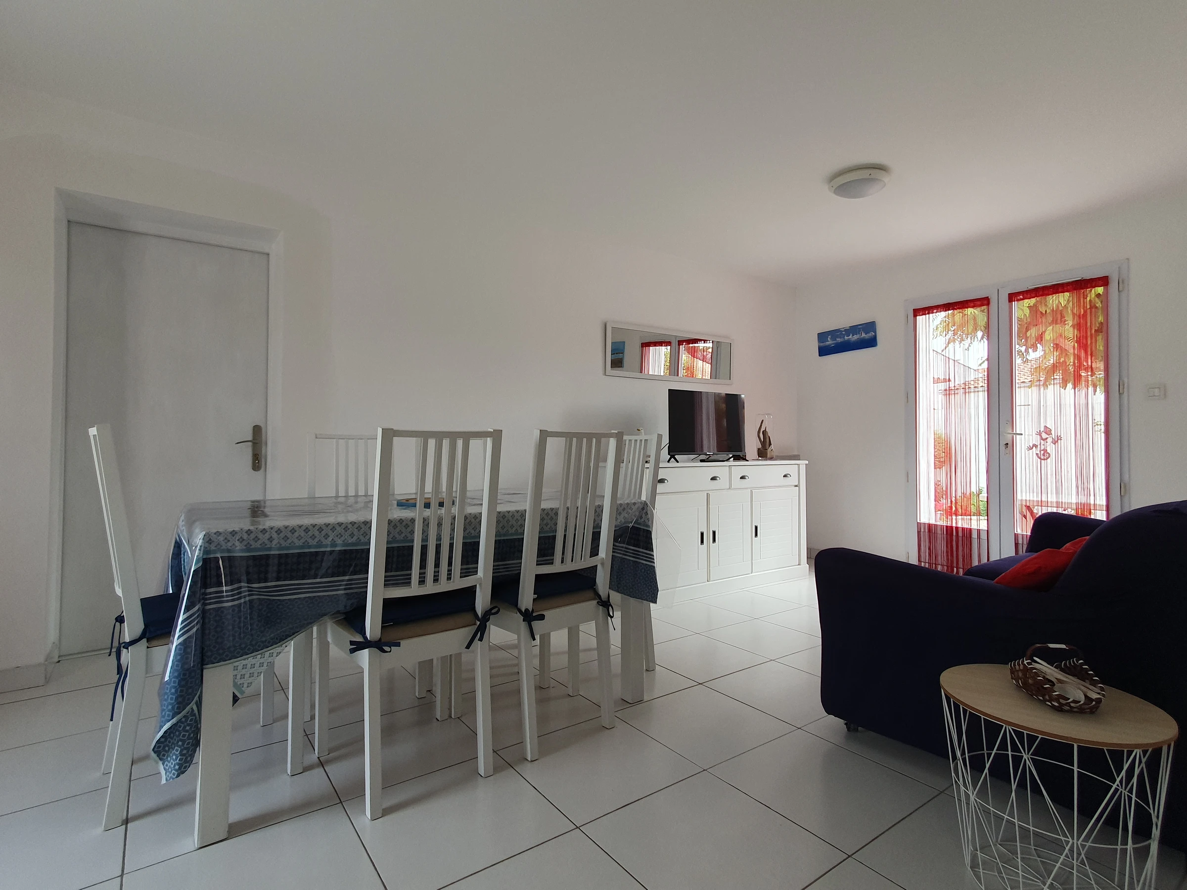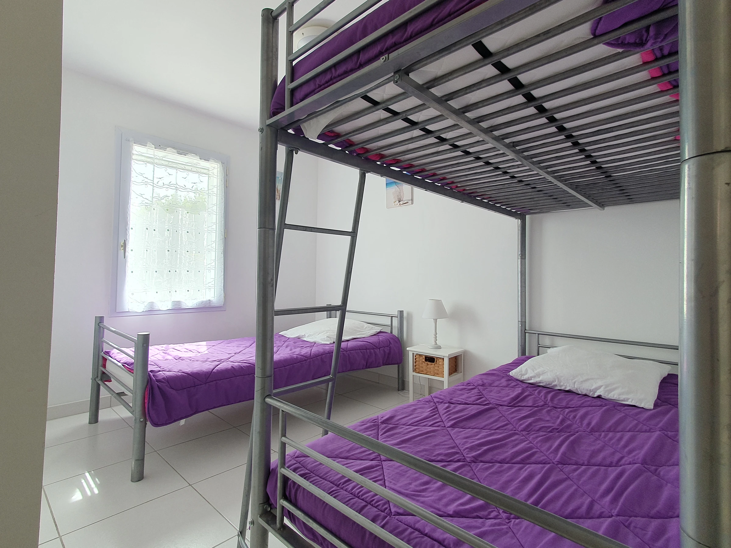 Located on rue des Garennes, a small, quiet street, 400 meters from the Center and the Beach, in a friendly area, sought after and recommended for families enjoying traveling without a vehicle. Comprising: Living room/TV lounge – kitchenette: induction hob, oven, fridge with freezer section, MICROWAVE – Bedroom with 1 Double Bed – Another bedroom with 2 Single Beds. + one bunk - Bathroom with shower, sink - WC - Upstairs: a bedroom with a double bed (access from the garage) - Sink and outdoor barbecue under awning - Enclosed garden with garden furniture - WASHING LINEN - Housekeeping for the tenant. Household linen not provided, rental possible from our partner, contact us. Heating from October 1 to May 31 in addition according to meter reading. Wifi rental possible with 5G box: €40/week
