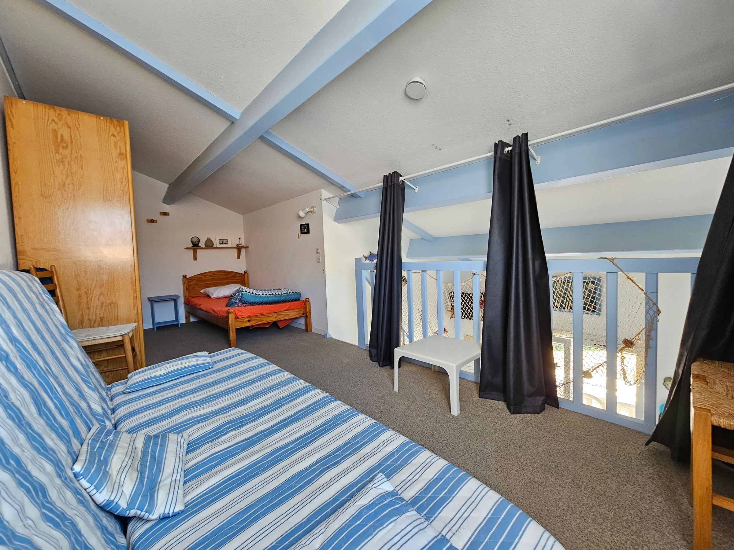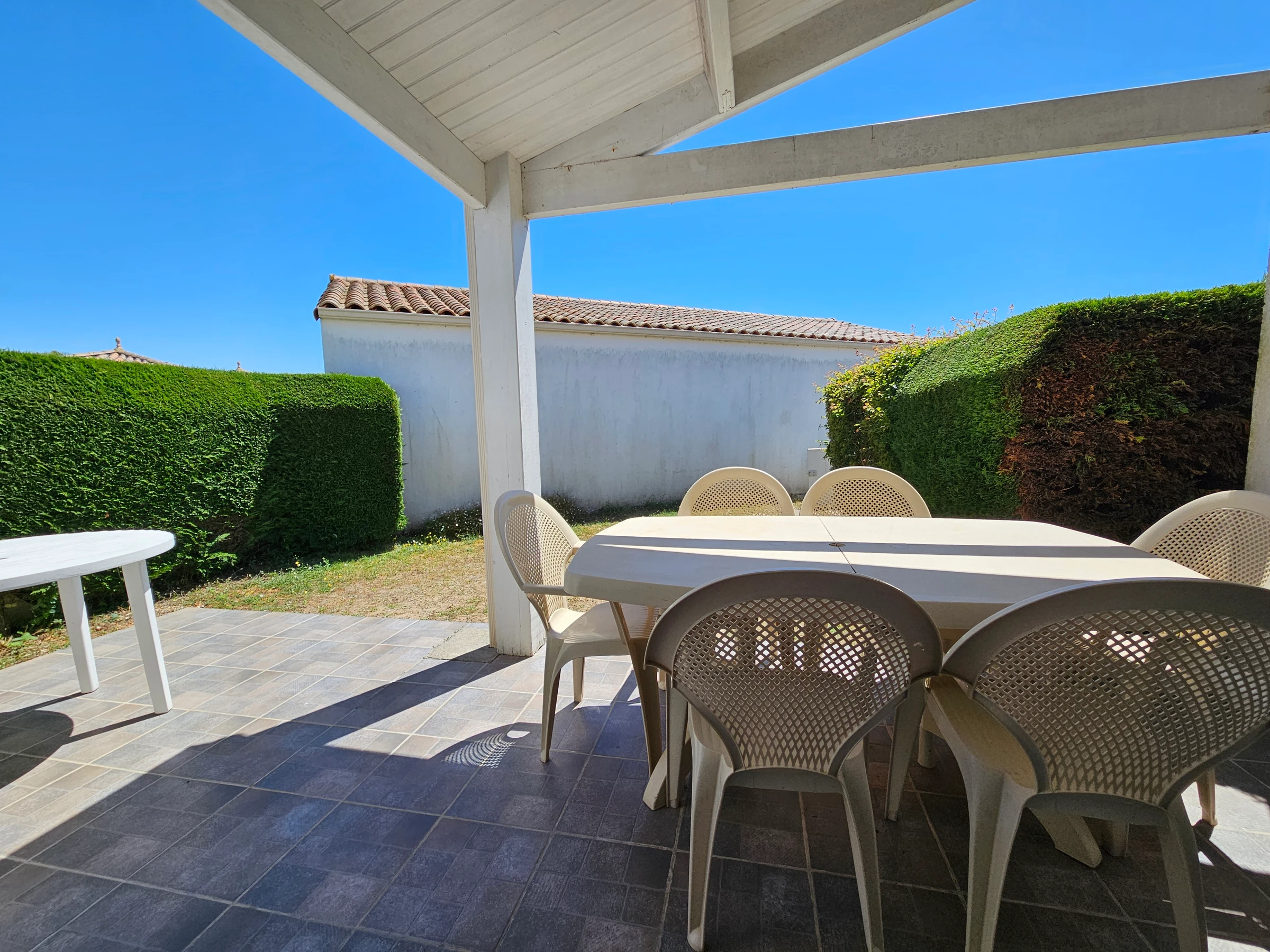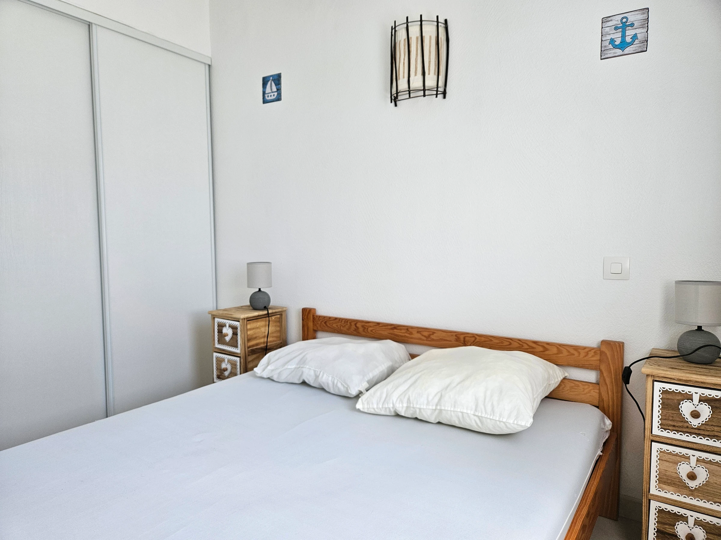 Located 1800 m from the beach and 1200 m from shops - Living room with TV - Equipped kitchenette (2 electric hotplates, fridge/freezer, multifunction MICROWAVE and DISHWASHER) - Bedroom with 1 bed for 2 people. - Mezzanine with Clic clac 2 People. + 1 single bed - Shower room: shower, sink and washing machine - WC - Garden with garden furniture - Private swimming pool throughout the Residence - Private parking - Housekeeping for the tenant. Household linen not provided, rental possible from our partner, contact us. Heating from October 1 to May 31 in addition according to meter reading. Wifi rental possible with 5G box: €40/week