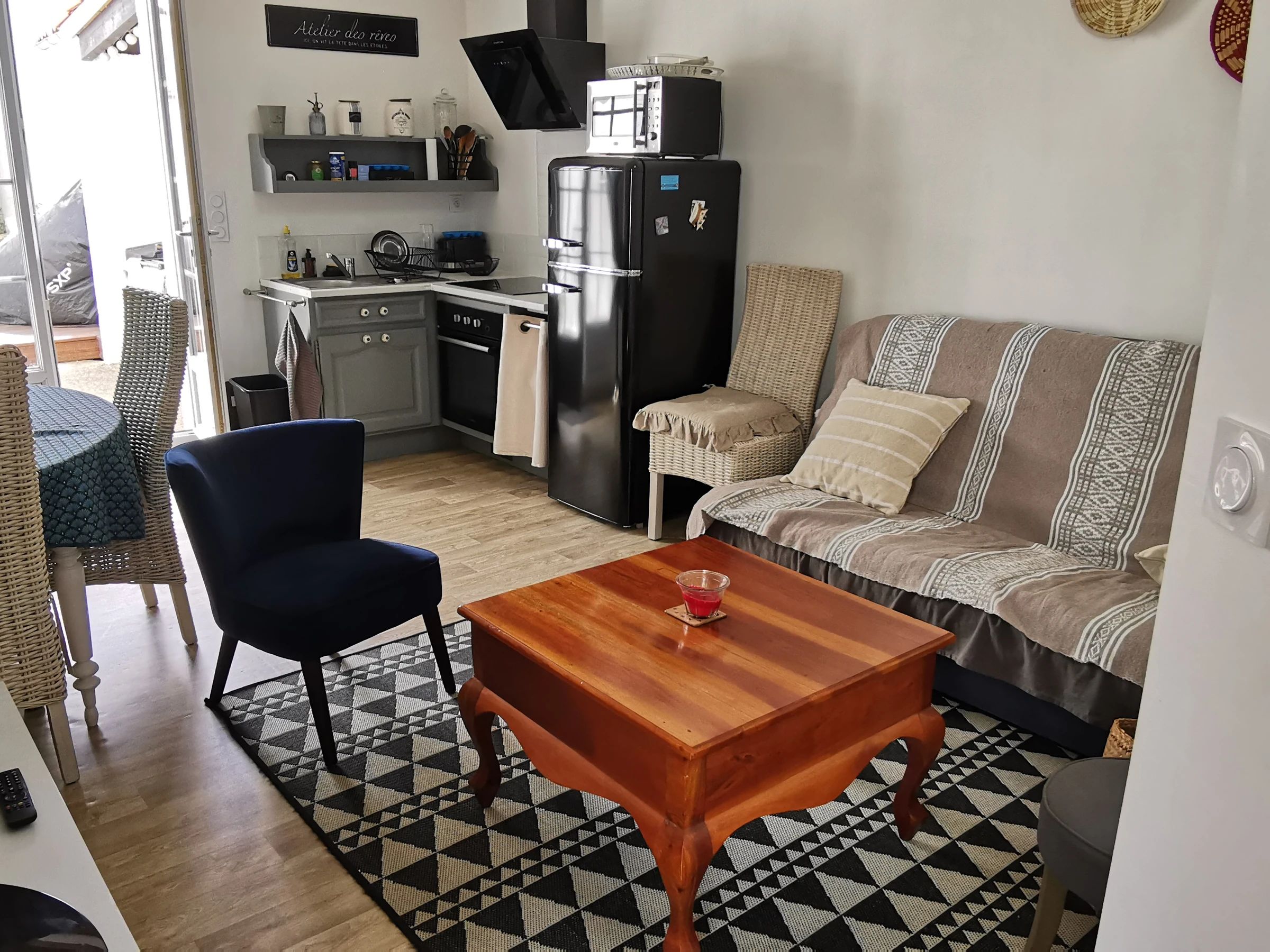 Lots of charm for this renovated house in the town center of La Faute sur Mer in the immediate vicinity of the large beach. This house includes on the ground floor: entrance, living room (flat screen TV) with kitchenette (oven, induction hob, microwave, fridge with freezer compartment), bedroom with a 160 bed, a wardrobe and a flat screen TV, bathroom adjoining the bedroom (multi-jet shower cubicle), separate toilet, laundry room (washing machine). Upstairs a bedroom under the slope with a 140 bed. The south-facing terrace with a surface area of 27 m² will enhance your stay, garden furniture with plancha. This house is classified 2 stars.
