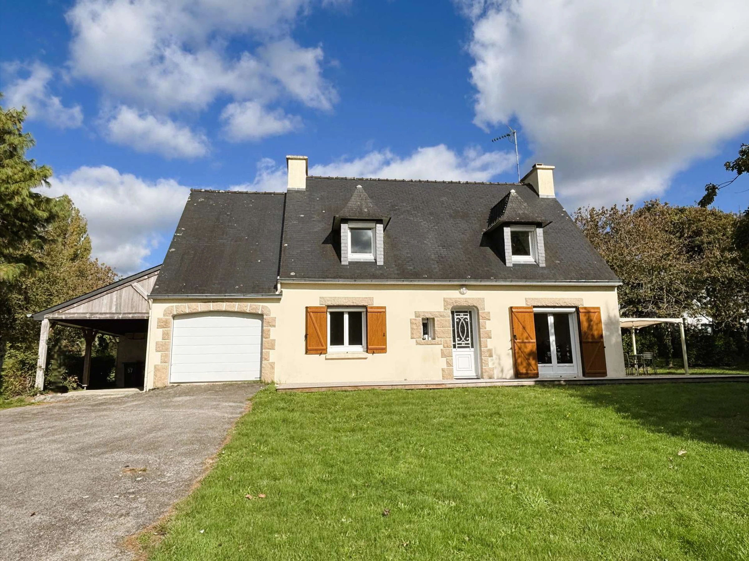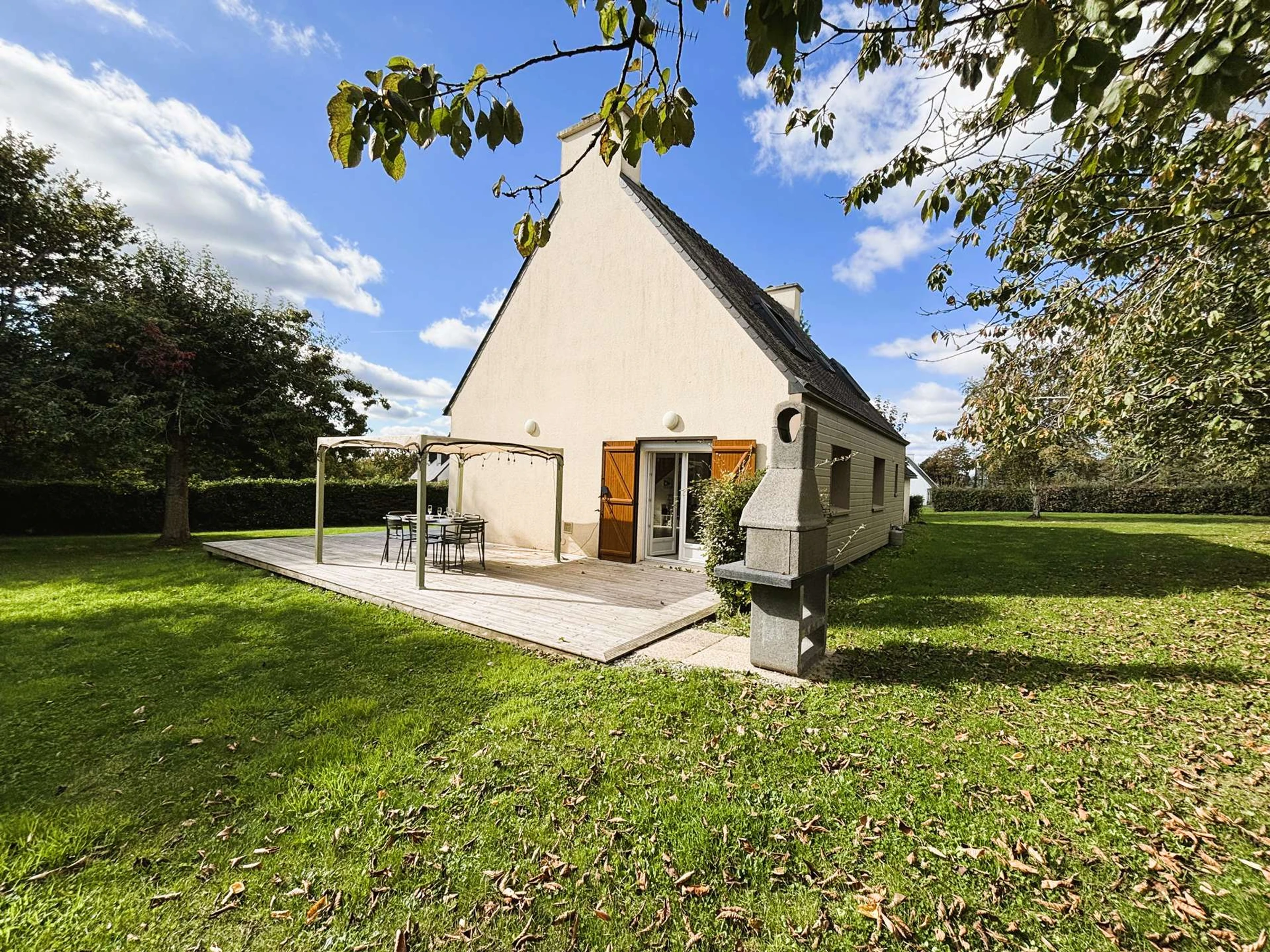 Just a 400-meter walk from the magnificent Kerleven beach, this house offers an ideal setting for a comfortable and peaceful holiday. Nestled in a quiet, green environment, it charms with its large landscaped garden and spacious terrace, perfect for al fresco dining or relaxing moments.
