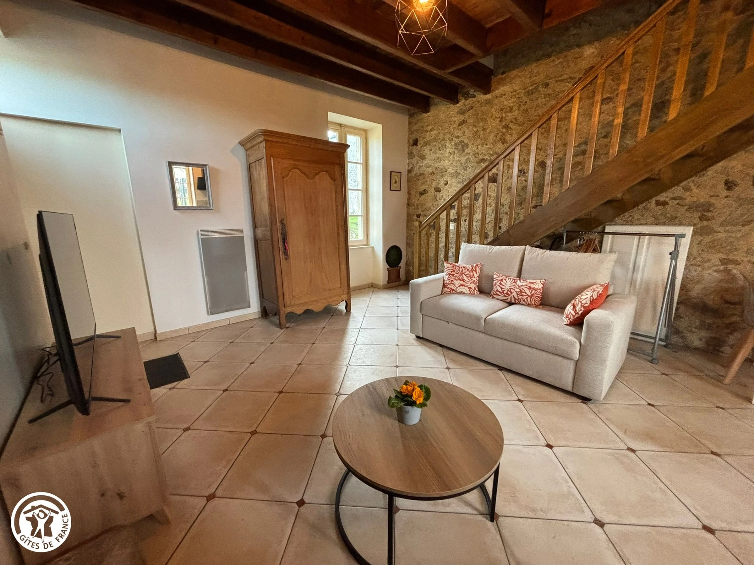 Stay in the Vendée countryside and discover its natural and historical treasures, such as the Cité des Oiseaux (Bird City) (6.5 km), the Château de Tiffauges (10 km), the Vendée Railway (15 km), and of course, Puy du Fou (16 km). A little further afield, you'll also have the opportunity to visit the fortified town of Clisson (25 km), the Oriental Park of Maulévrier (31 km), the Logis de la Chabotterie (38 km), or the Historial de la Vendée (42 km). This gîte comprises, on the ground floor, a living/dining/kitchen area with a smart TV, and upstairs, a bedroom with a queen-size bed, a shower room, and a separate toilet. You will enjoy a private, enclosed outdoor space with a terrace, garden furniture, a griddle, deck chairs, and outdoor games. You can park your vehicle on-site in a large shared parking area.