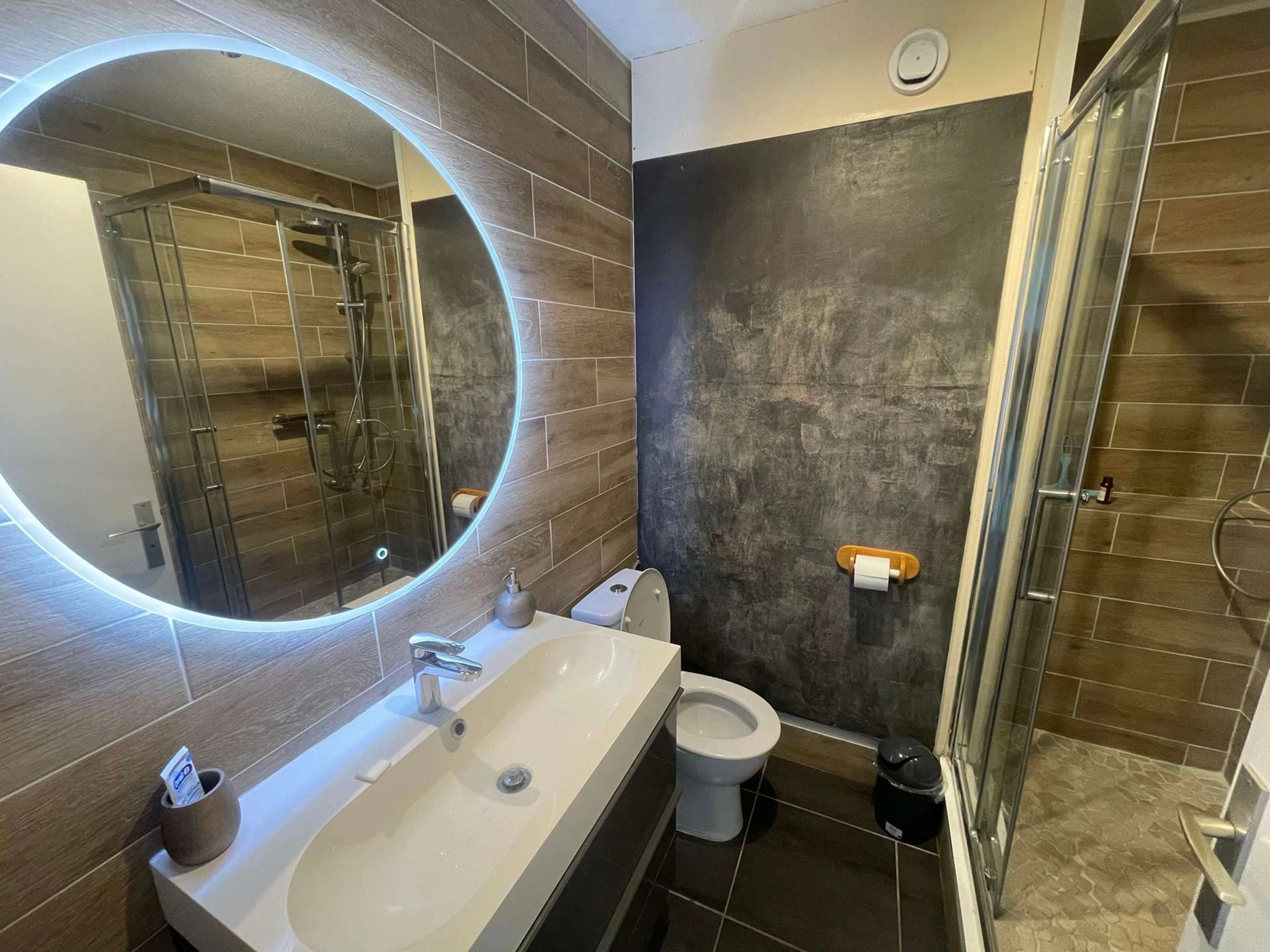 Amenities: induction hob, oven and microwave, extractor hood, fridge-freezer, electric coffee maker, kettle, washing machine, television.