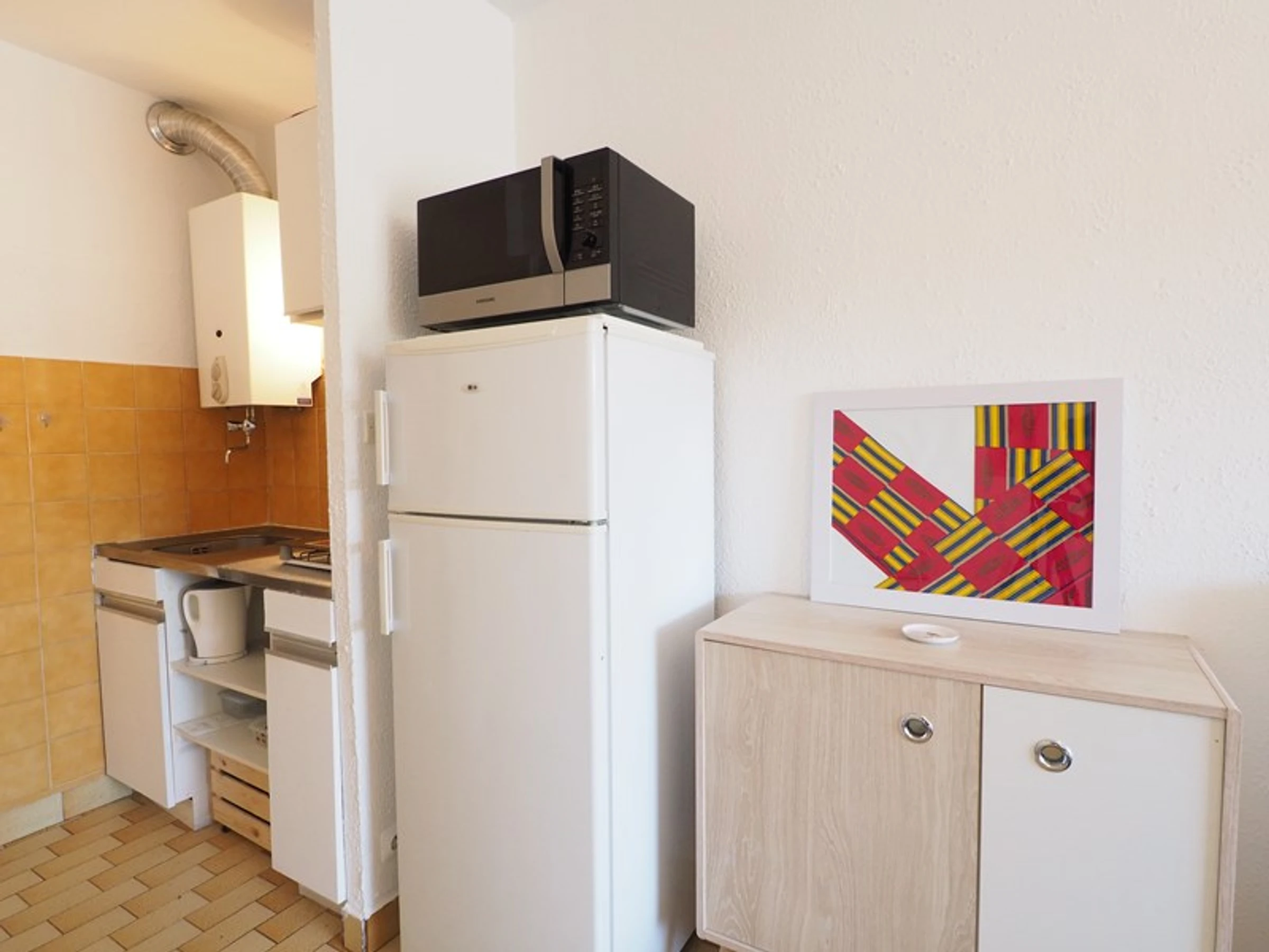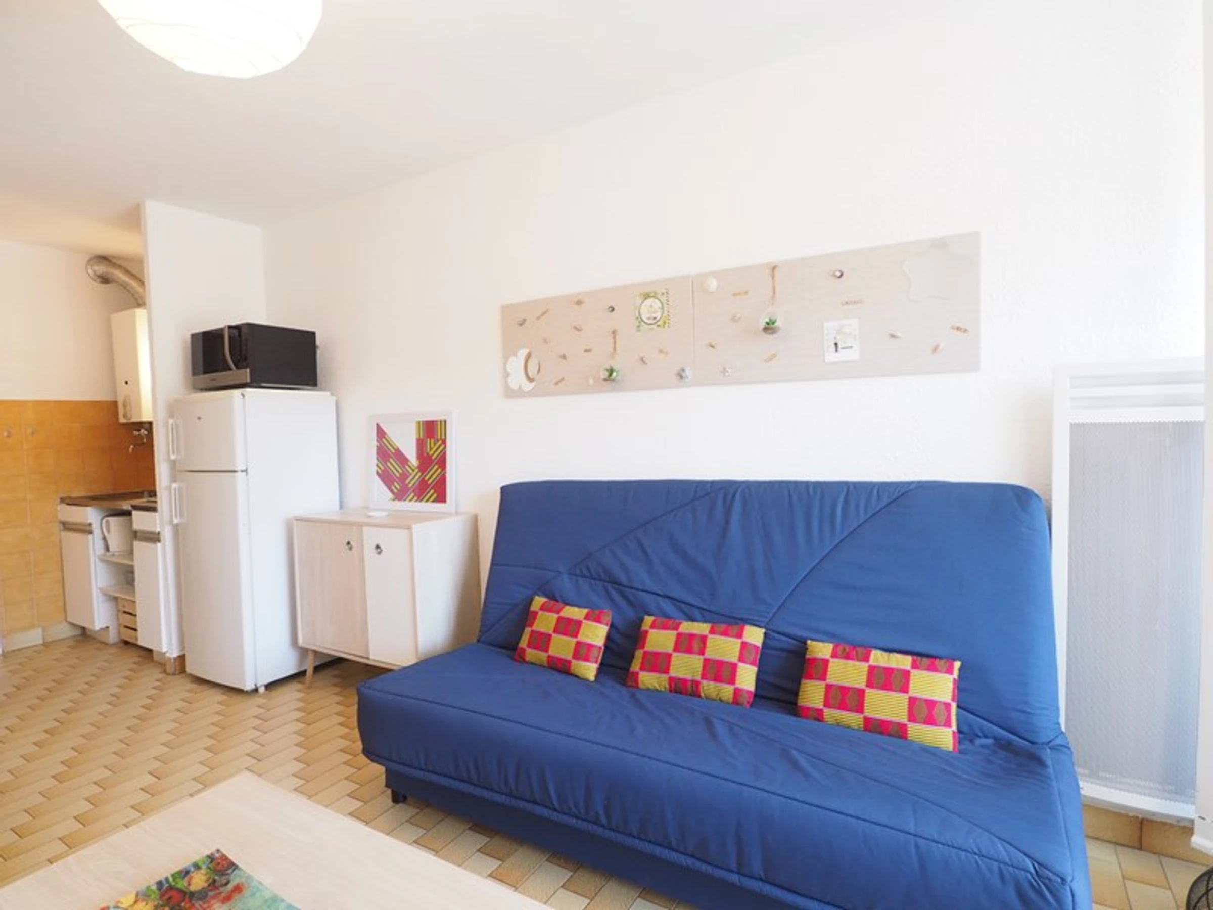 In a quiet area of La Grande Motte, this charming studio apartment with a sleeping alcove is located on the 1st floor and includes private parking for 4 people.