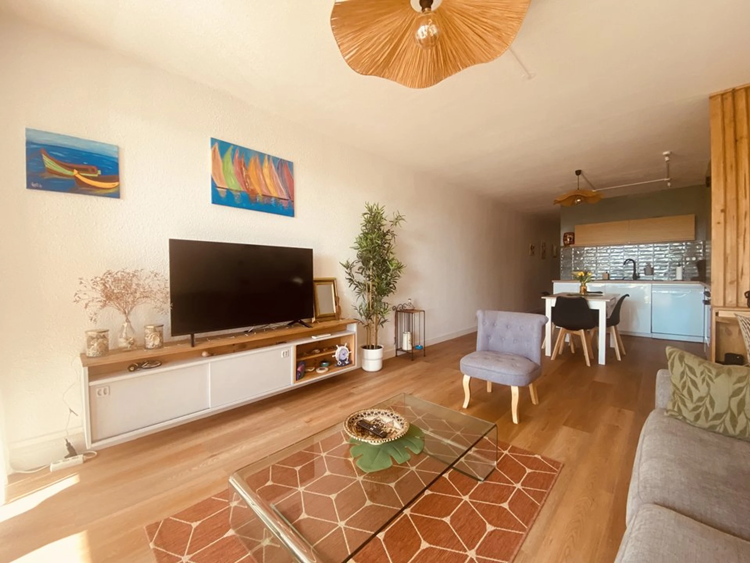 The apartment is rented fully furnished for 4 people, with two double beds (160cm) in the bedroom and a sofa bed (140cm), ready to move into, with tasteful and contemporary amenities.