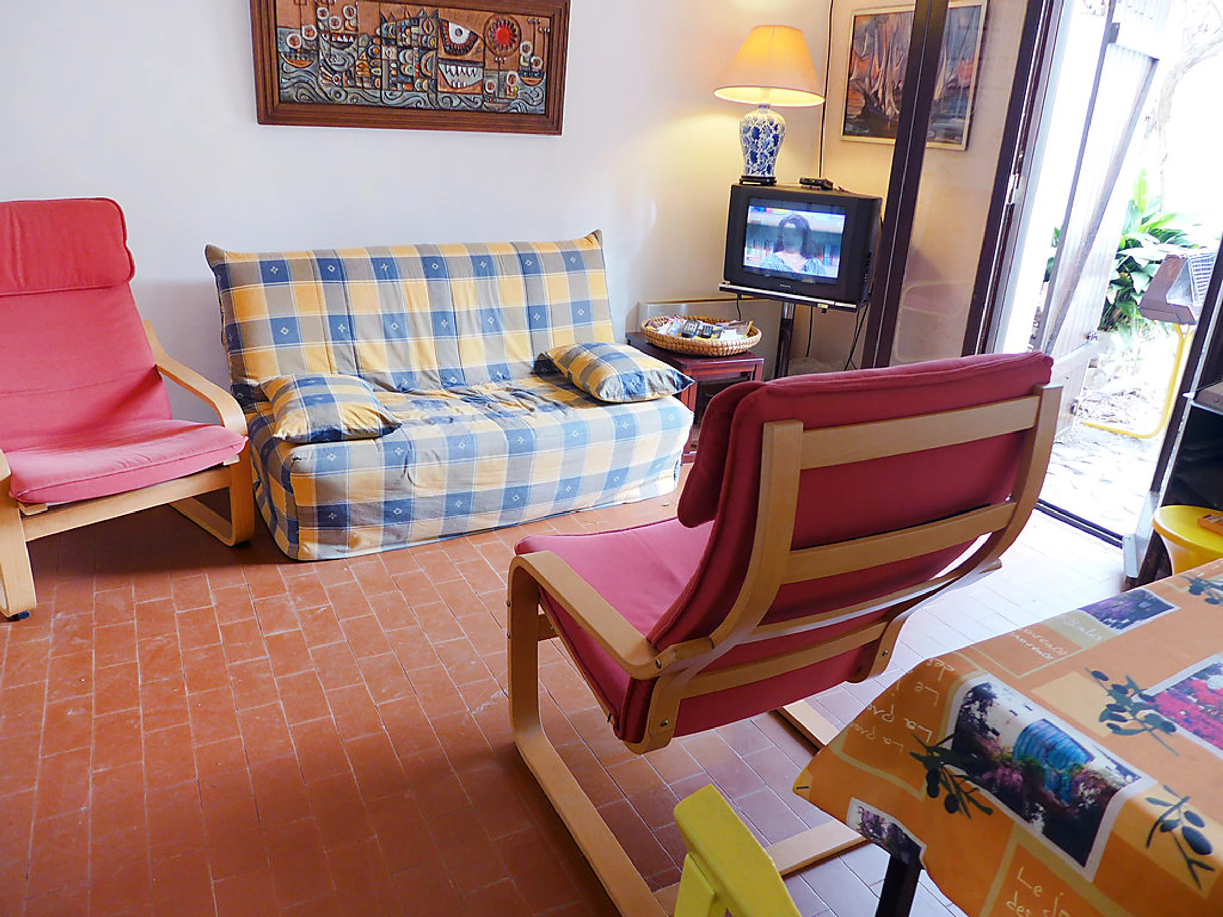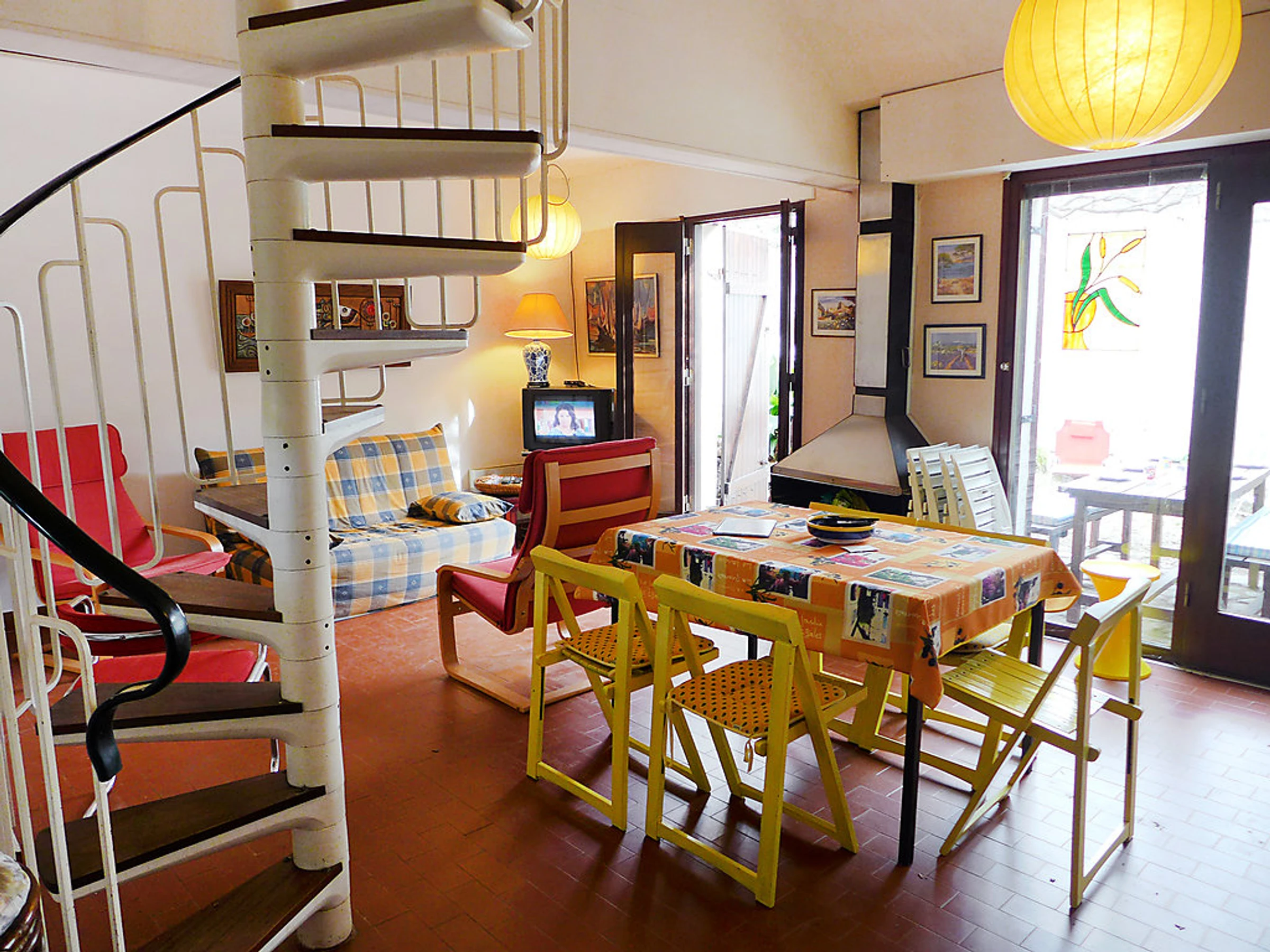 2-room terraced house 56 m2 on 2 levels. Living/dining room with 1 double sofabed and TV (flat screen). Exit to the terrace. Open kitchen (4 hot plates, oven, dishwasher, microwave). Bath/WC. Heating, air-conditioning. Upper floor: (spiral staircase) gallery with 2 beds (90 cm). 1 room with 1 french bed (2 x 90 cm). Terrace 10 m2, patio 20 m2, south-west facing position. Terrace furniture, barbecue. Reserved parking. Maximum 1 small pet/ dog allowed. Mandatory extra services on site: Local tax 0.83EUR per person/day, Final cleaning 11.0EUR per person, Local tax babies (0-2) (per person/day), Local tax children (per person/day)