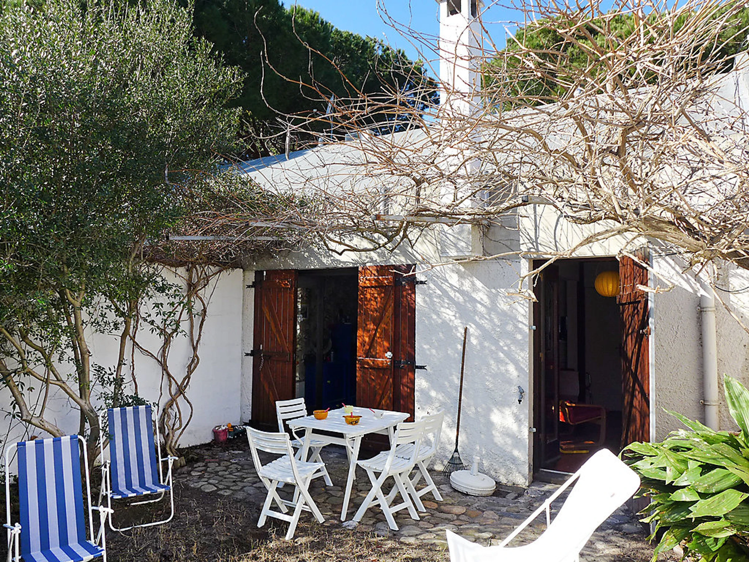 Terraced house "Villa Plein Soleil II". In the district of Point Zéro, 1 km from the centre, 350 m from the sea, in the countryside. Shopping centre, restaurant 300 m, bus stop 150 m, sandy beach, outdoor swimming pool 300 m, thermal baths "Thalassothérapie" 250 m. Sports harbour 900 m, golf course (18 hole) 1.5 km, tennis 300 m.
