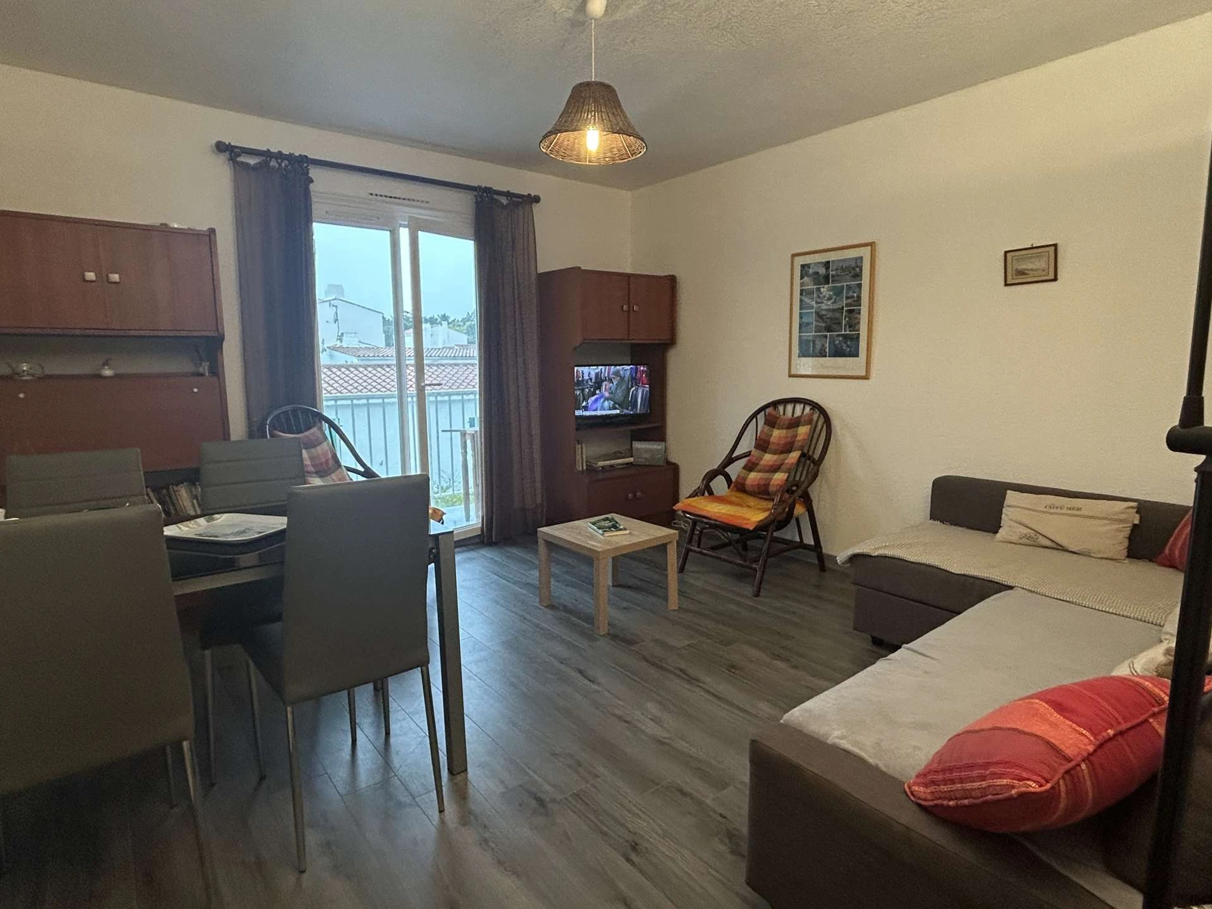 Located 300 m from a beautiful beach, this apartment on the 1st floor of a residence includes an entrance with cupboard, a living room with television and sofa, a fitted independent kitchen, two bedrooms, one with a double bed and one with two bunk beds and a single bed, a bathroom and a separate toilet.